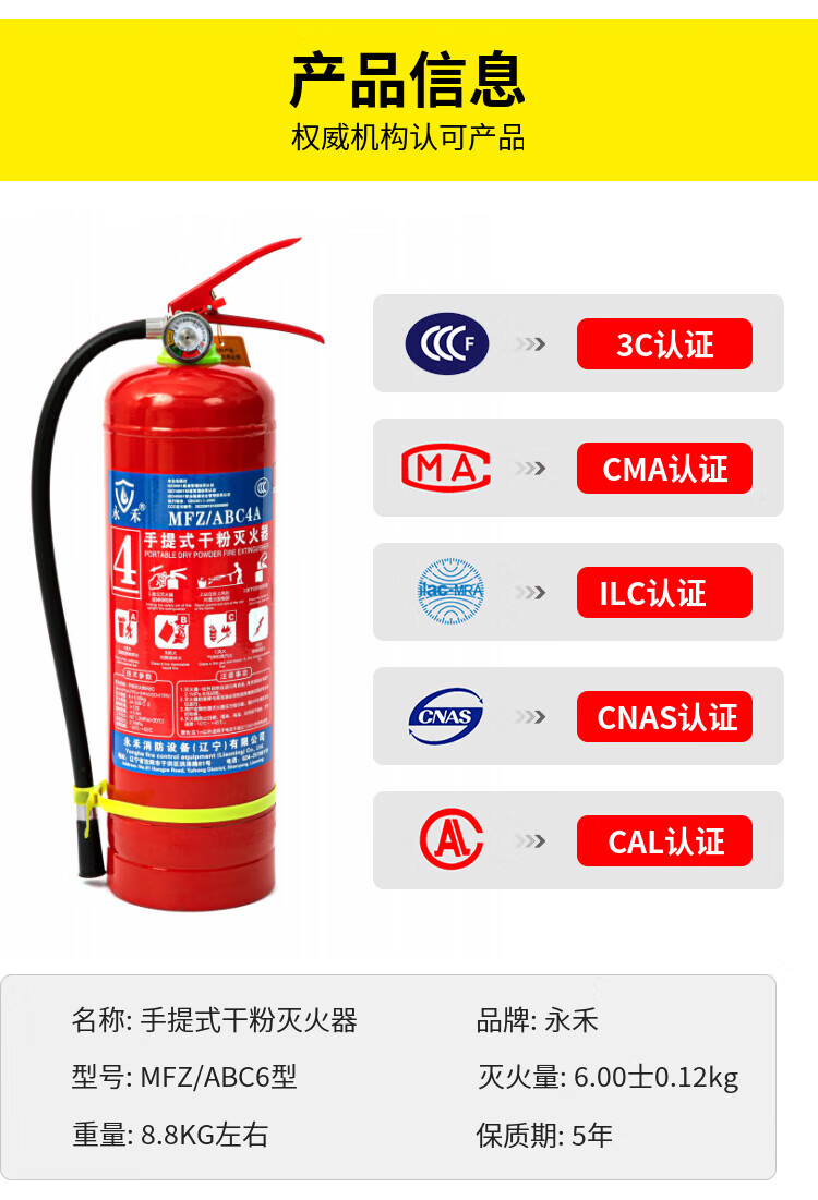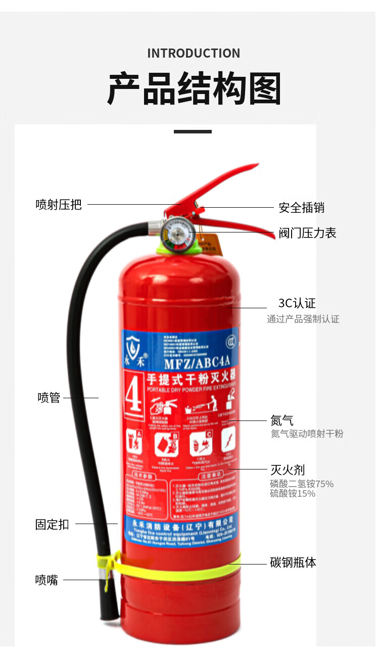 Yonghe fire extinguisher store uses 4kg factory dry powder portable 1/2/3/5/8kg fire extinguisher 8KG fire extinguisher 2 + box national standard fire protection 3C certification
