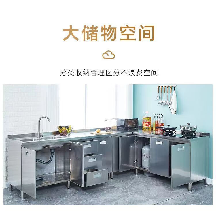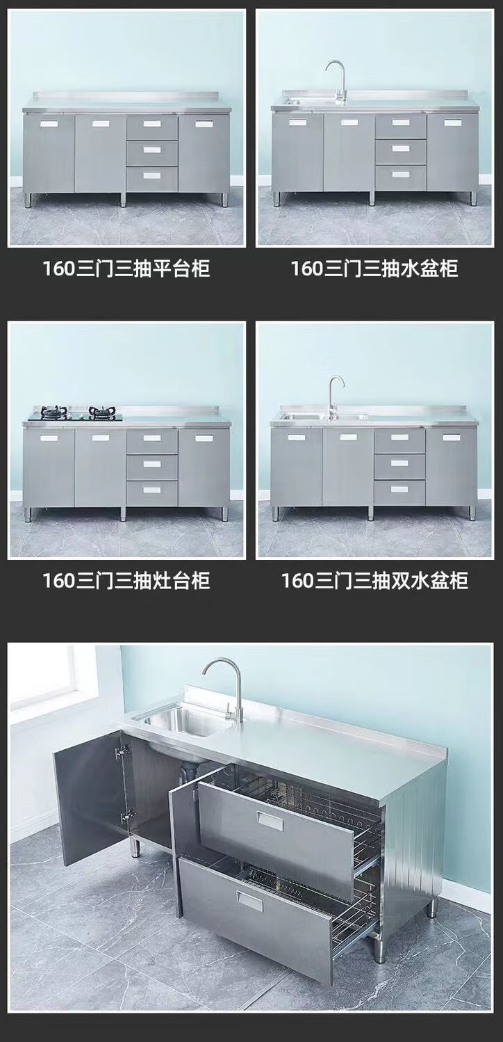 Yingtang 304 cabinet kitchen cupboard stove cabinet sink cabinet integral cabinet thickened simple integrated kitchen cabinet 160 three-door drawer plane 201 stainless steel