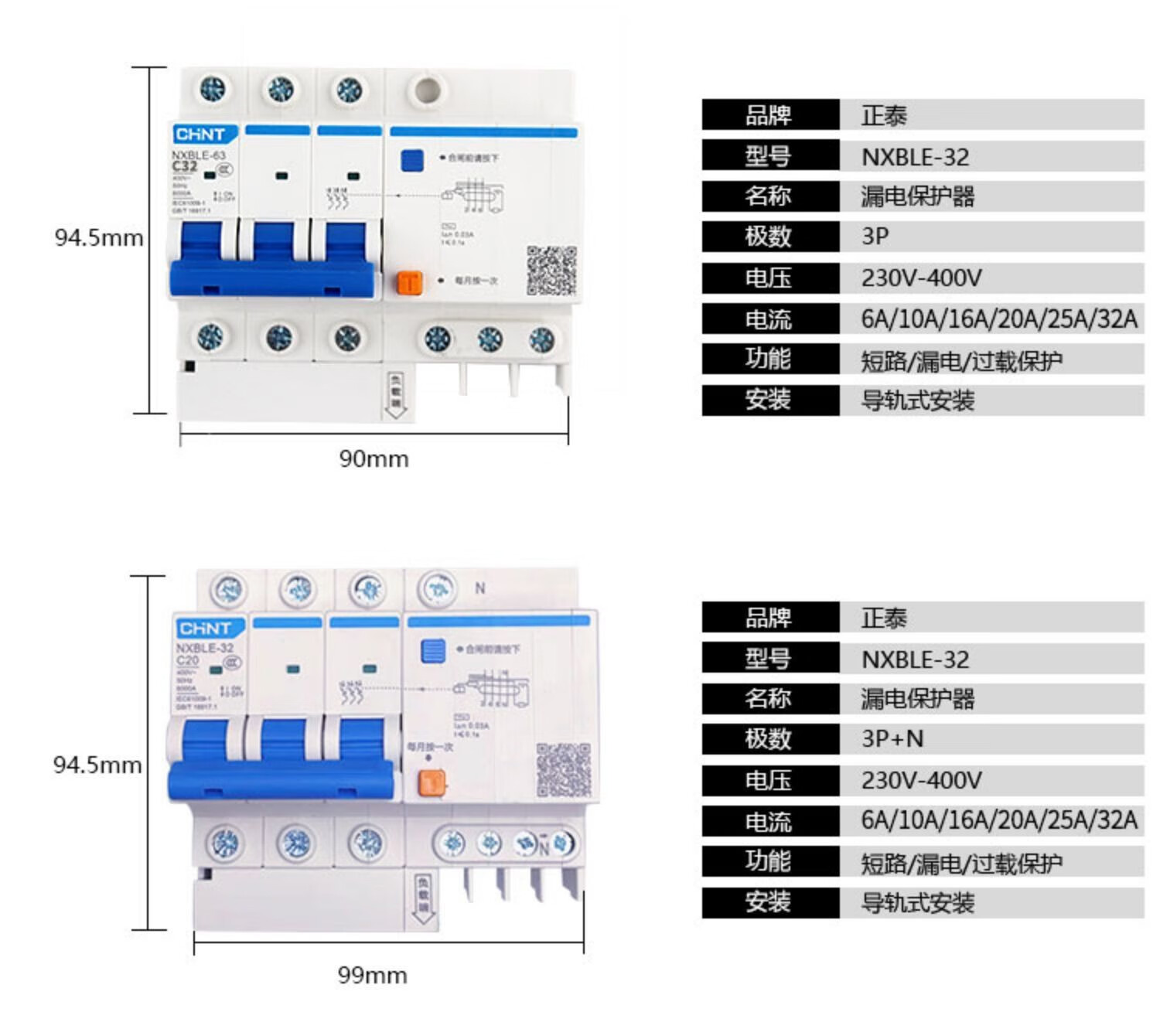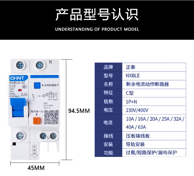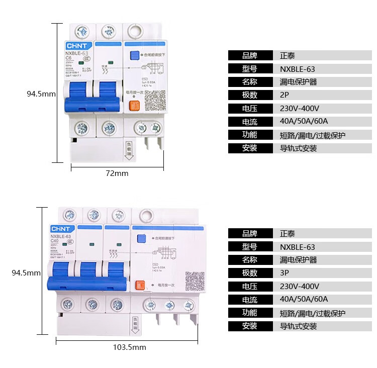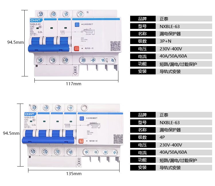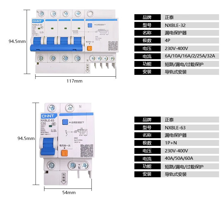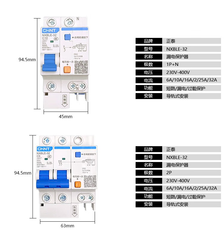 Chint Kunlun NXBLE-32/63/125 1234P leakage circuit breaker protector DZ47LE leakage protection 63A 20A 1P+N