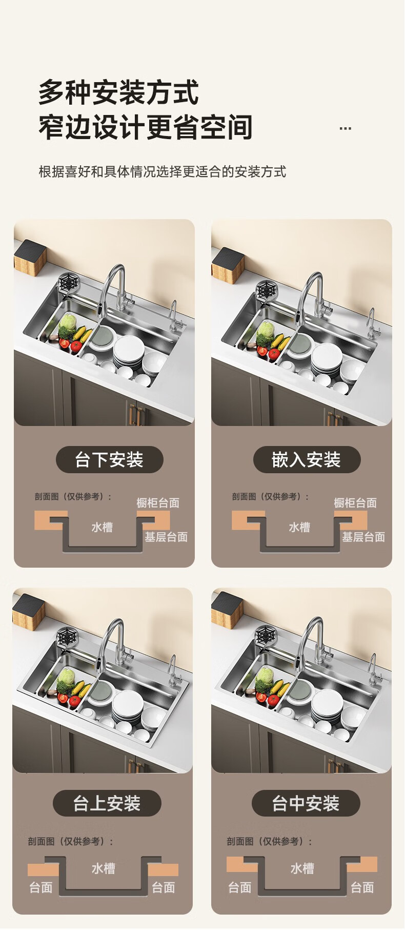 JOMOO honeycomb SUS304 small size household stainless steel handmade thickened nano sink vegetable basin wash basin millet embossed SUS304 60*45 luxury