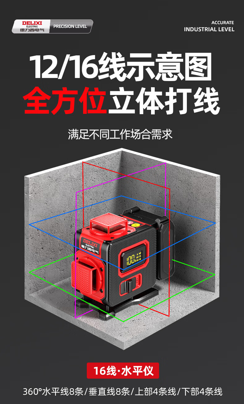 Delixi Electric rainbow machine level red, green and blue 12-line three-color laser infrared high-precision outdoor strong light thin line all-in-one machine three-color machine 12 lines (red, green and blue Big Mac dual electric high configuration)