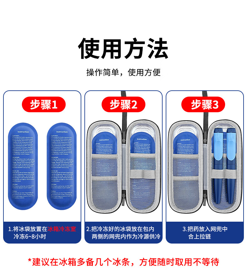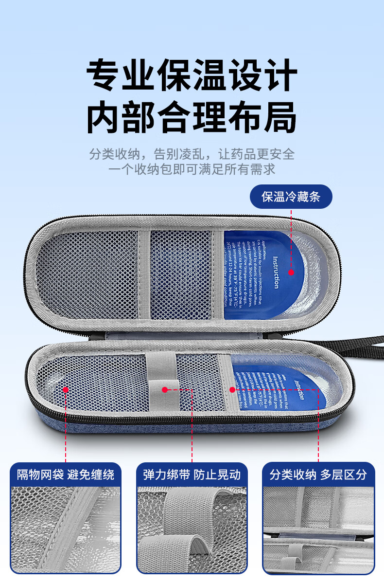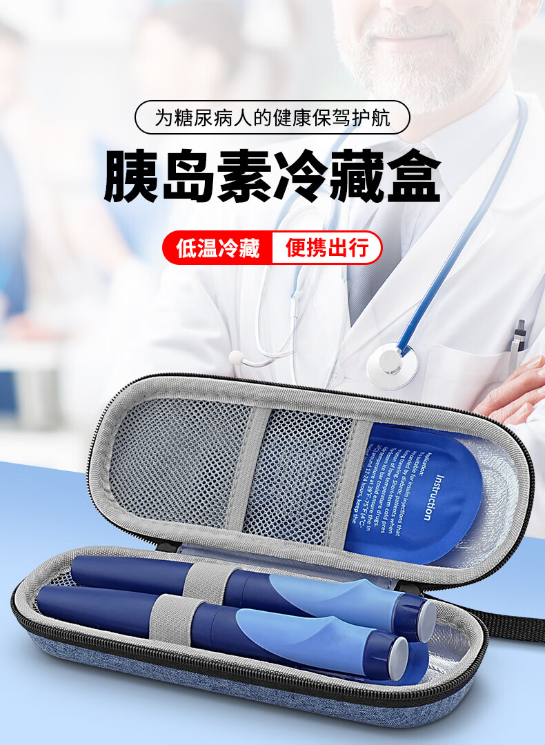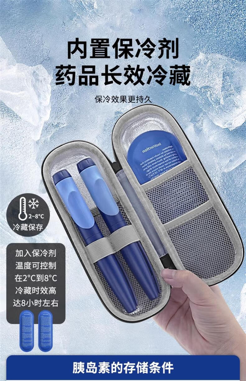 Japan portable insulin refrigerated storage box portable injection pen storage bag household small thermal insulation practical set Dragon Blue + 2 ice bars long-lasting protection