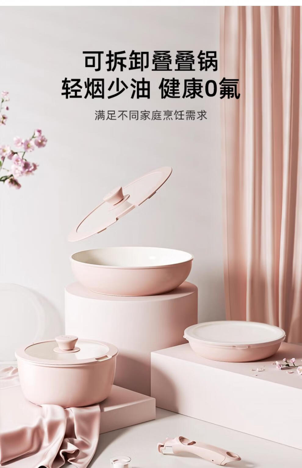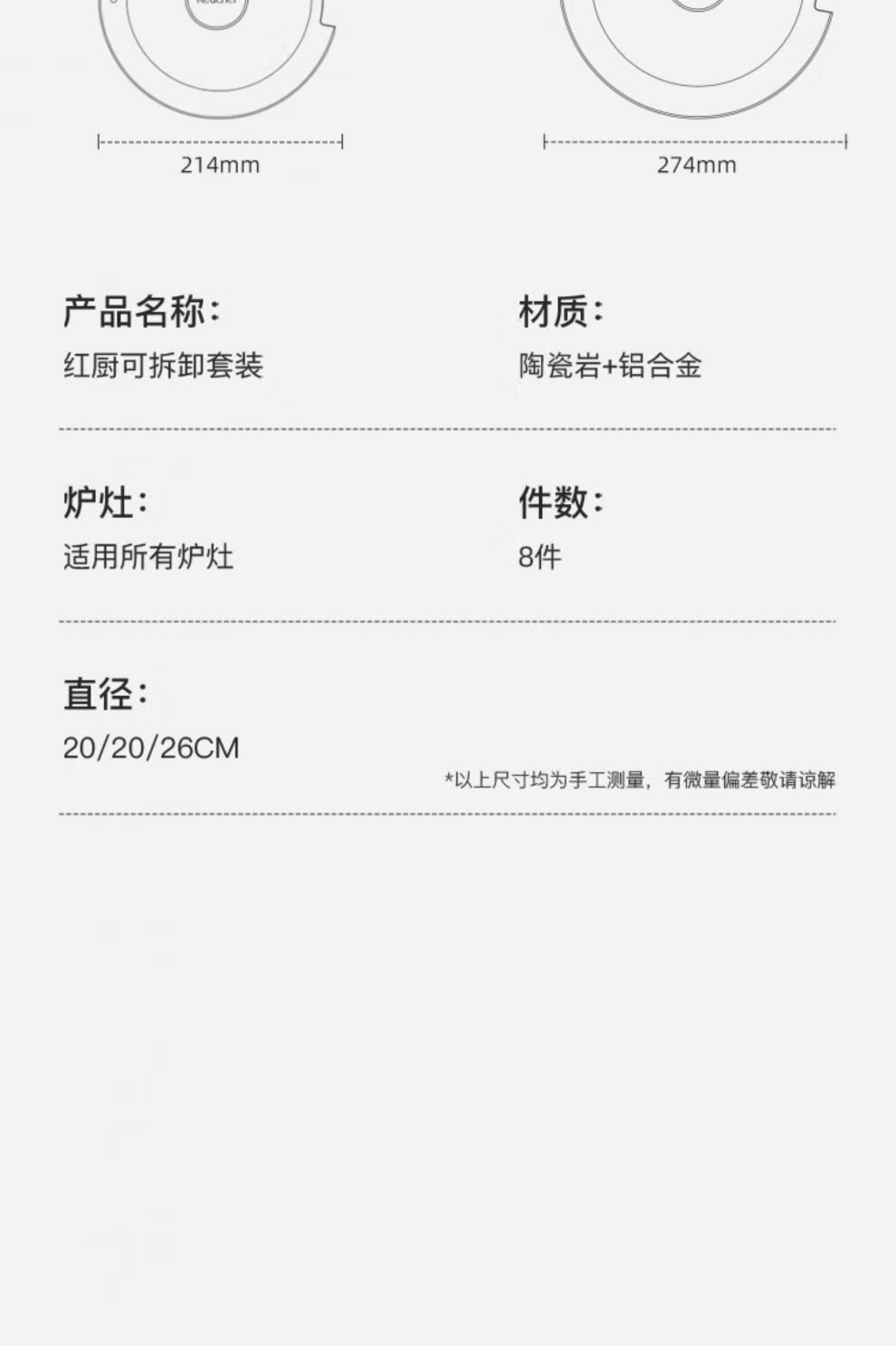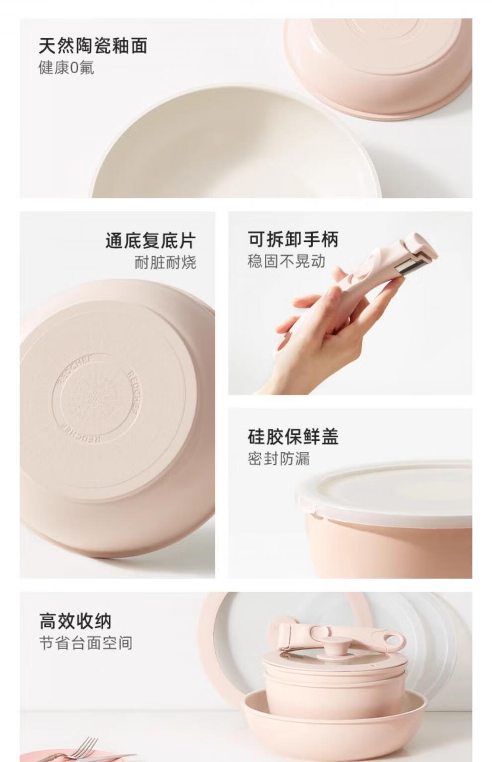 REDCHEF ceramic detachable handle pot household pot set non-stick pot full set wok soup pot pan frying pan detachable stacking pot 8-piece set can be put into the oven - dishwashing