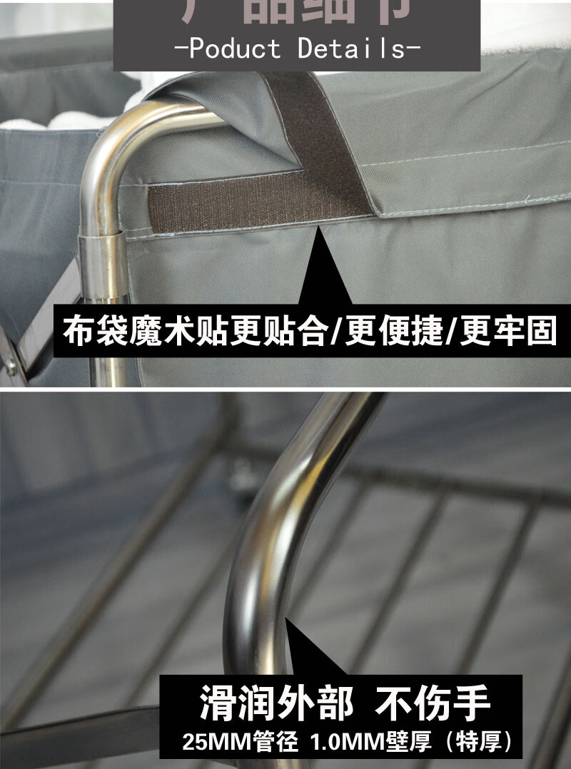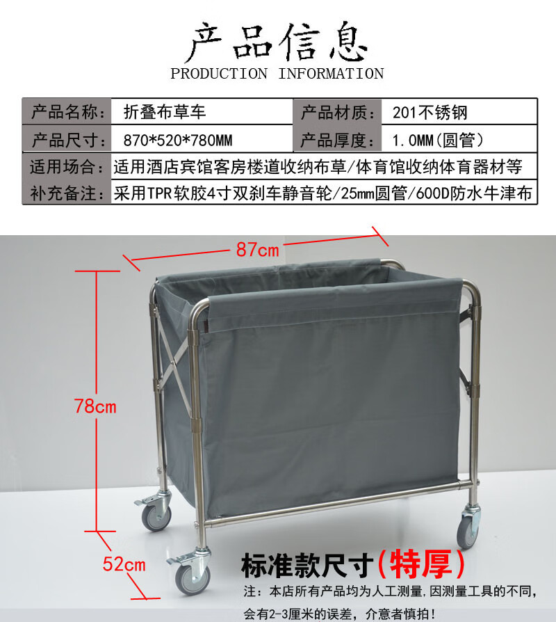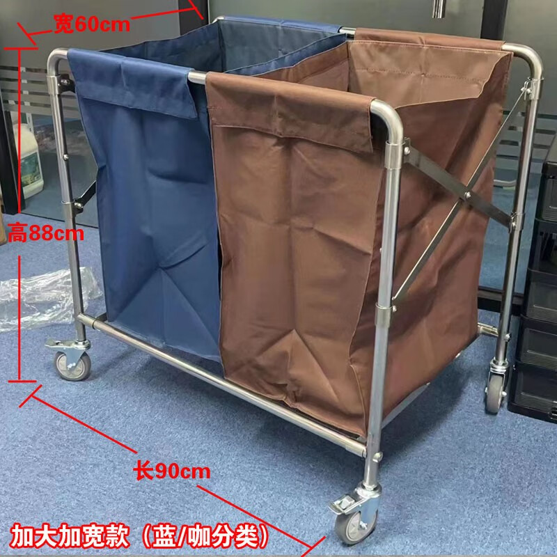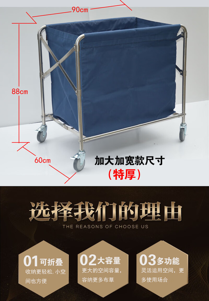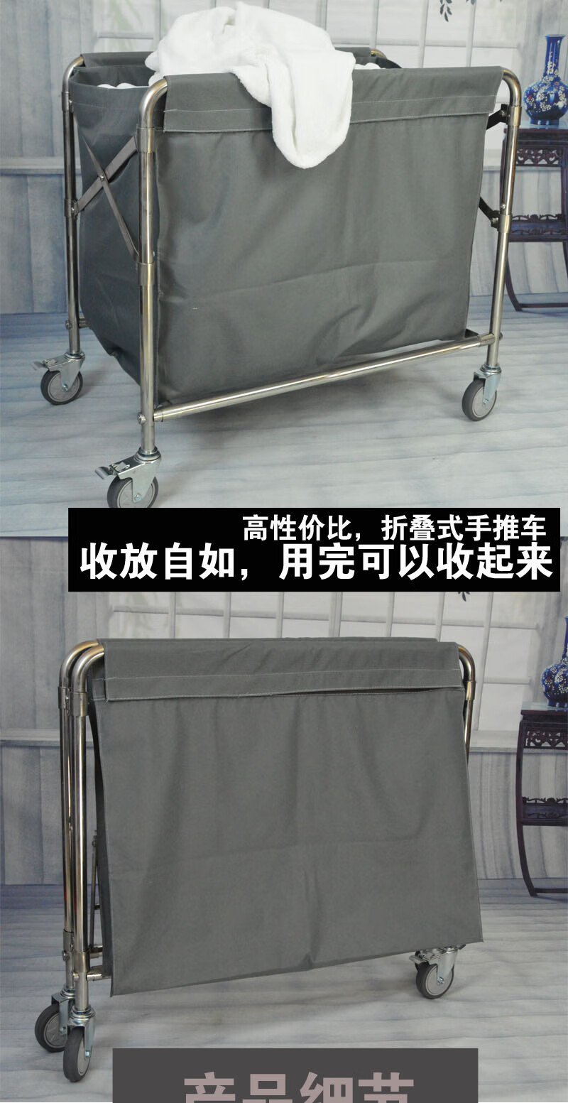 Folding linen cart, stainless steel collection trolley, cleaning room entrance cart, hotel room service cart, work cart, extra thick folding linen cart (with blue bag)