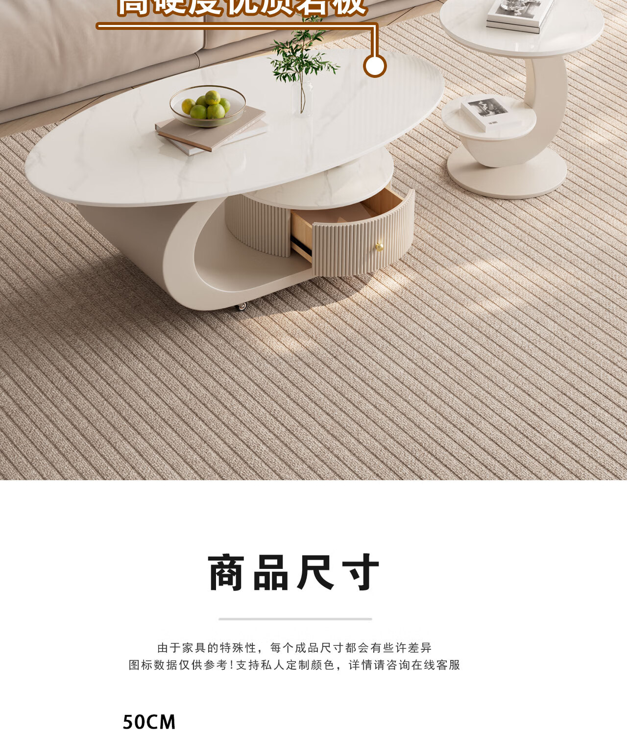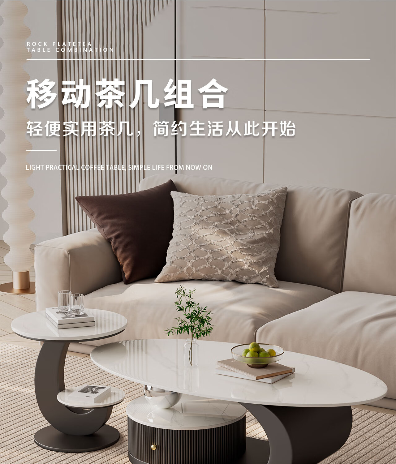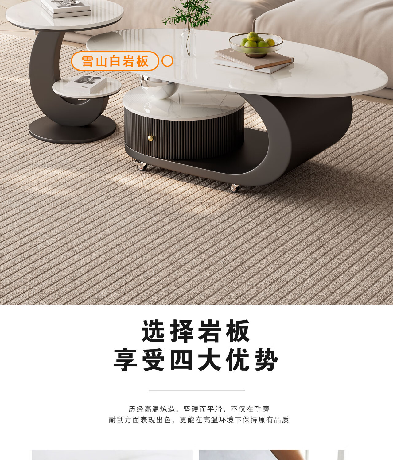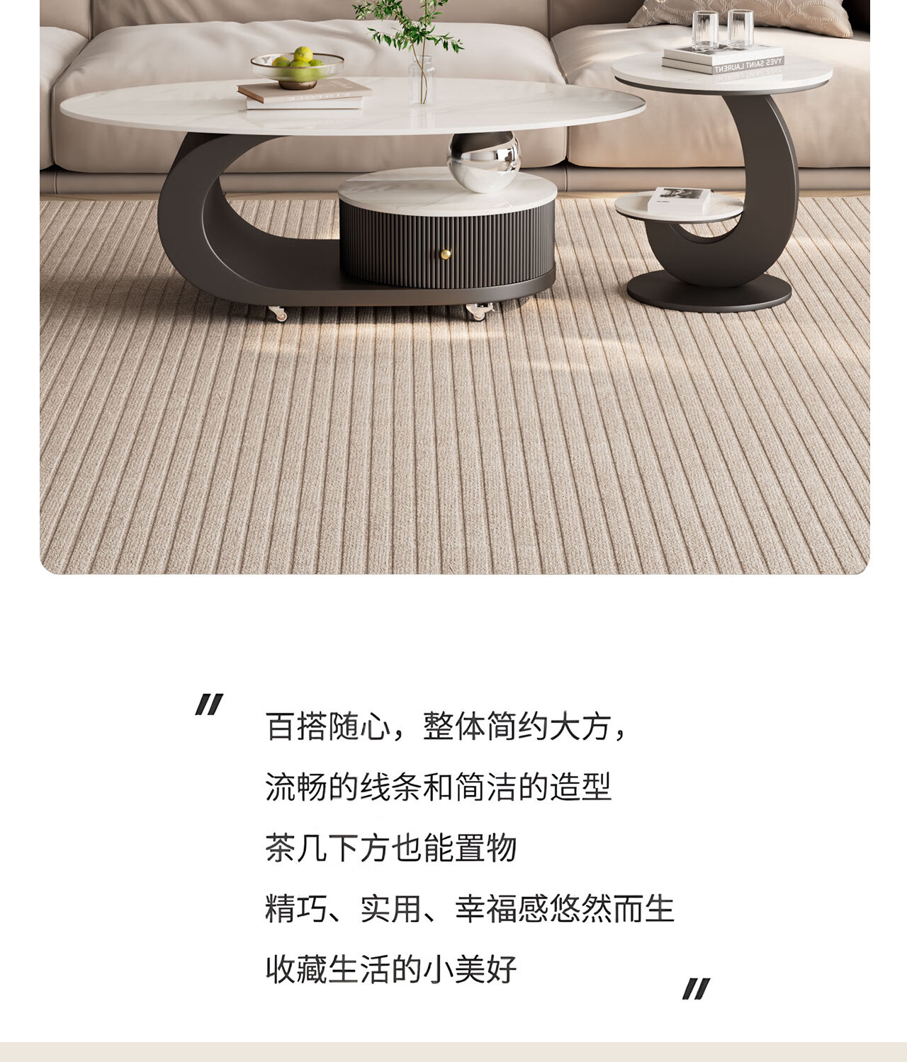 House style light luxury high-end living room household 2025 new movable slate small coffee table combination small apartment sofa side table black frame black cabinet + snow mountain white slate (combination) 100*55*45