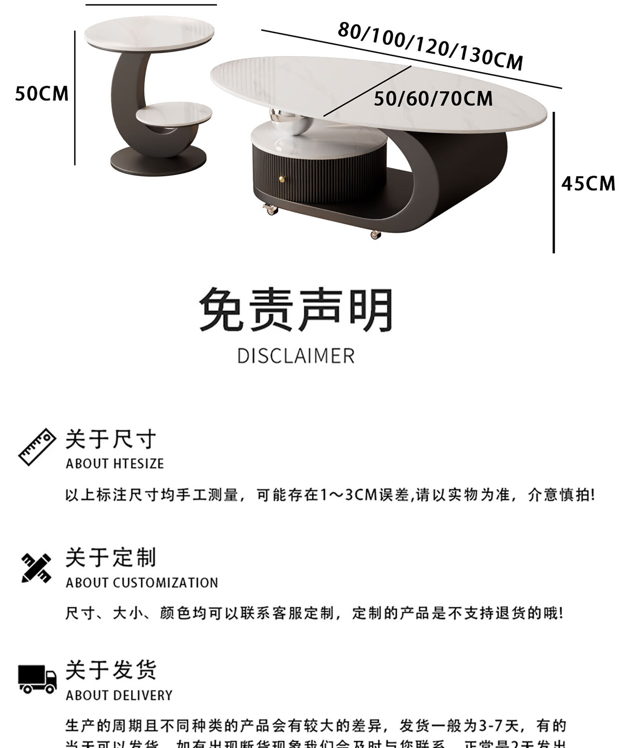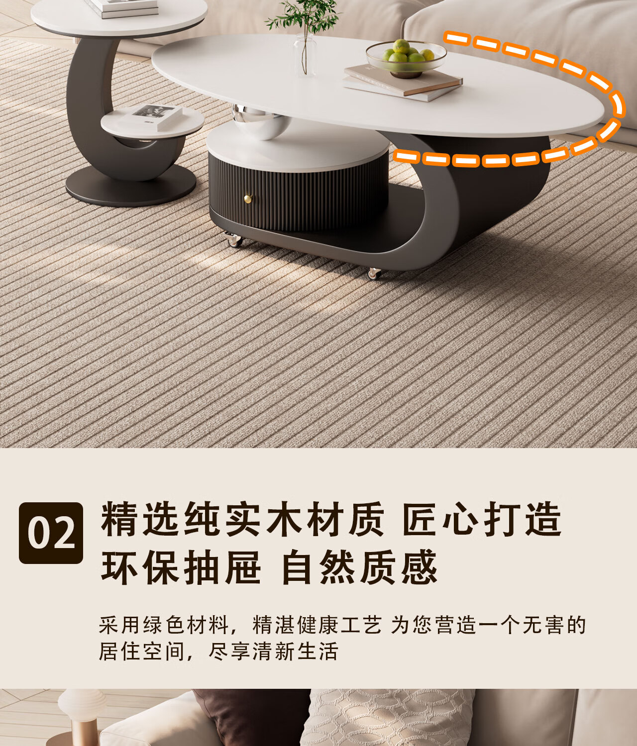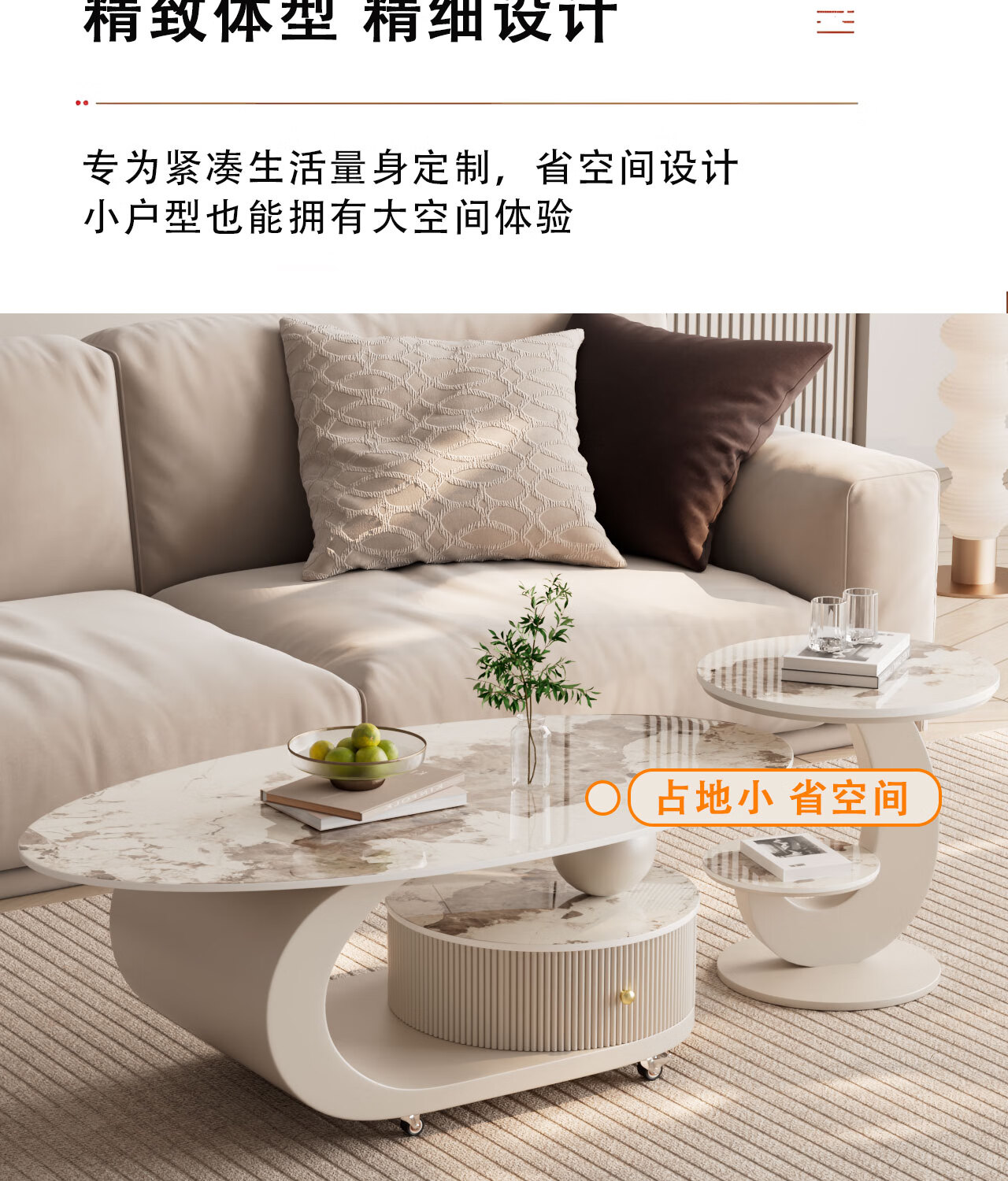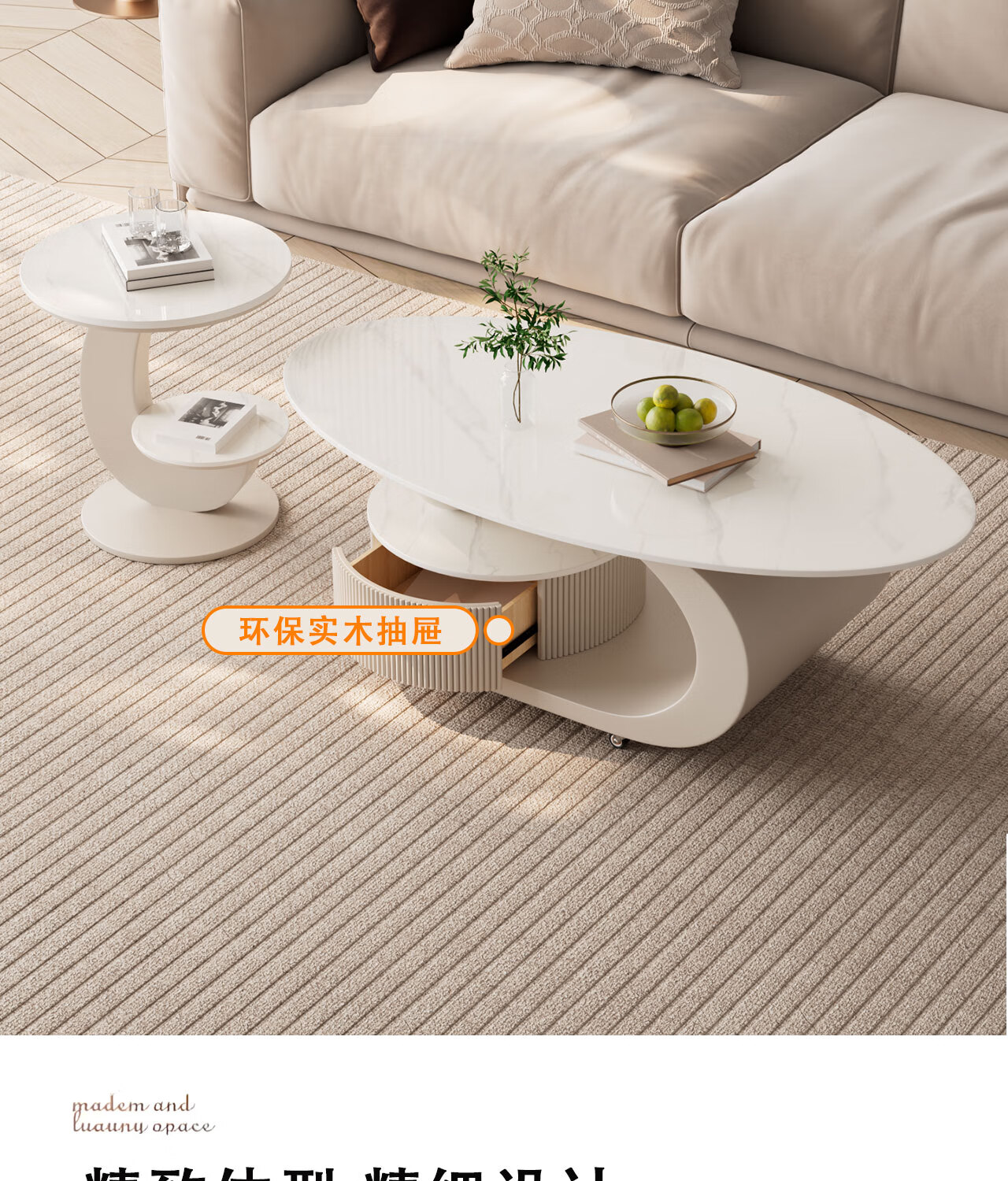 House style light luxury high-end living room household 2025 new movable slate small coffee table combination small apartment sofa side table black frame black cabinet + snow mountain white slate (combination) 100*55*45