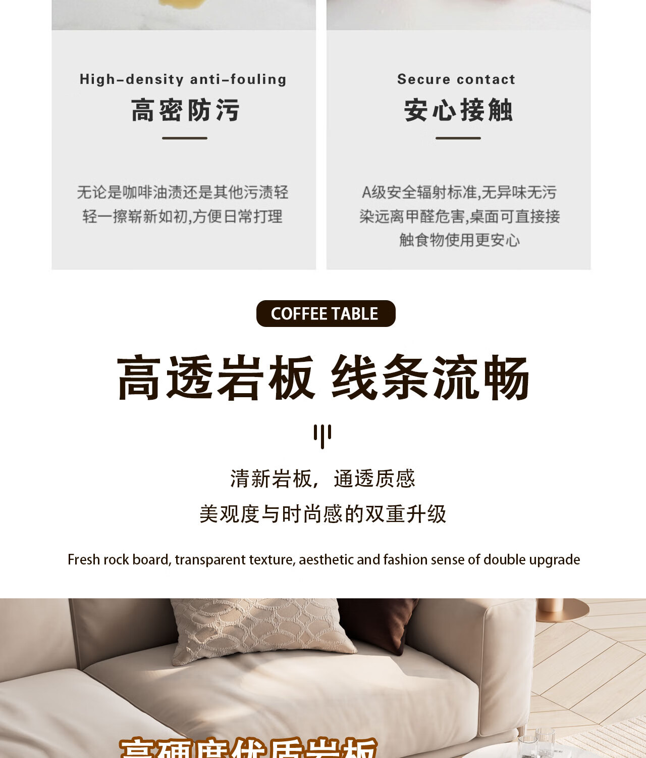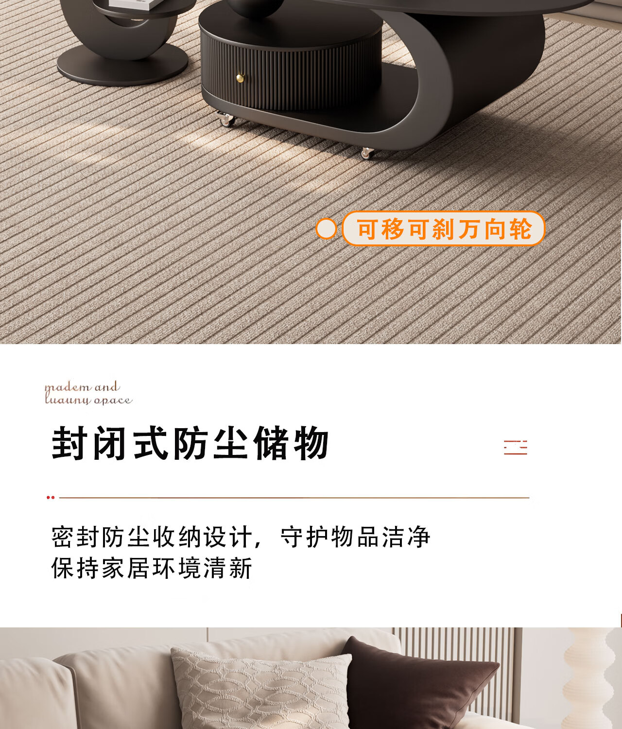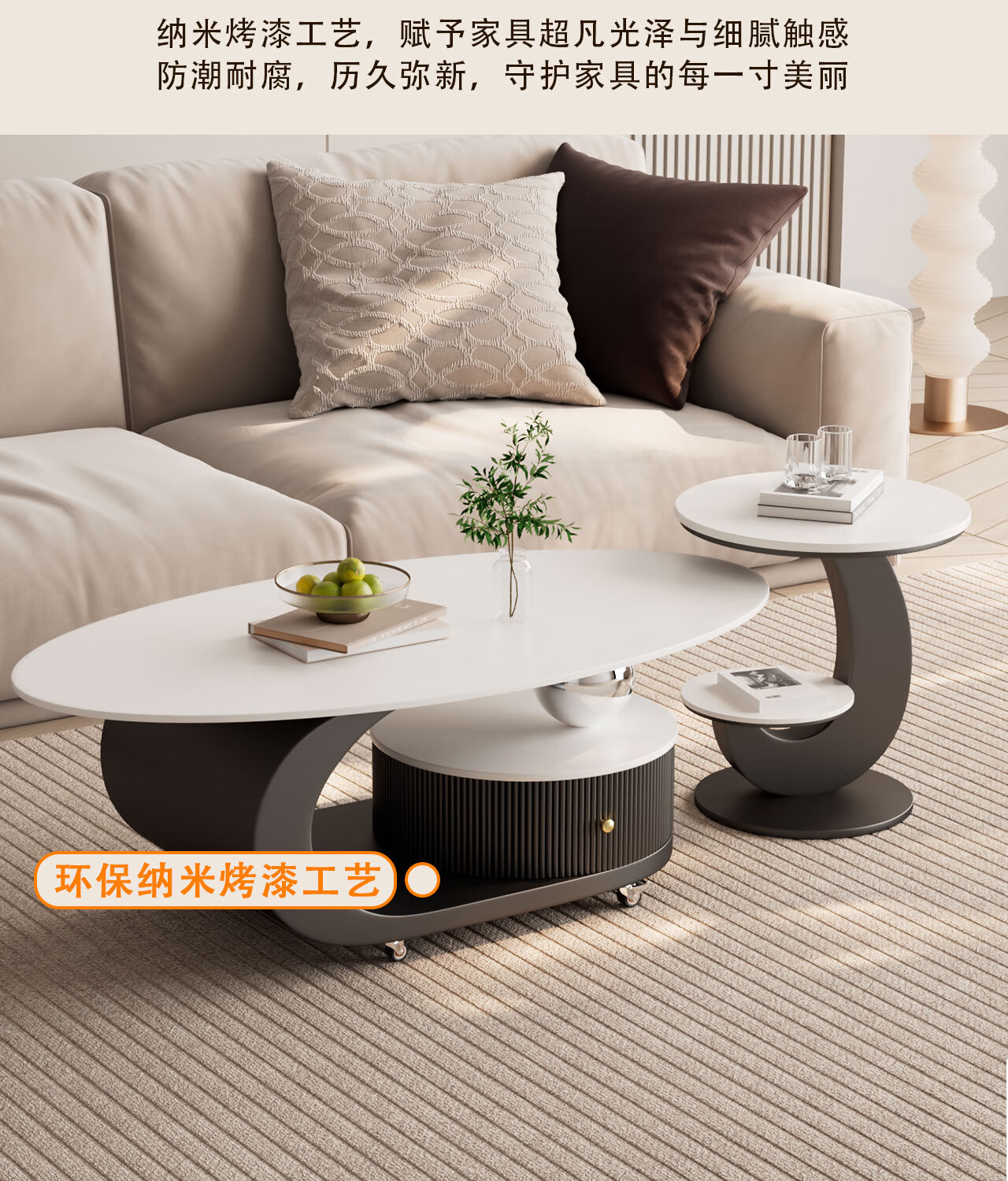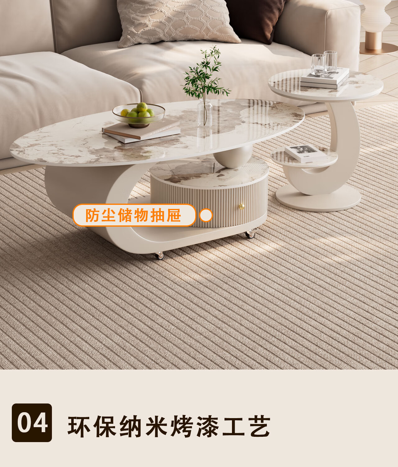 House style light luxury high-end living room household 2025 new movable slate small coffee table combination small apartment sofa side table black frame black cabinet + snow mountain white slate (combination) 100*55*45