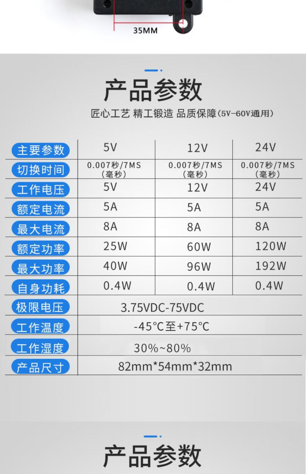 5V12V24V~60VDC DC dual power automatic switcher two-way uninterruptible power outage high-speed transfer switch