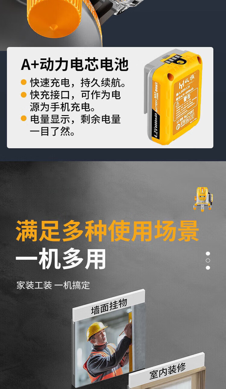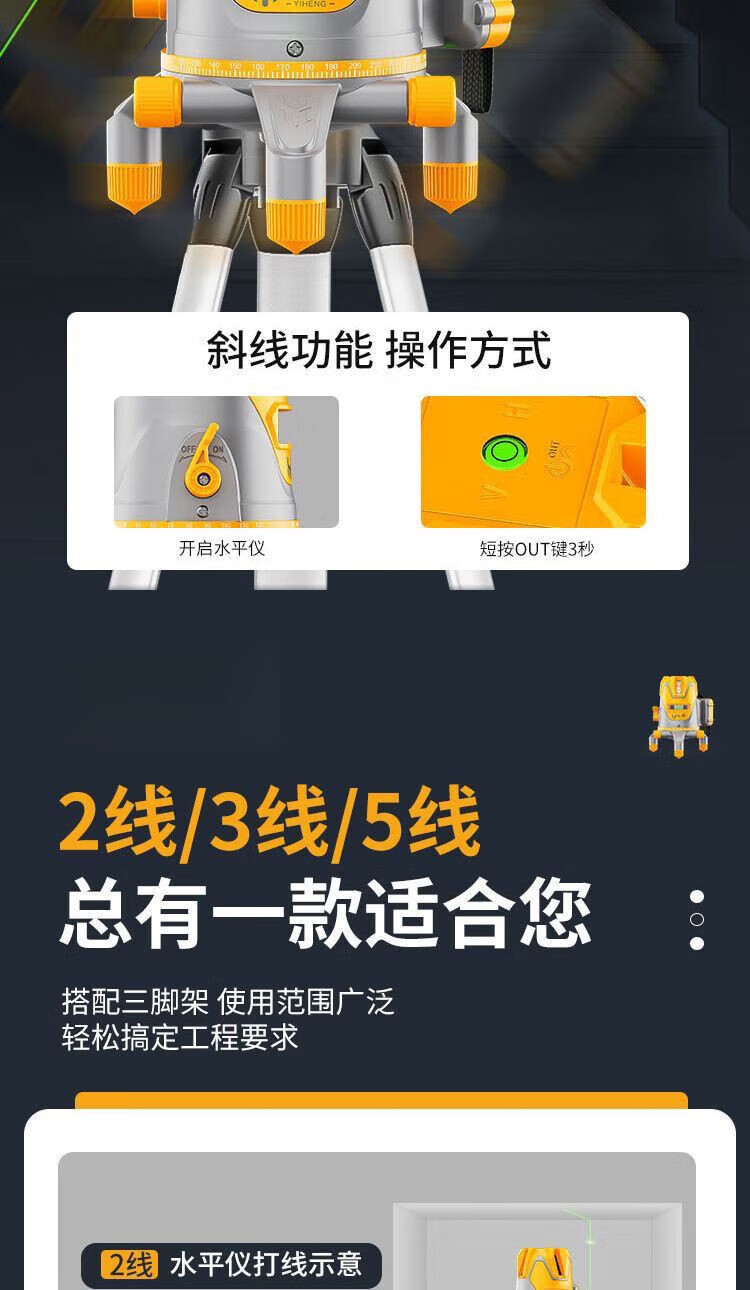 Aoyanlai infrared level meter under strong sunlight 100 meters new line 2 lines 5 lines laser high precision red light under sunlight 622 super bright green light 2 line level meter