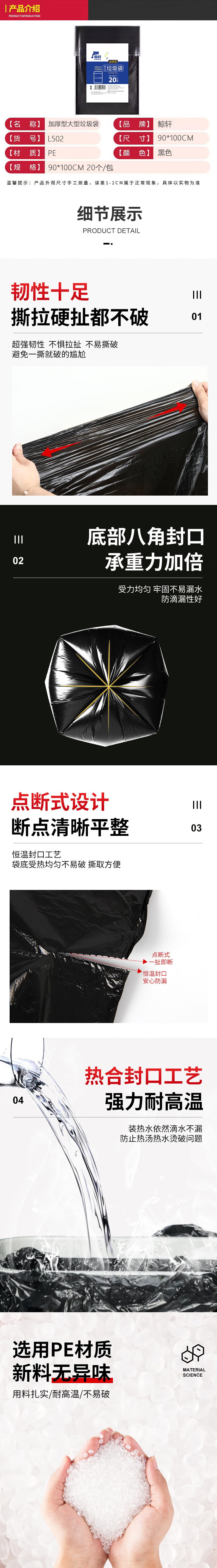 Jingxuan L502 90*100cm 20 pieces/bag thickened large garbage bag (price unit: bag) black