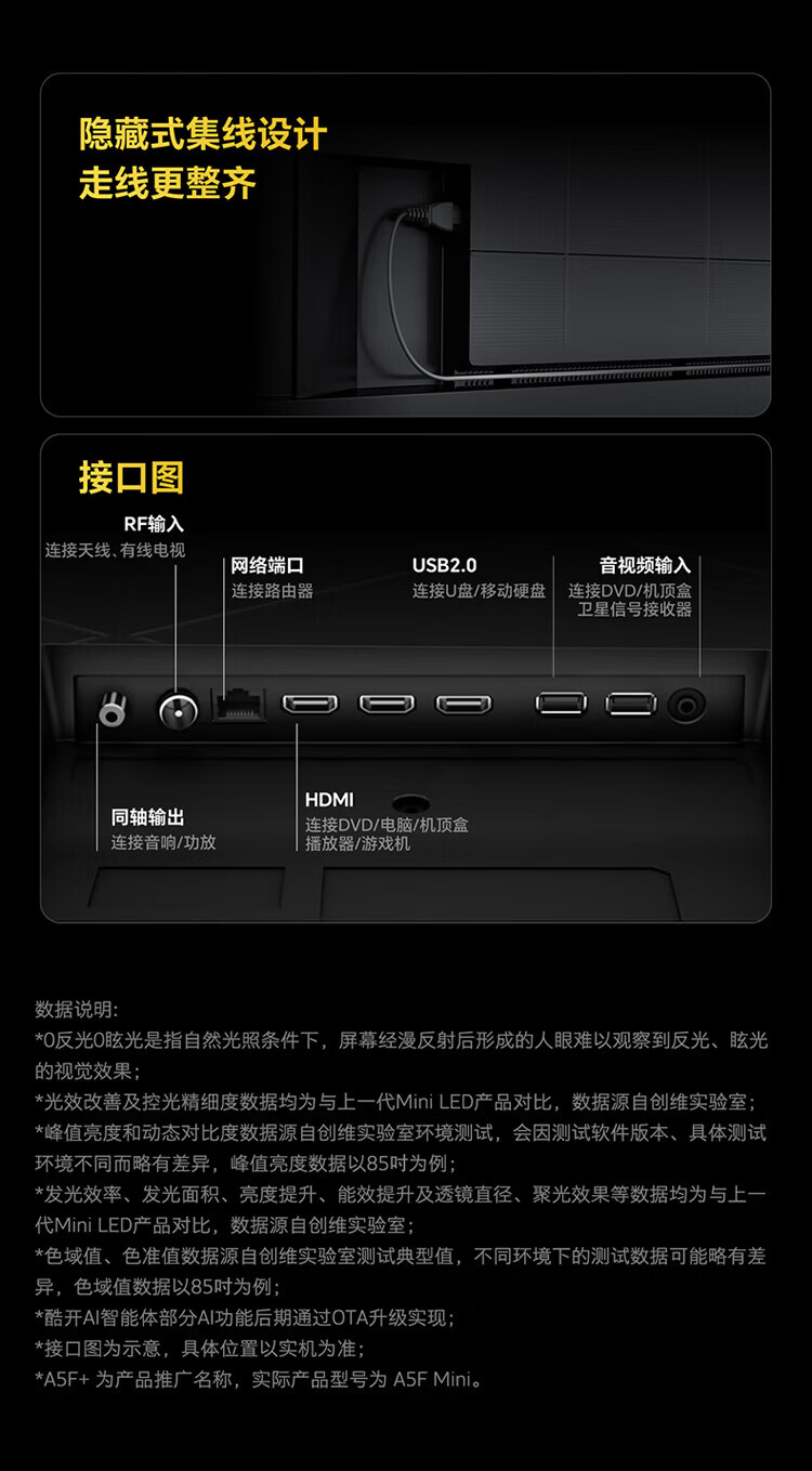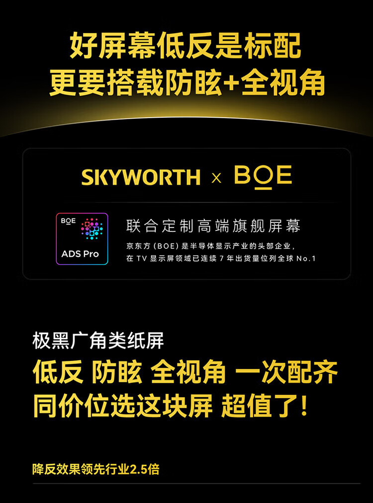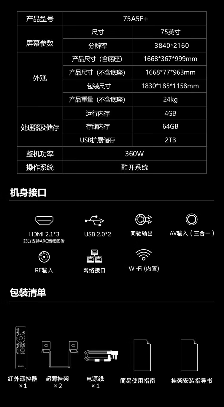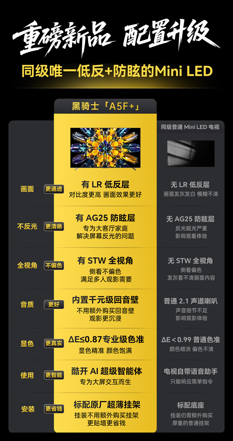 Skyworth TV Black Knight 75A5F+ 75-inch low-reflection anti-glare mini led TV 100-level partition 75-inch LCD smart 4K flat-panel TV state subsidy 75-inch