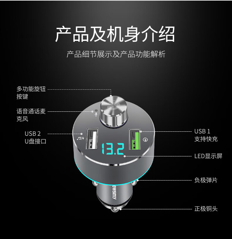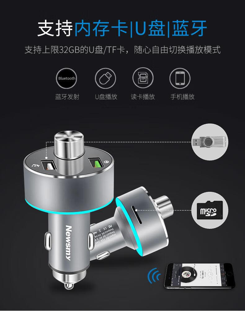 BEYZK Car Bluetooth Receiver Lossless Sound Quality MP3 Player Car Converter Cigarette Lighter Charger Alloy Lossless Sound Quality 40W Super Fast Charge Official Standard