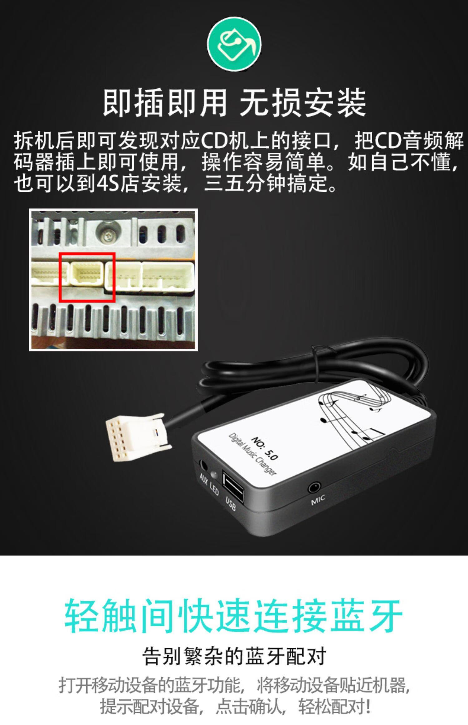 BEYZK is suitable for Toyota C machine modified AUX Reiz Corolla Vios Camry Corolla plus USB car Bluetooth module supports Bluetooth USBAUX hands-free calling