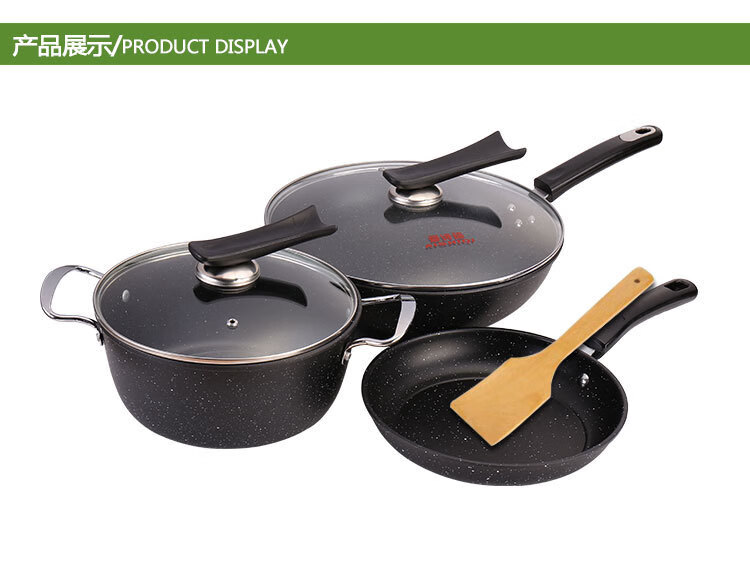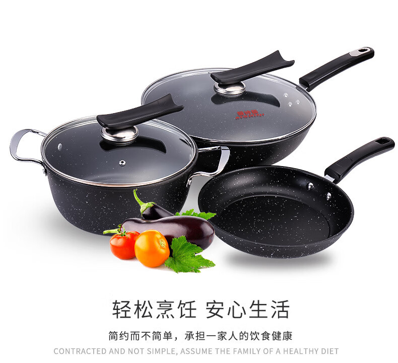 Medical stone pot three-piece set, wok and soup pot three-piece set, refined iron non-stick gift online supermarket, wok (with lid) + frying pan (without lid) + soup pot (with