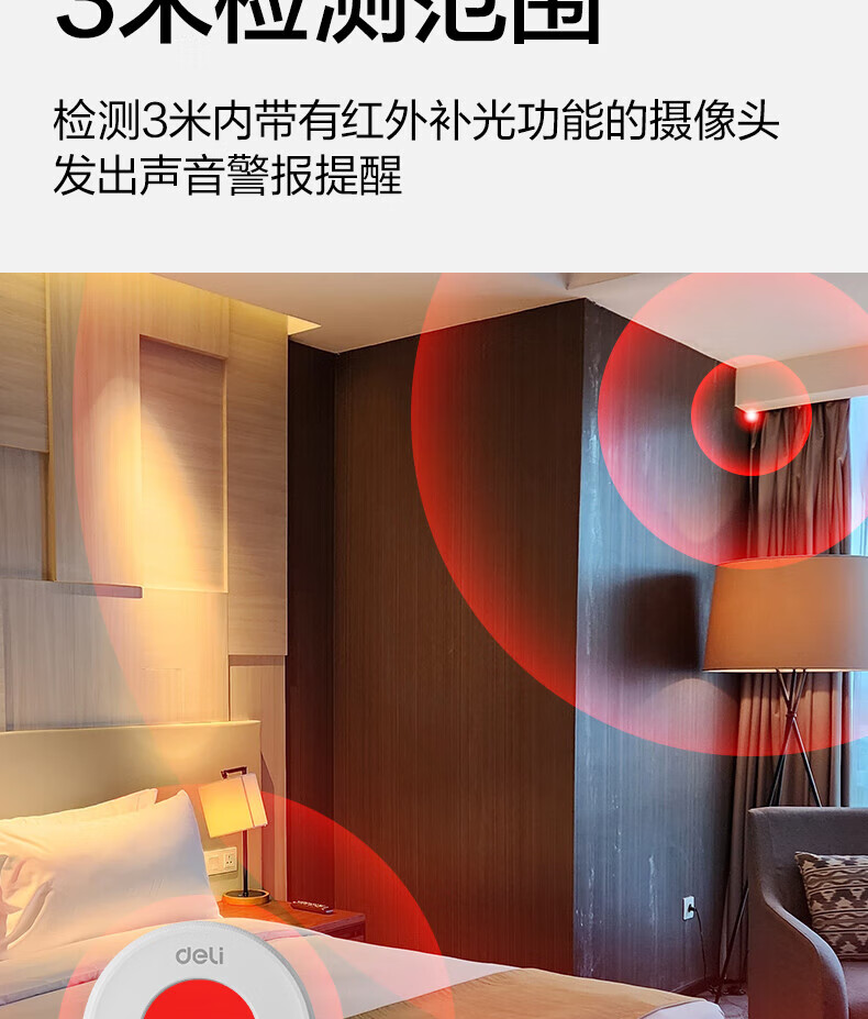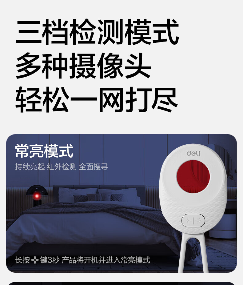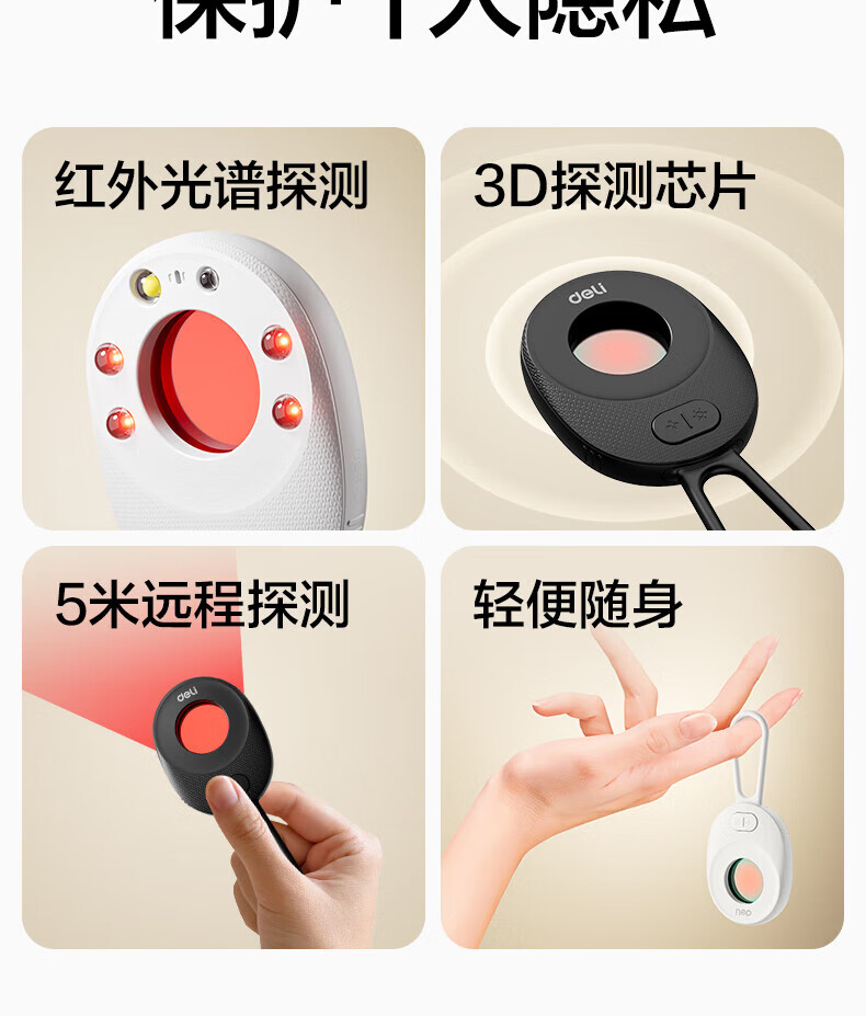 Deli hidden camera smart detector hotel security anti-peeping artifact infrared camera detector camera detector three-speed detection black