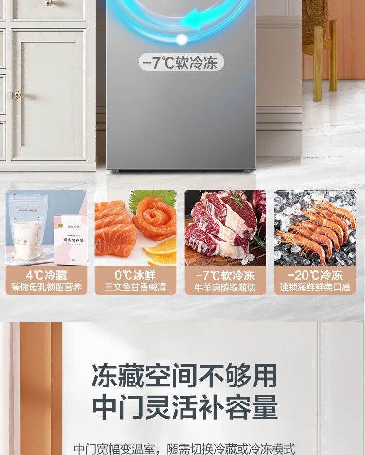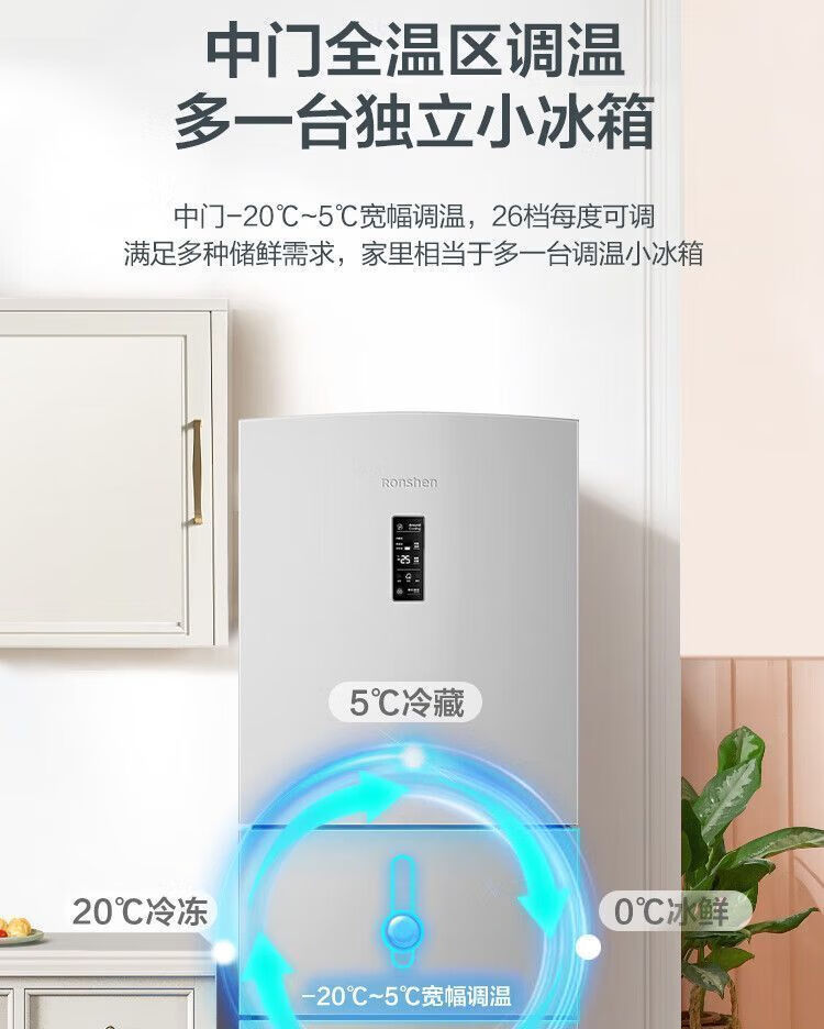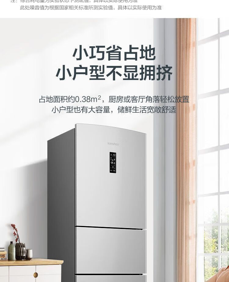 Ronshen 253 liter air-cooled three-door frost-free refrigerator first-class small refrigerated freezer BCD-253WD12NP *Pn21Dw352-bcd+ active sterilization