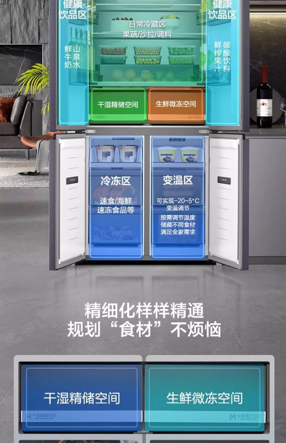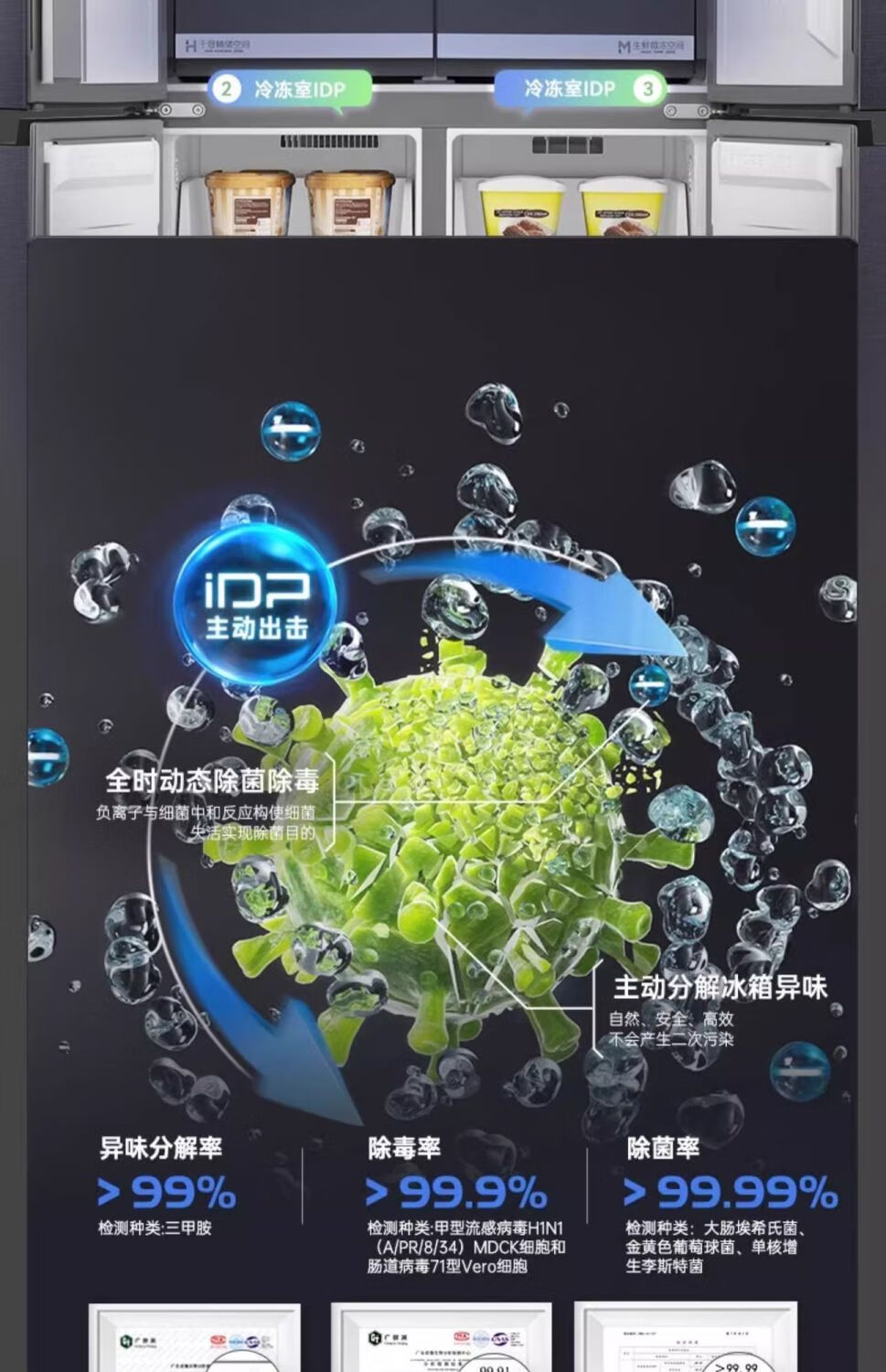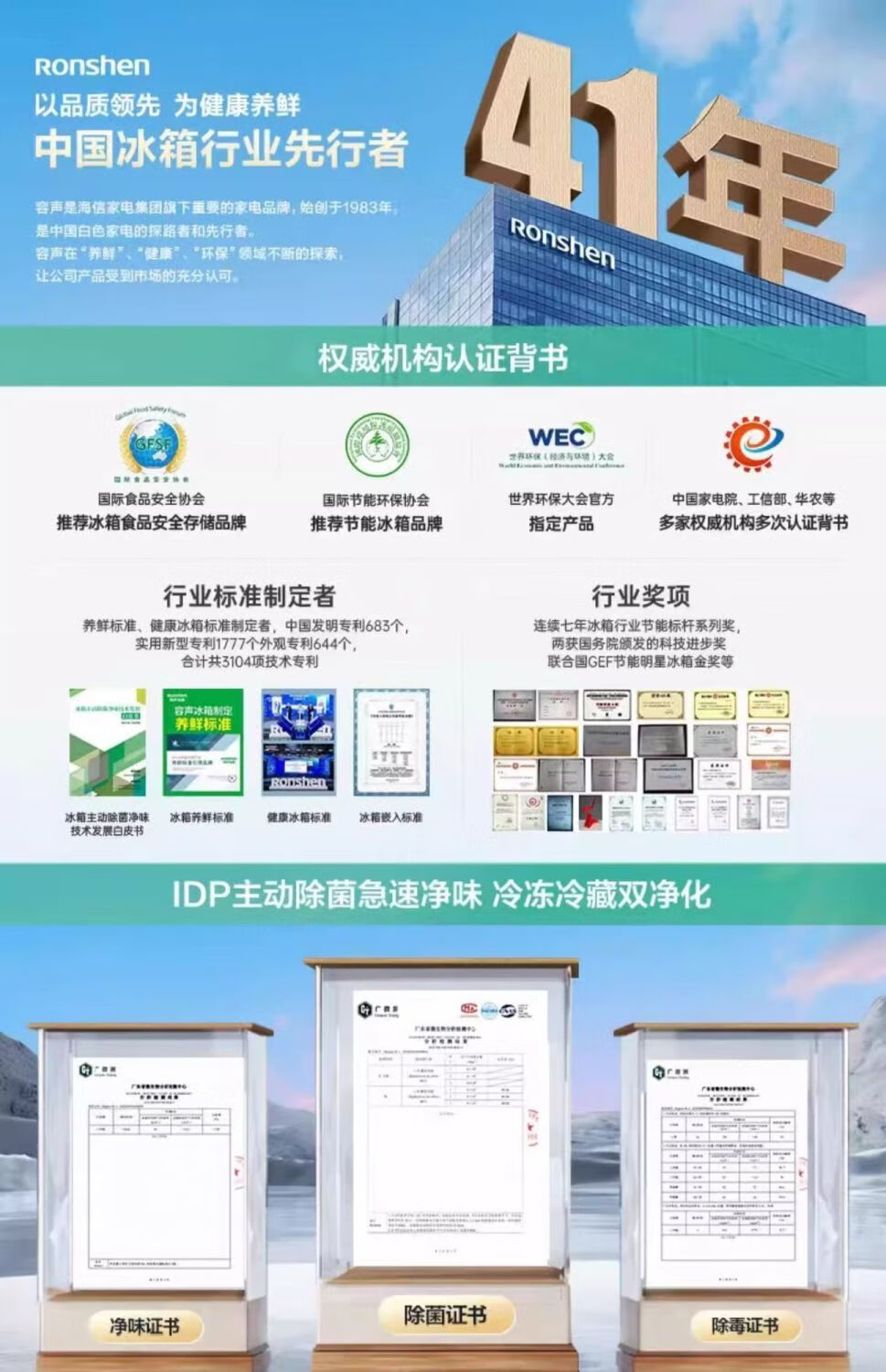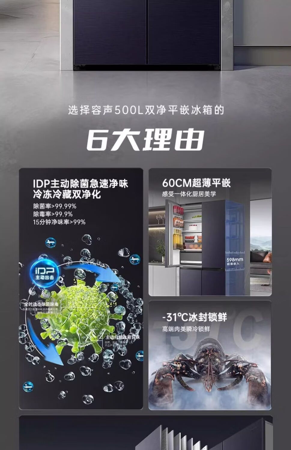 Ronshen's new RS Ronshen 500L flat-mounted IDP double purification double cycle flat-mounted cross four-door refrigerator new Ronshen ipd active sterilization-60cm