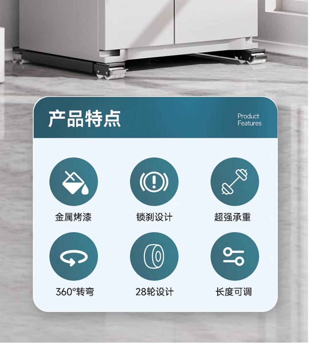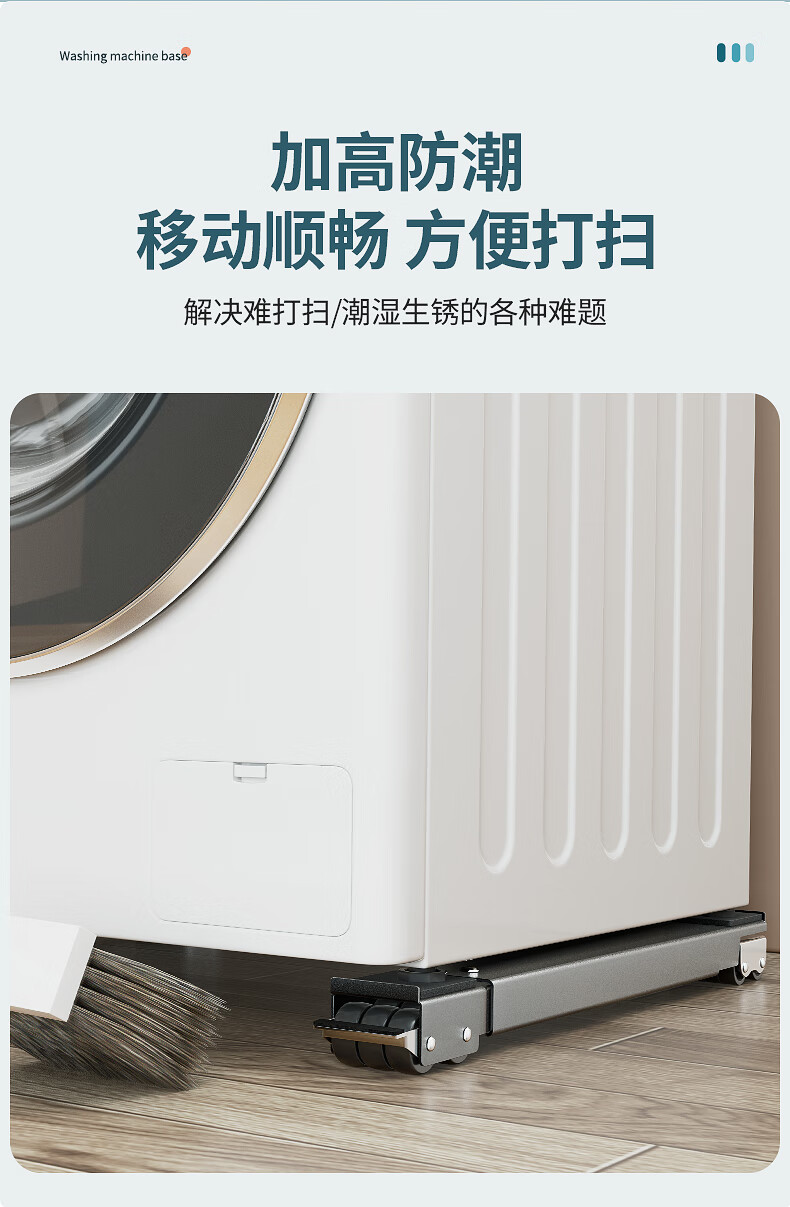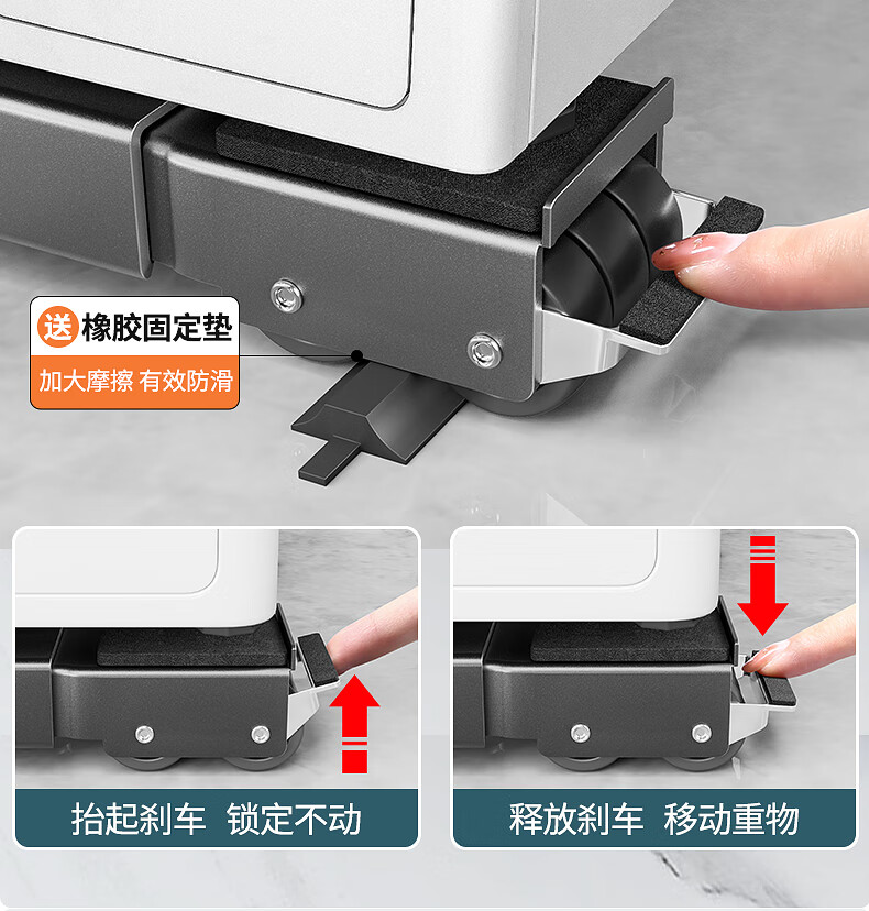 Wooden Moon Star Washing Machine Base Shelf Universal Wheel Refrigerator Storage Rack Universal Roller Pulley Removable Anti-vibration Height Bracket Universal Silver Gray 28 Wheels + Crowbar Retractable + Brake