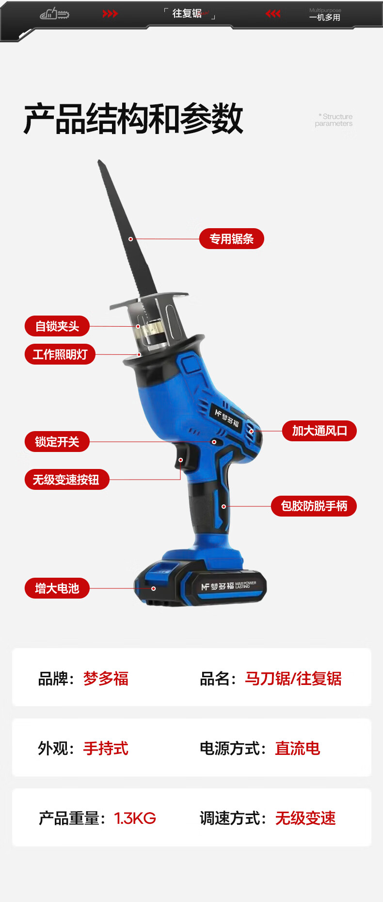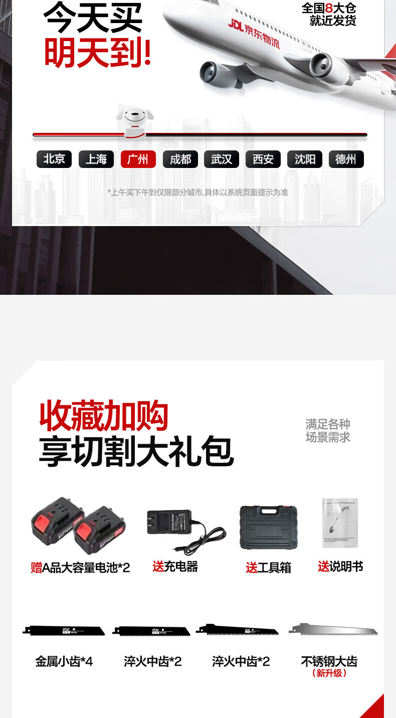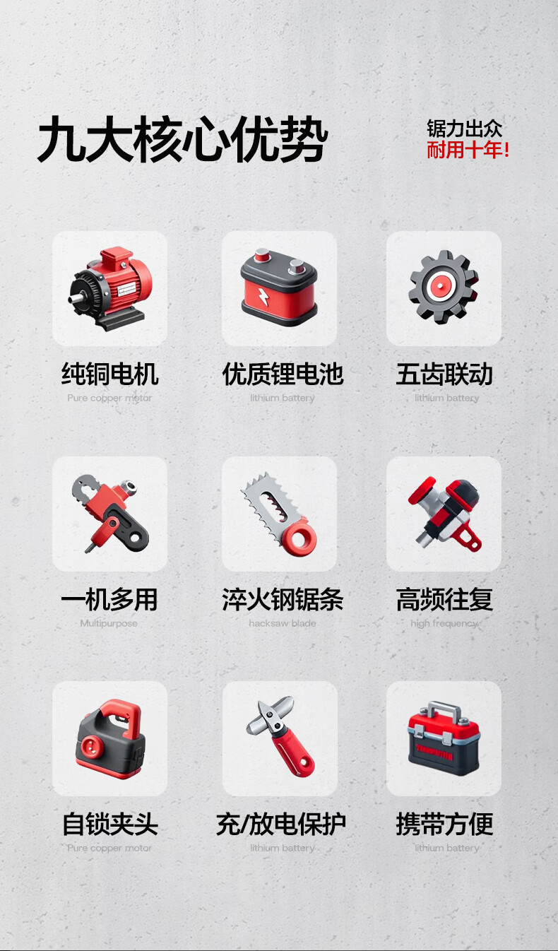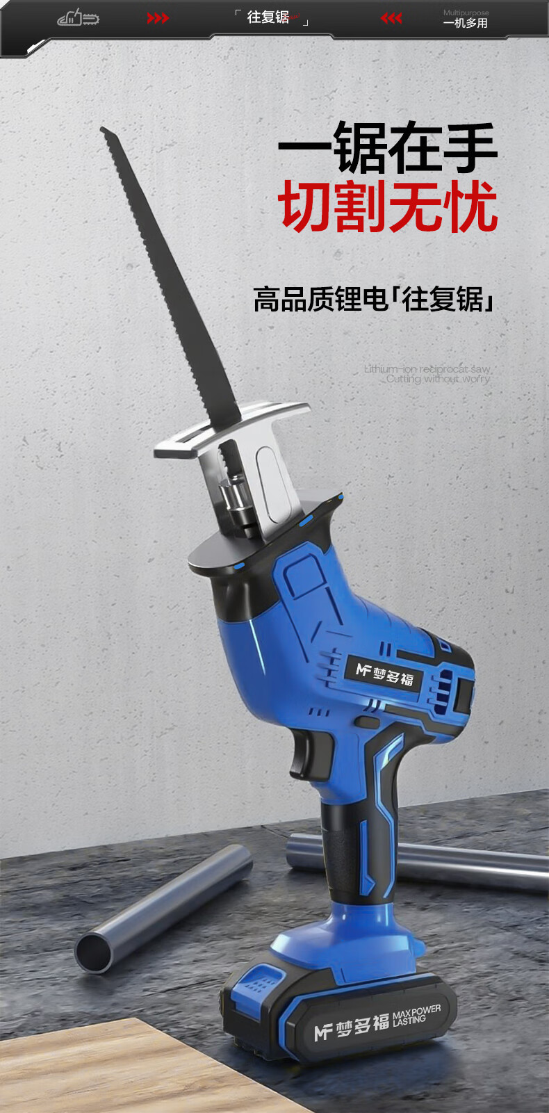 Mondorf lithium-ion reciprocating saw, electric saber saw, electric saw, household small handheld saw, tree sawing artifact, rechargeable woodworking saw, top version 8.0AH dual-electric storage box + 9 saw blades, high-power hand saw, outdoor pruning saw, bone metal plastic pipe