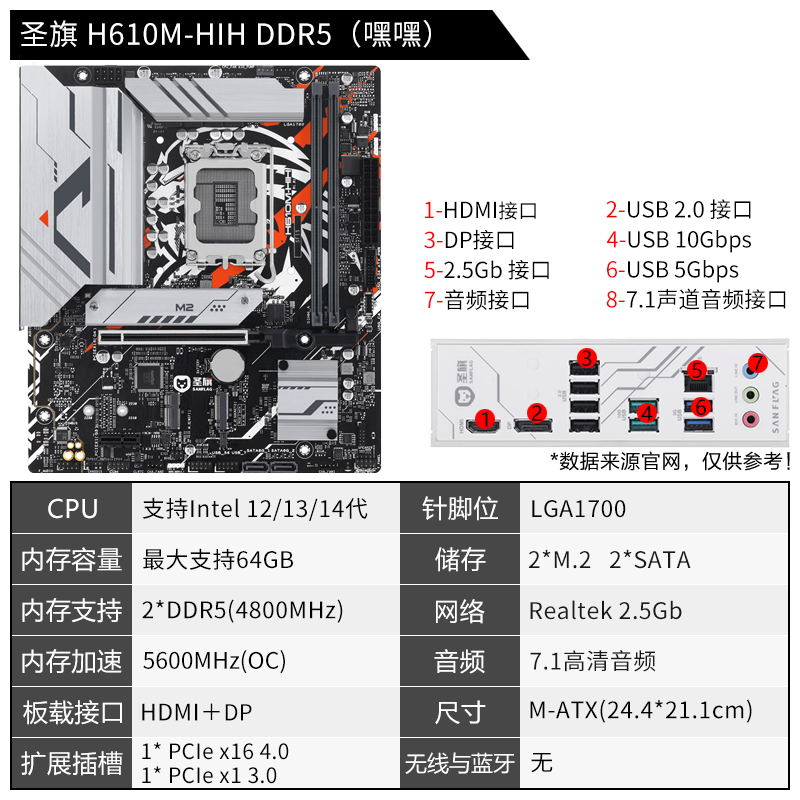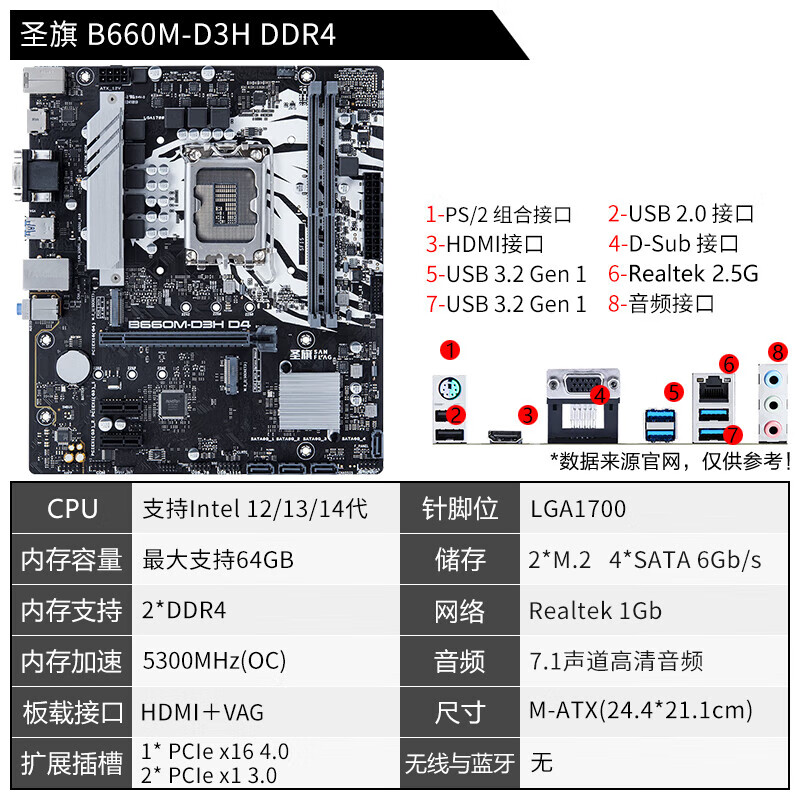 Shengqi H610/B660/B760 series desktop motherboard supports INTEL 12/13/14 generation CPU H610M-D3H/M.2 DDR4 single motherboard, one-year store warranty