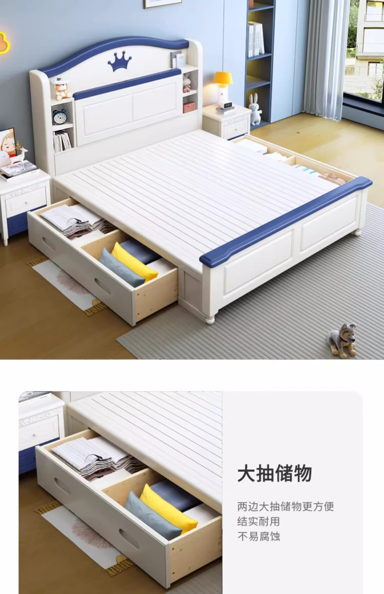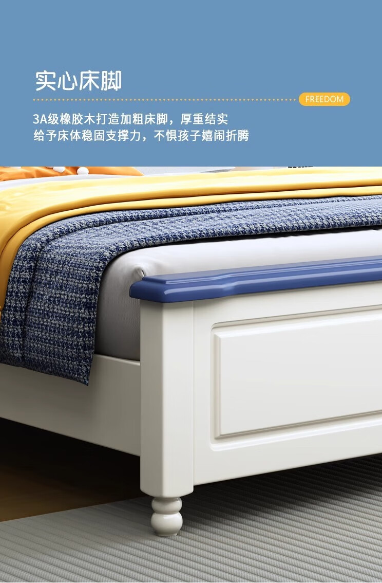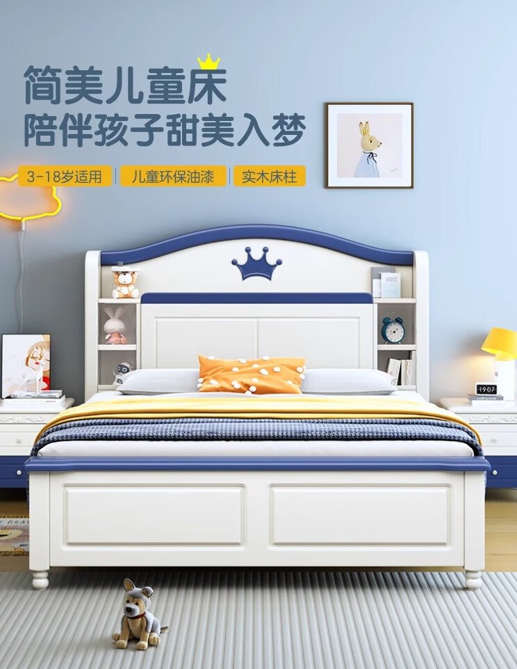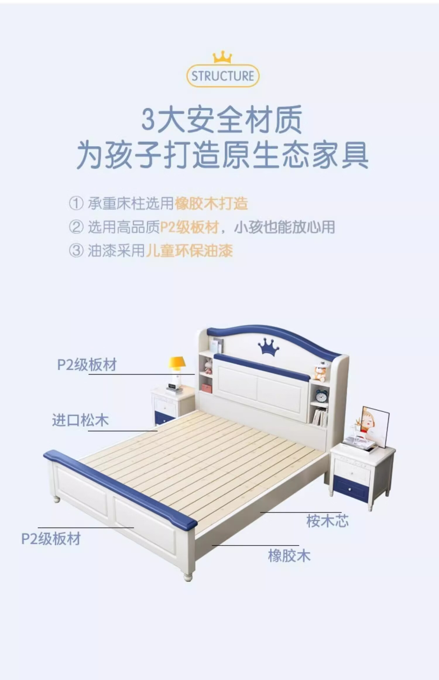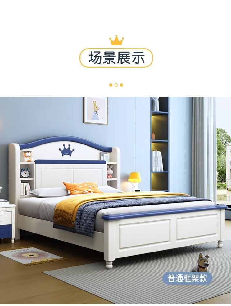 Oka Star solid wood children's bed for boys, teenagers, girls, princess bed, girl's bedroom, American modern simple children's bed, bed + 10cm spine protection, environmentally friendly brown mat 1800*2000 (frame style)