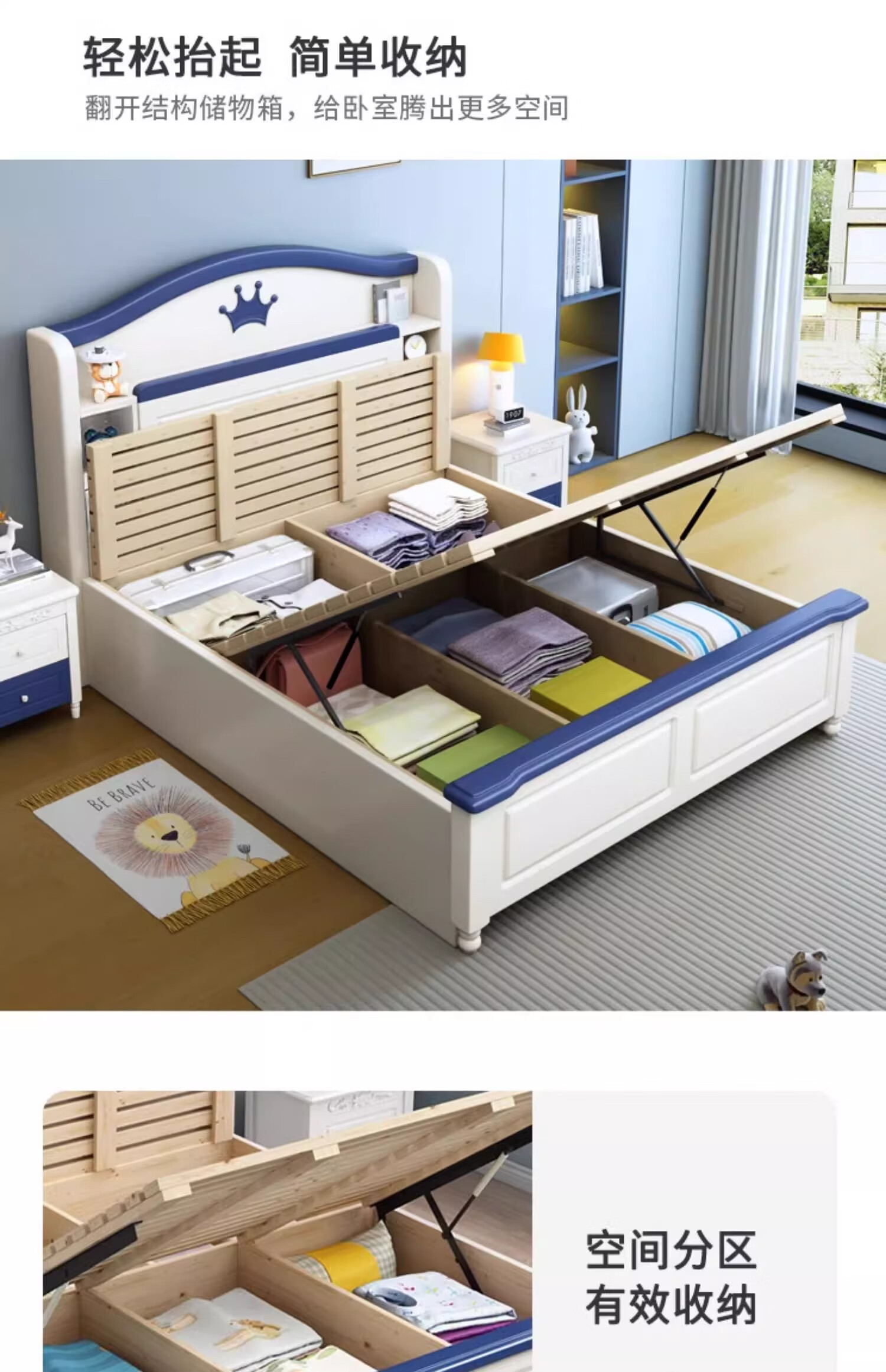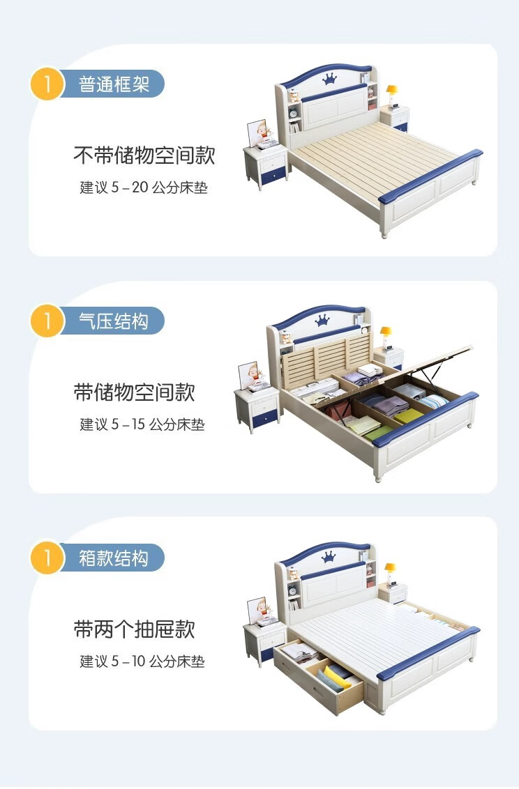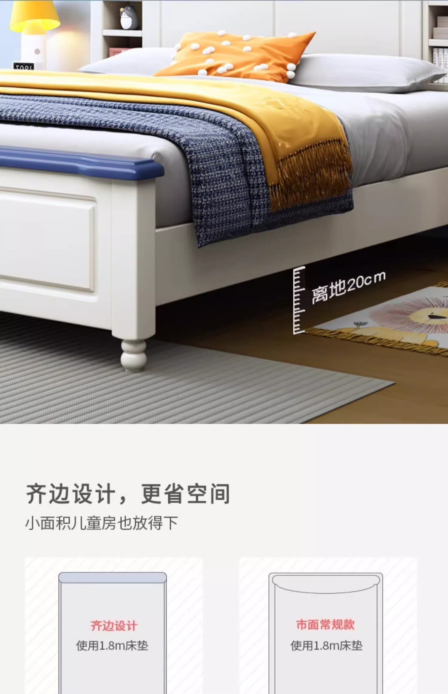 Oka Star solid wood children's bed for boys, teenagers, girls, princess bed, girl's bedroom, American modern simple children's bed, bed + 10cm spine protection, environmentally friendly brown mat 1800*2000 (frame style)
