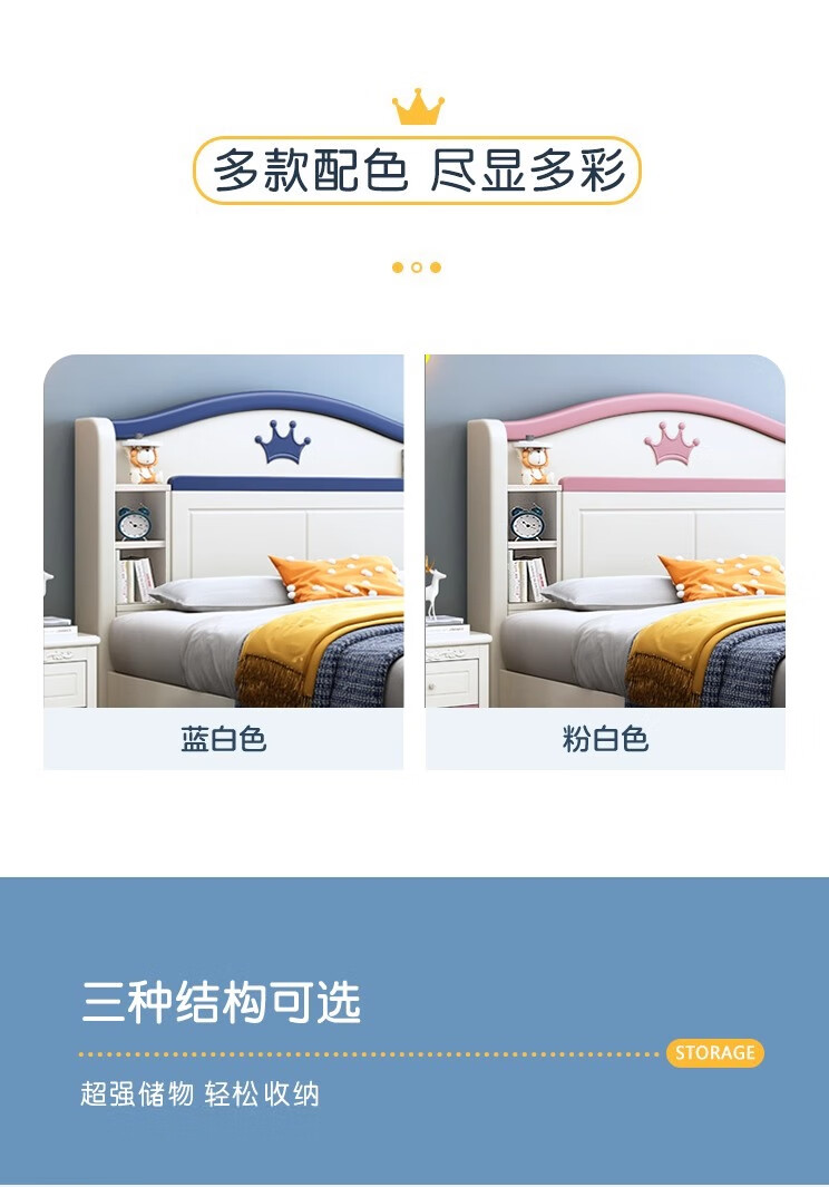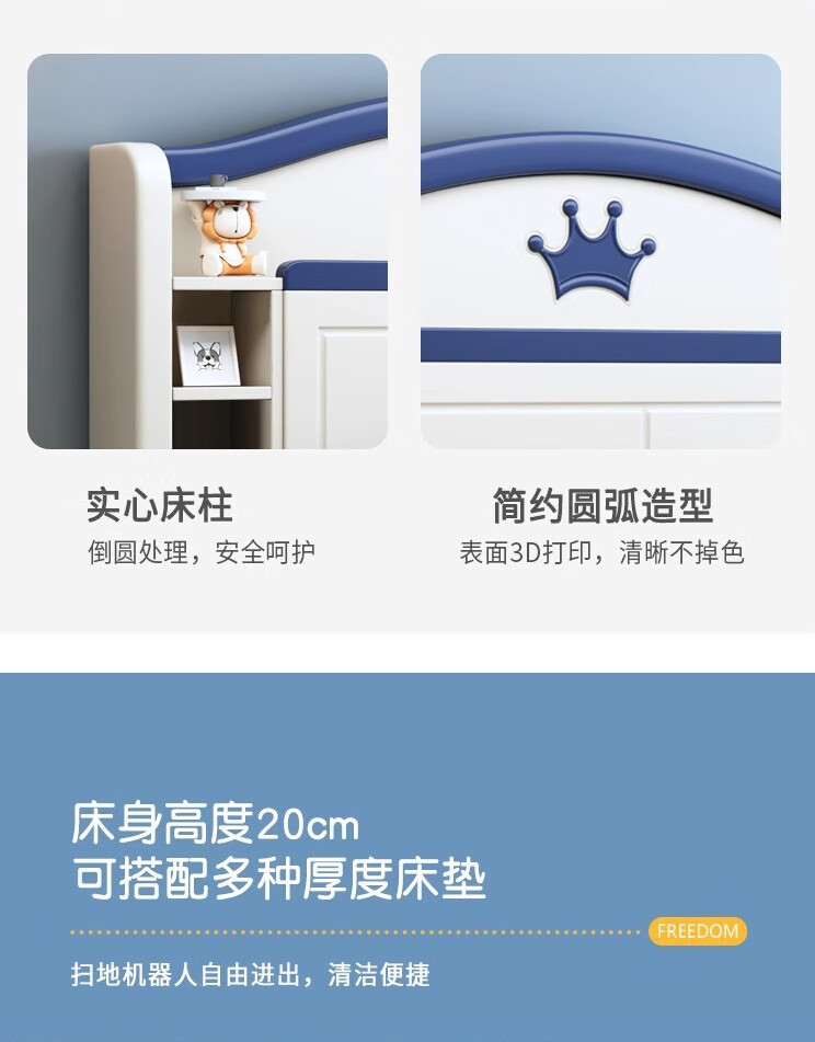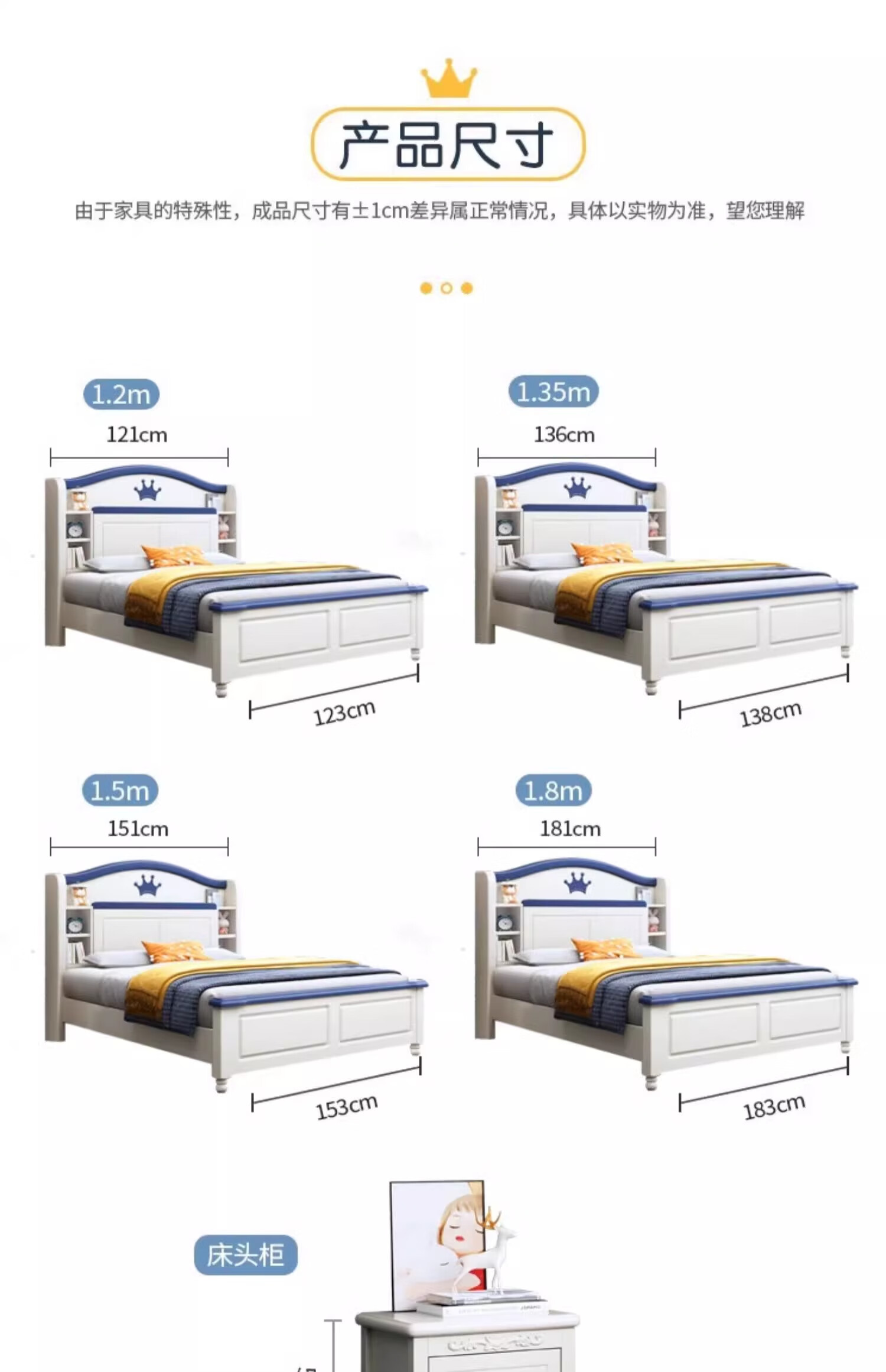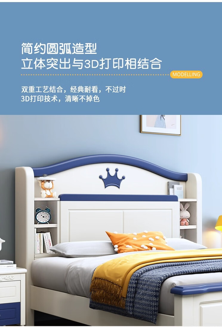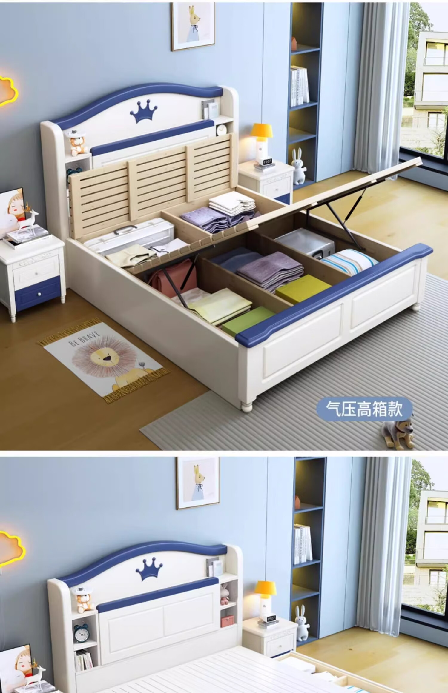 Oka Star solid wood children's bed for boys, teenagers, girls, princess bed, girl's bedroom, American modern simple children's bed, bed + 10cm spine protection, environmentally friendly brown mat 1800*2000 (frame style)