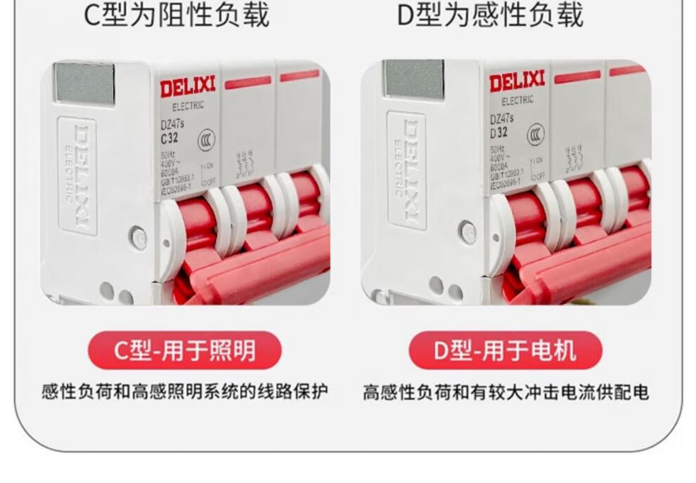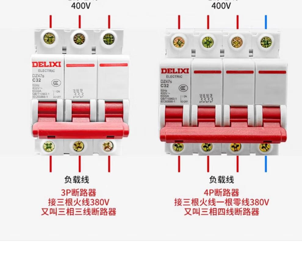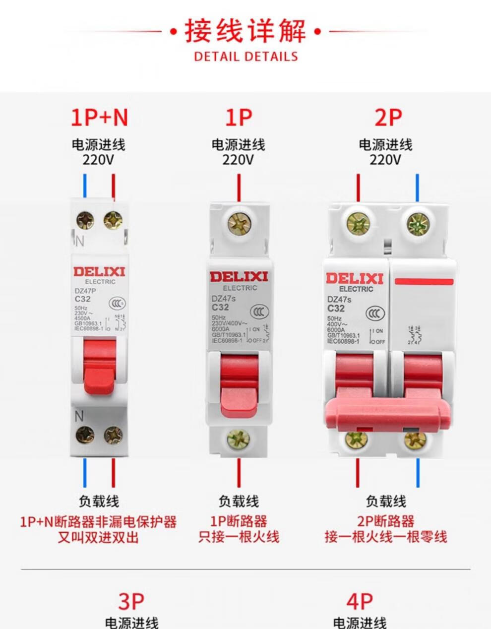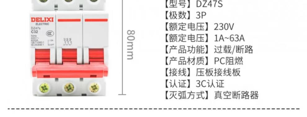 Delixi 1P air switch 2P household 32a63a three-phase 3P circuit breaker DZ47S 4P air switch 100A switch 1P+N 63A