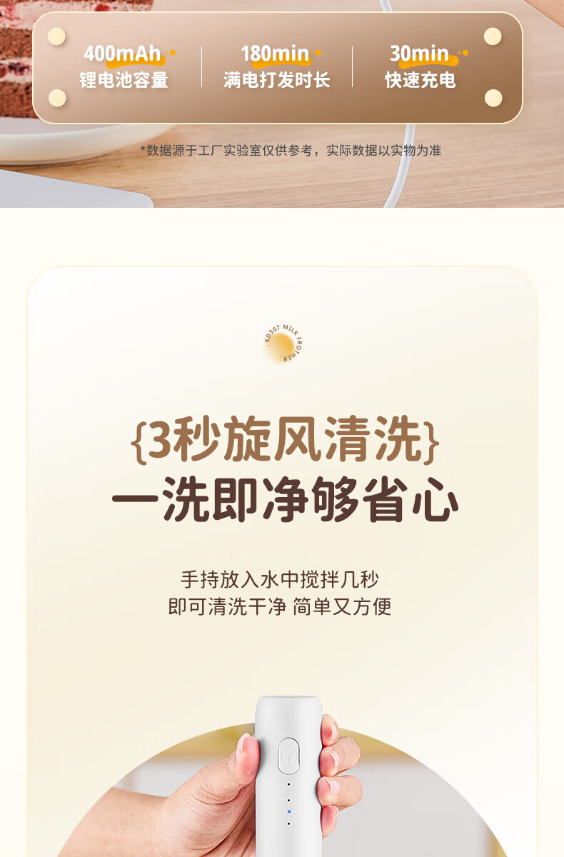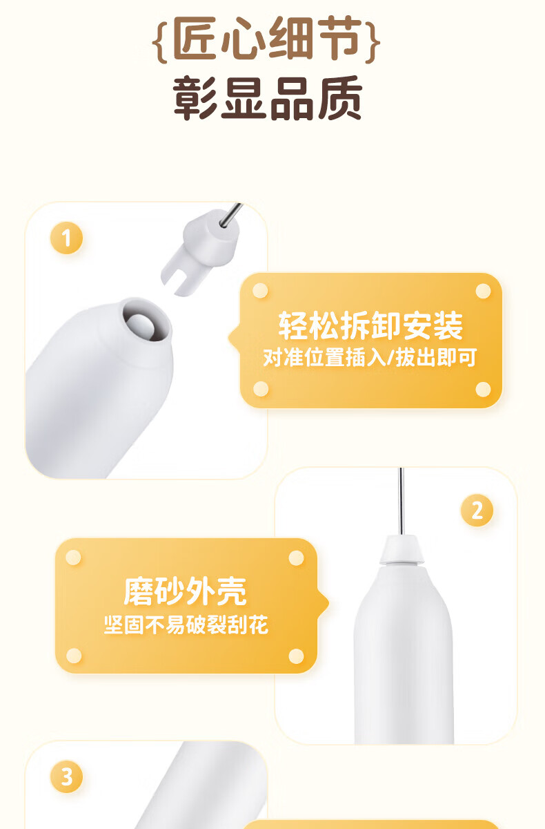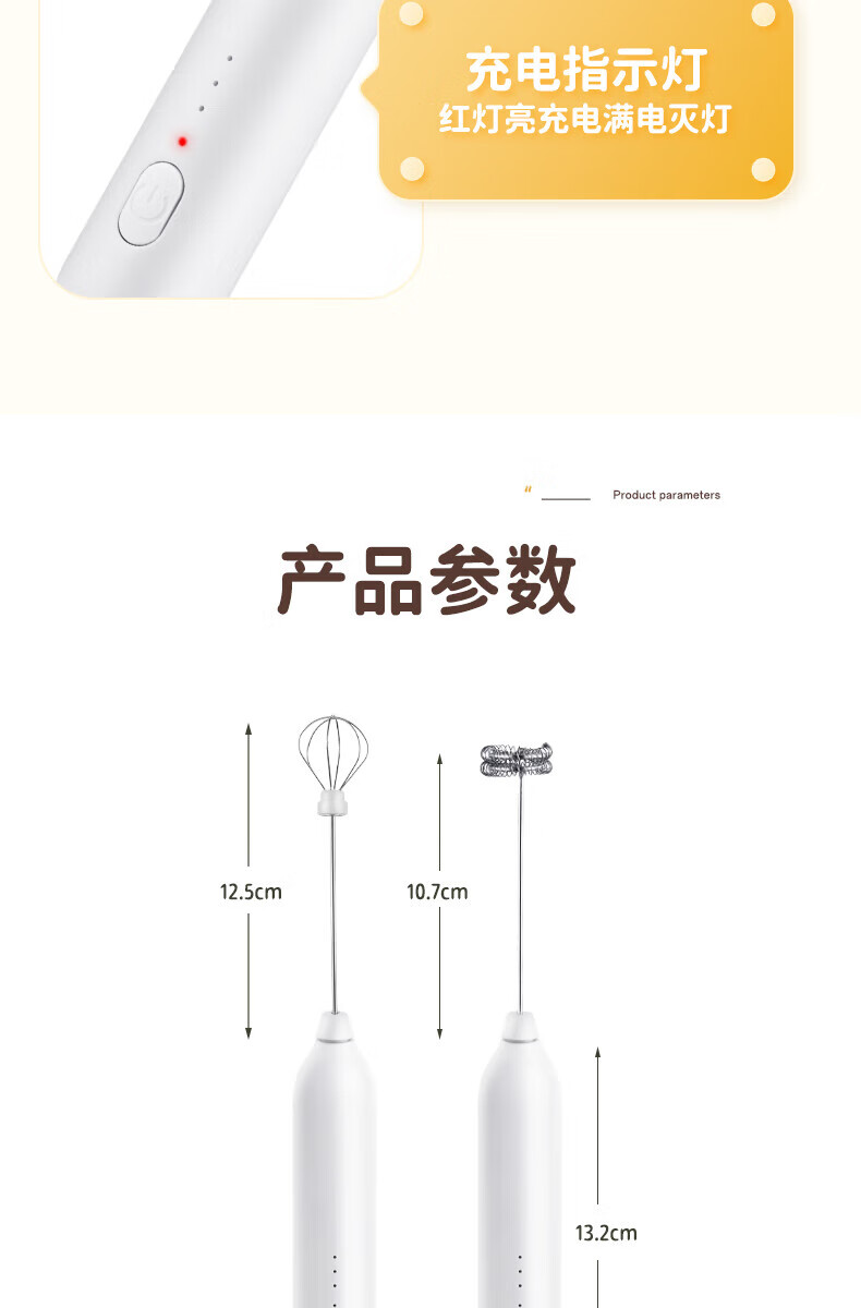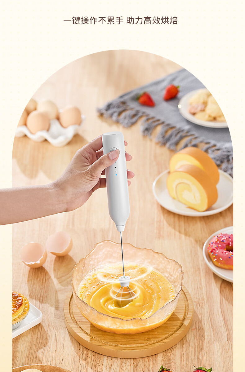 Electric milk frother, household milk frother, small egg beater, coffee frother, cream whipper, handheld mixer, milk white double spring - more energy-saving, three-speed speed adjustment