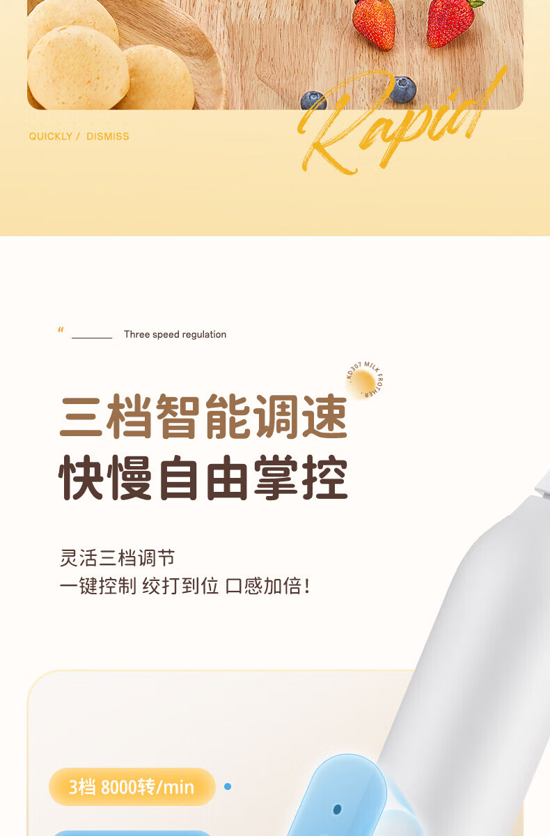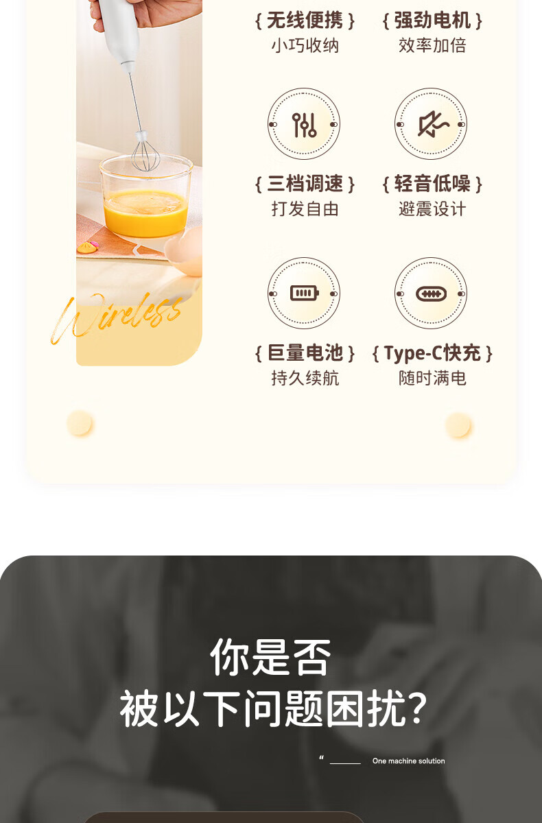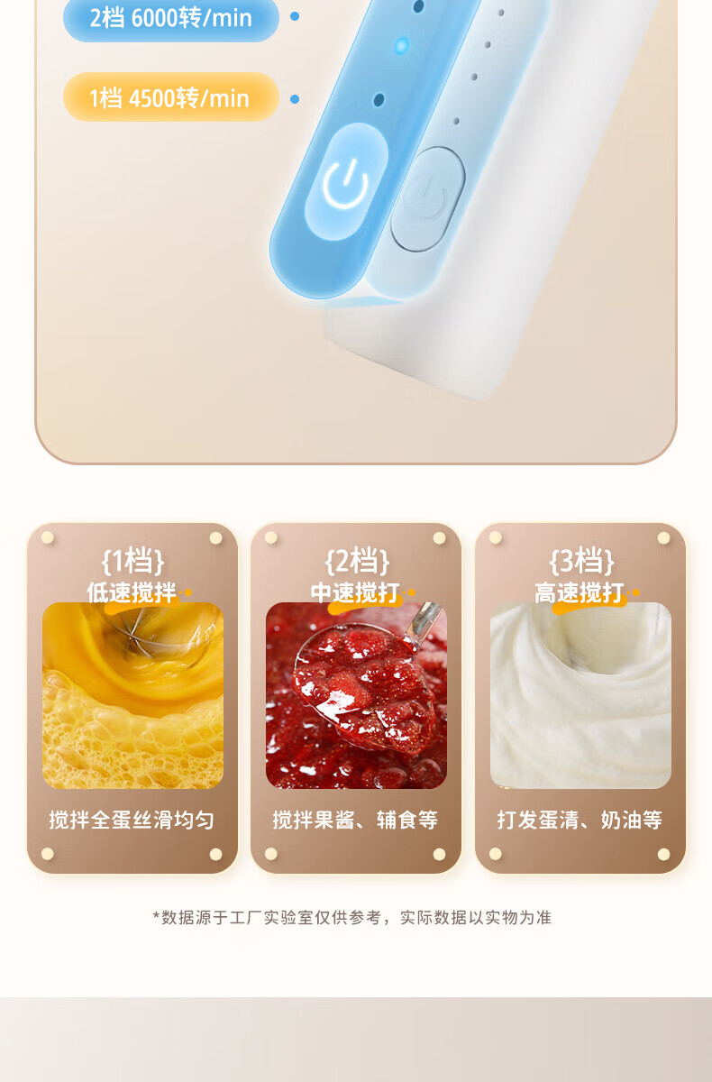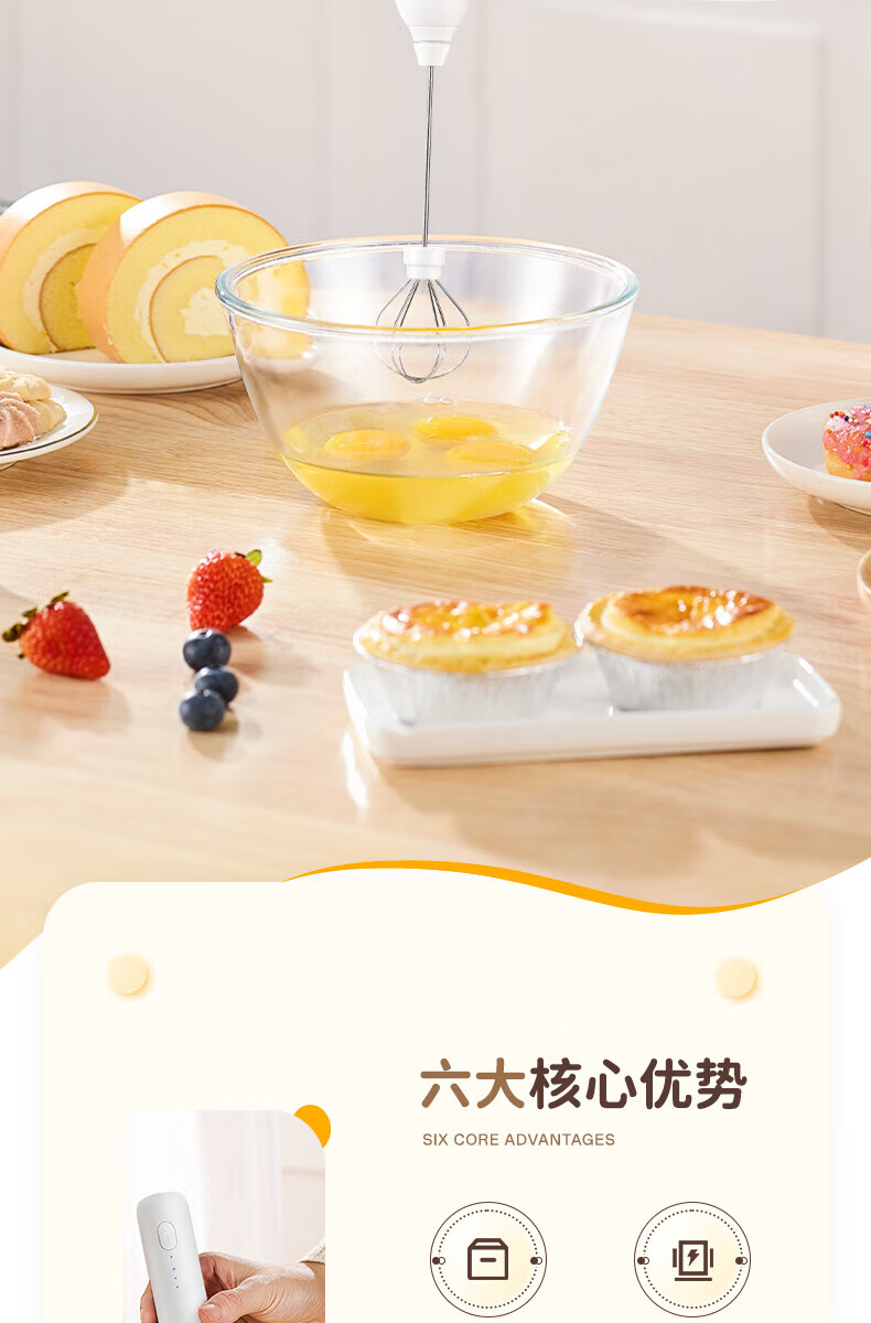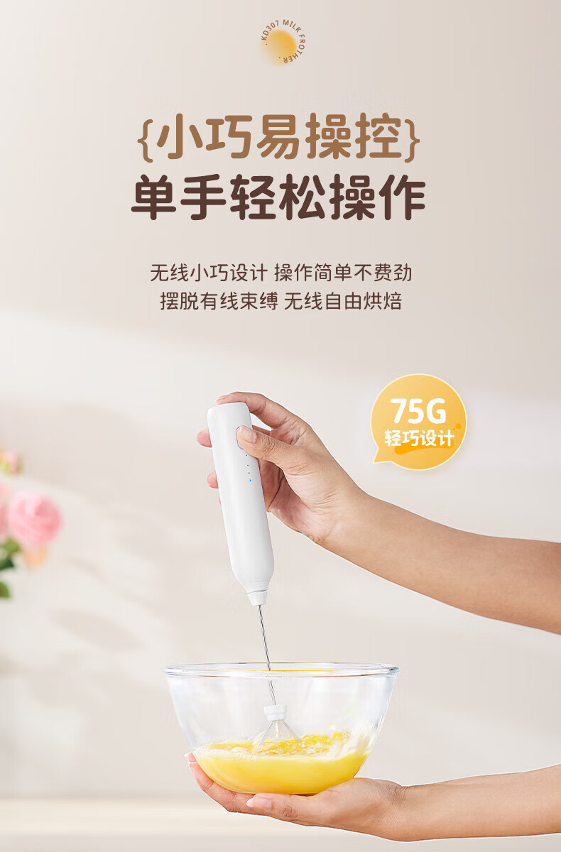 Electric milk frother, household milk frother, small egg beater, coffee frother, cream whipper, handheld mixer, milk white double spring - more energy-saving, three-speed speed adjustment