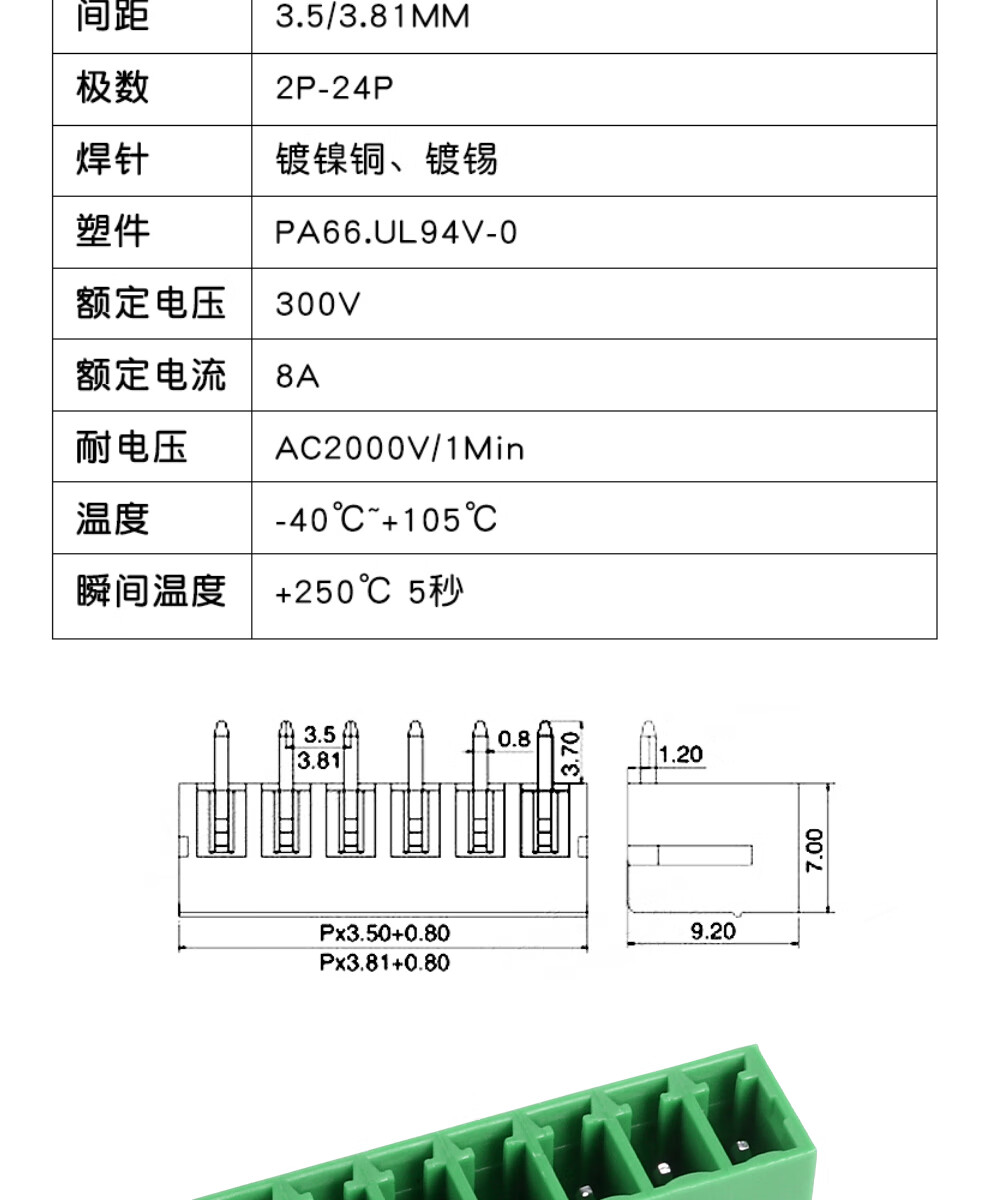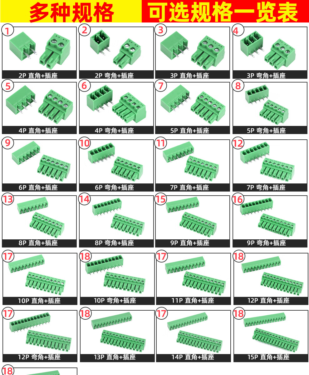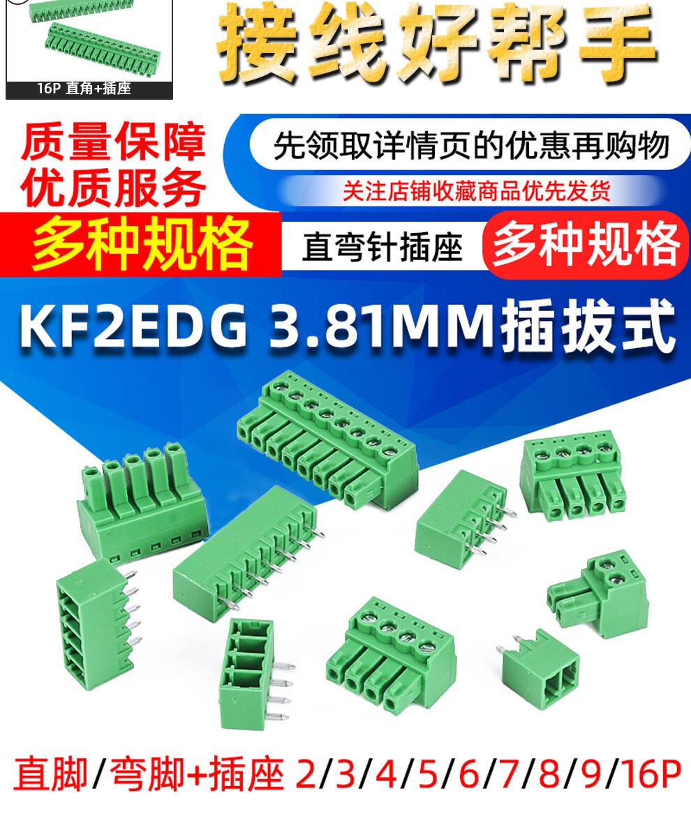 KF2EDG 3.81MM plug-in pcb terminal block bent straight pin + socket 2/3/4/5/6/7/8/9/16p 2P right angle + socket-5 sets no specifications