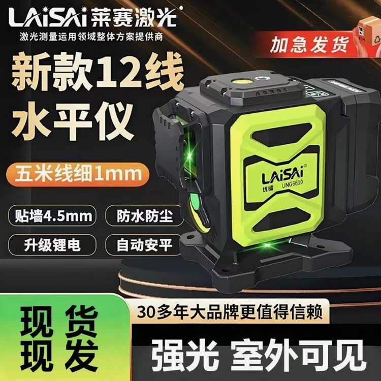 Laser Laser's new Laser Laser Level 12-line high-precision strong light thin line 6610/6600 green light red light indoor and outdoor Youlei 12-line green light floor leveler (lower level) standard