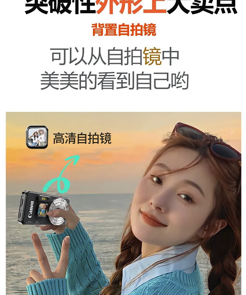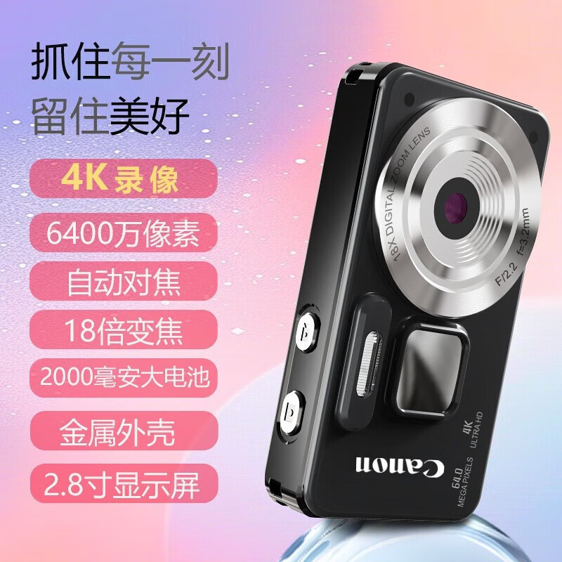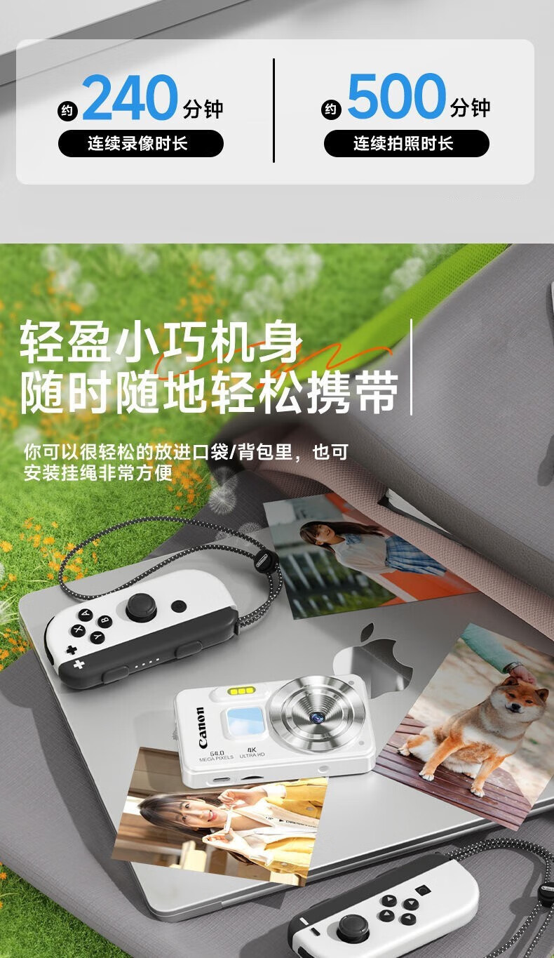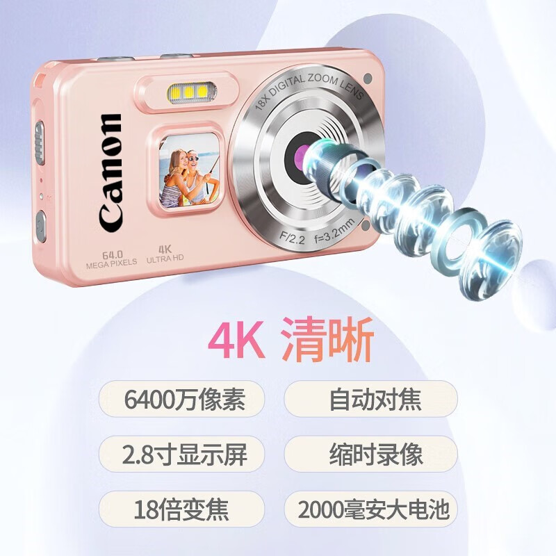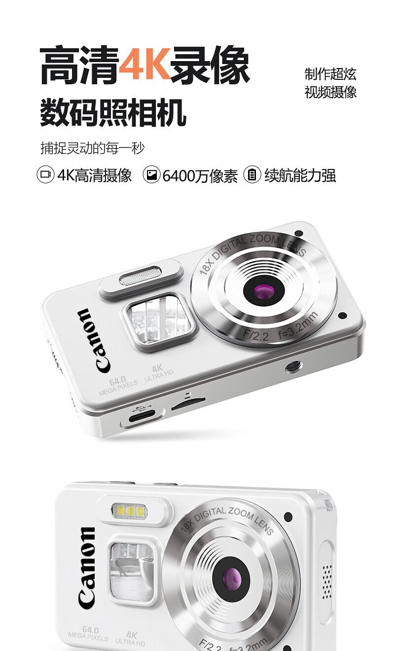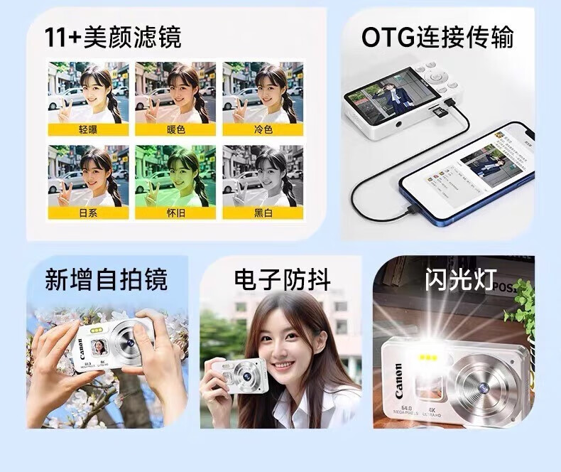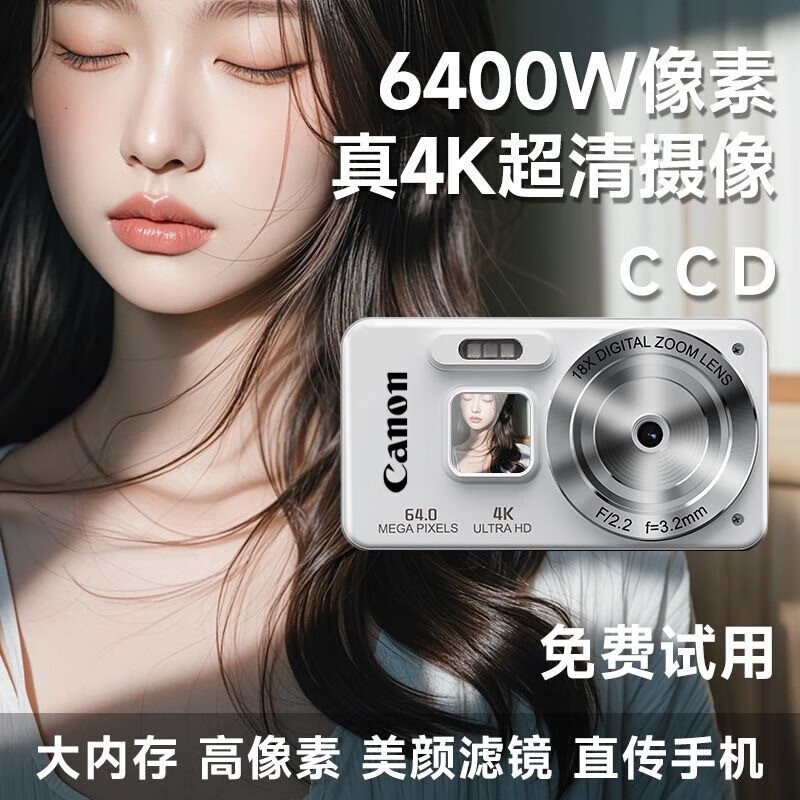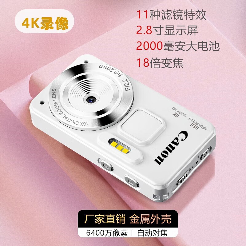 Canon 4K high-definition digital camera CCD female students and children's campus selfie entry-level travel filter retro ivory white card-free (bring your own memory card) aluminum alloy shell + 2000 mAh battery + can be transferred to mobile phones + can take selfies