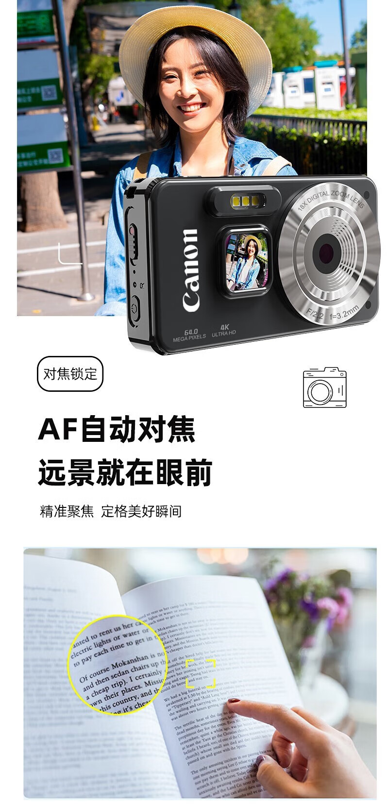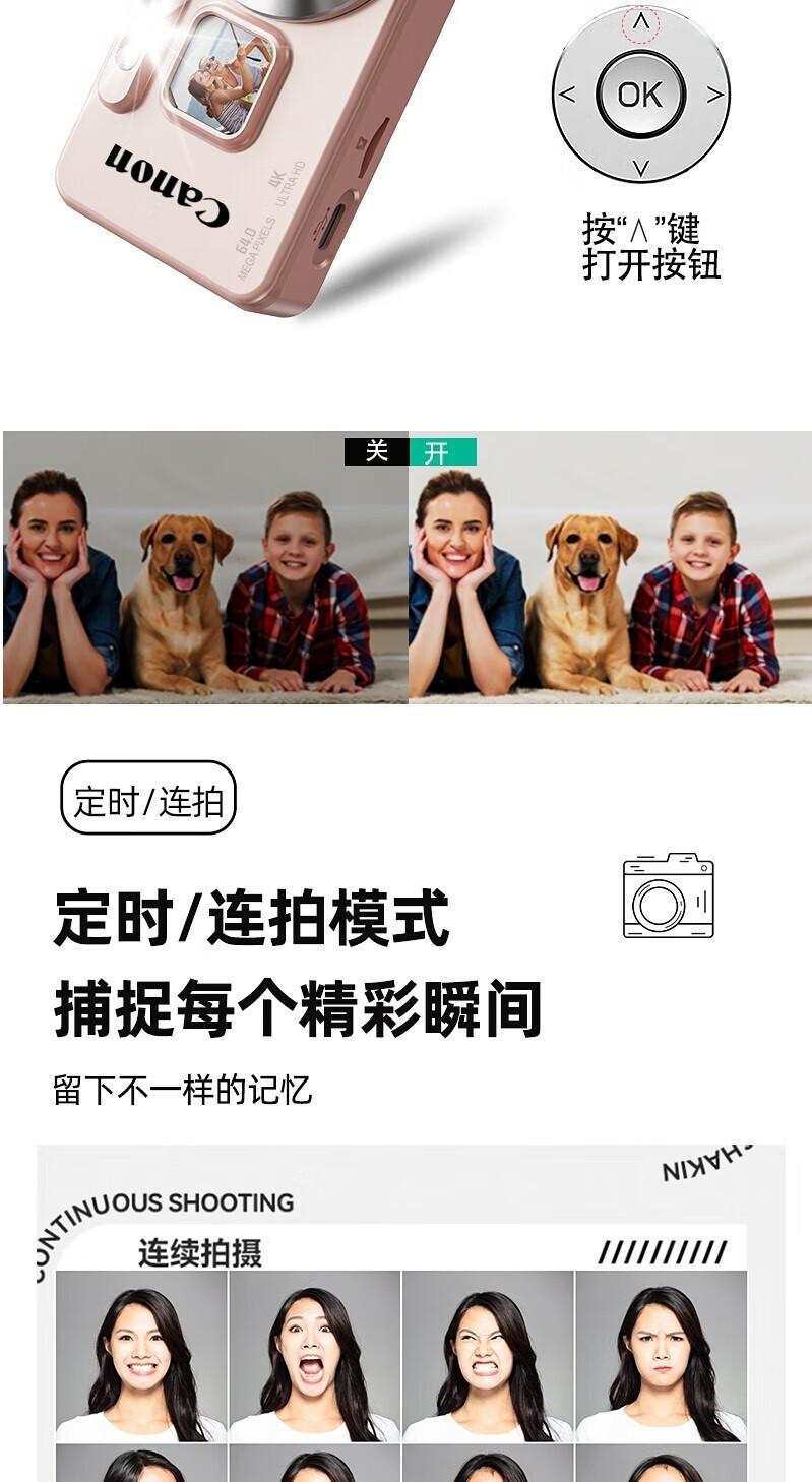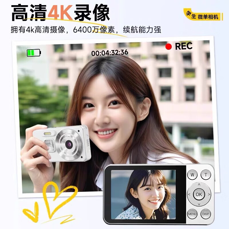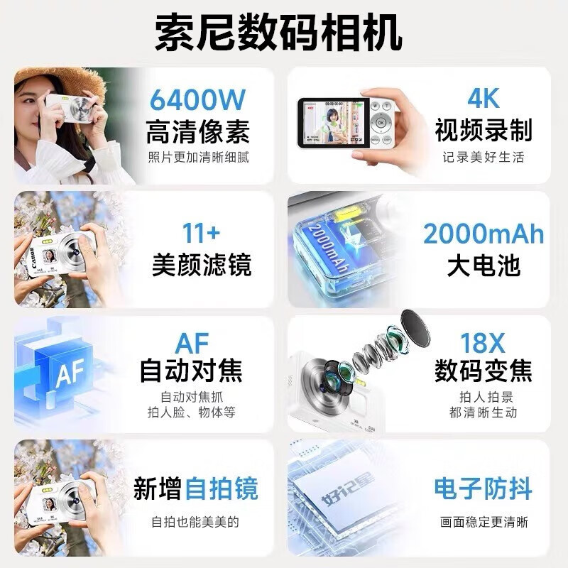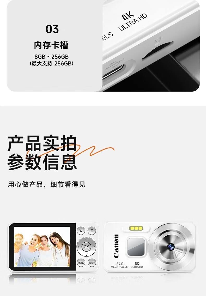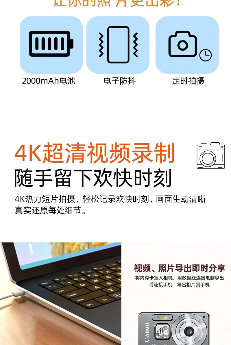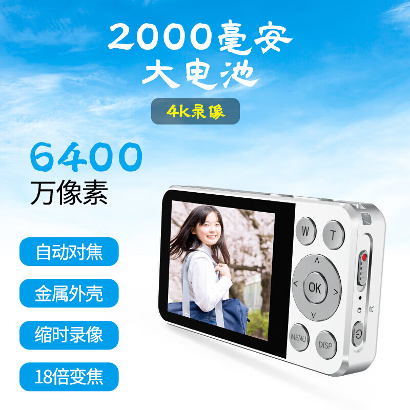 Canon 4K high-definition digital camera CCD female students and children's campus selfie entry-level travel filter retro ivory white card-free (bring your own memory card) aluminum alloy shell + 2000 mAh battery + can be transferred to mobile phones + can take selfies