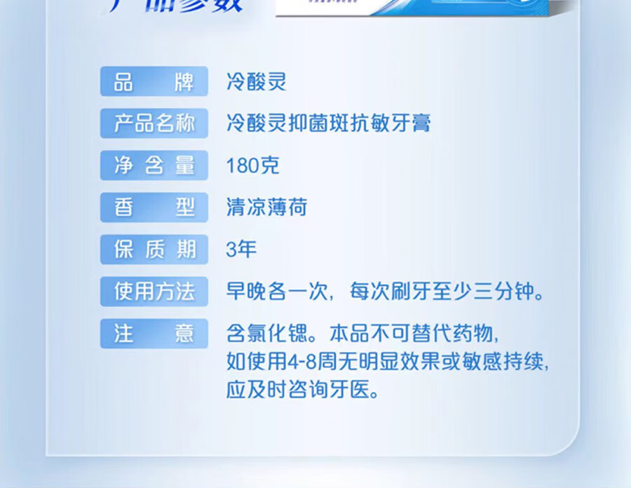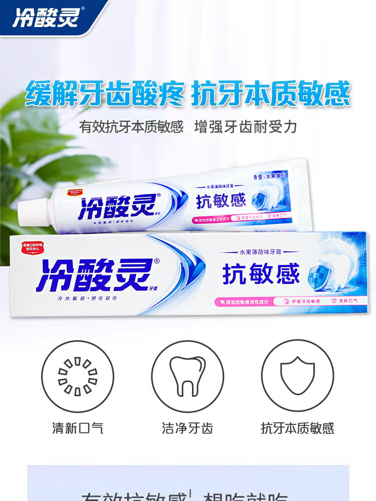 Lengsuanling anti-plaque and anti-sensitivity toothpaste, anti-plaque, fresh breath, gum care, oral health, anti-bacterial and anti-allergic, 180g*2 pieces