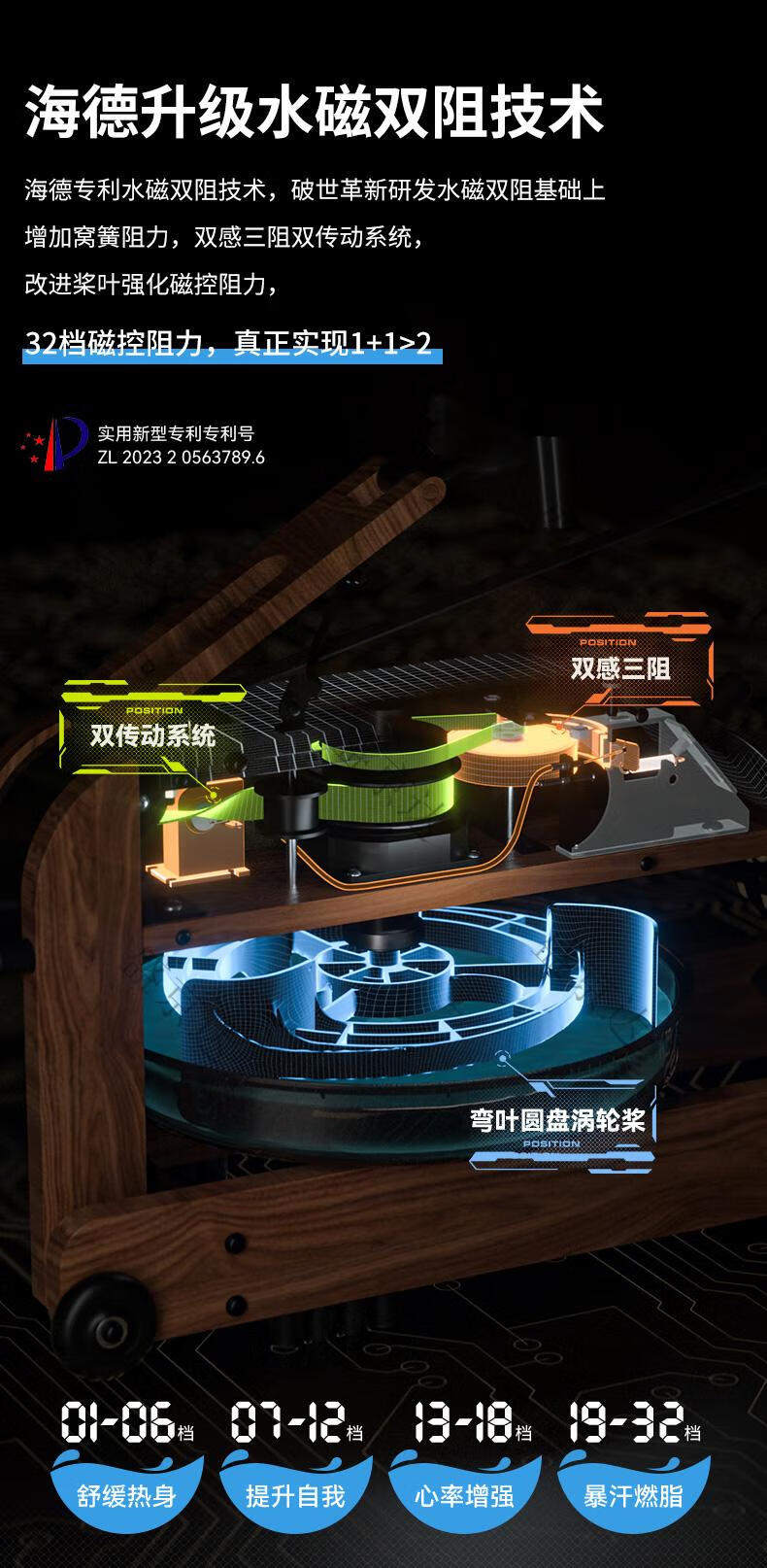 Hyde rowing machine home fitness trainer foldable paddling water smart hydromagnetic dual resistance equipment boat slip WR385S (imported red oak) flagship model