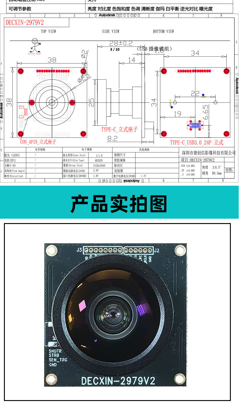 20-megapixel USB3.0 camera industrial camera module AR2020 chip supports triggering and taking pictures without driver 95 degrees - no distortion
