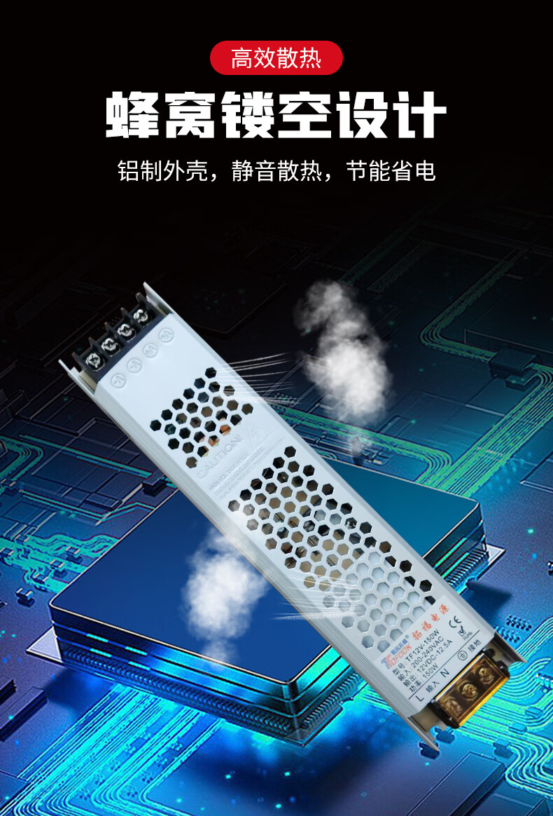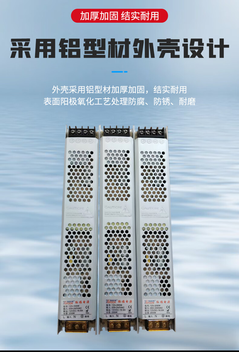 Tuofu 220 to 12v24v100w 400 transformer card cloth light box long ultra-thin LED light box switching power supply 12v200w16.6A size 307*53*22
