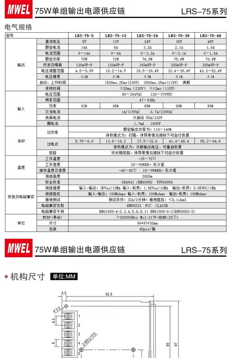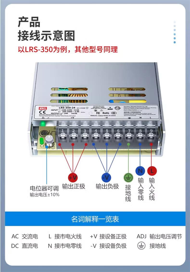Mwel Mingwei 3C certified LRS switching power supply box 220 to 12V24V48 volt adjustable DC adapter transformer LRS1005V20A SF Express