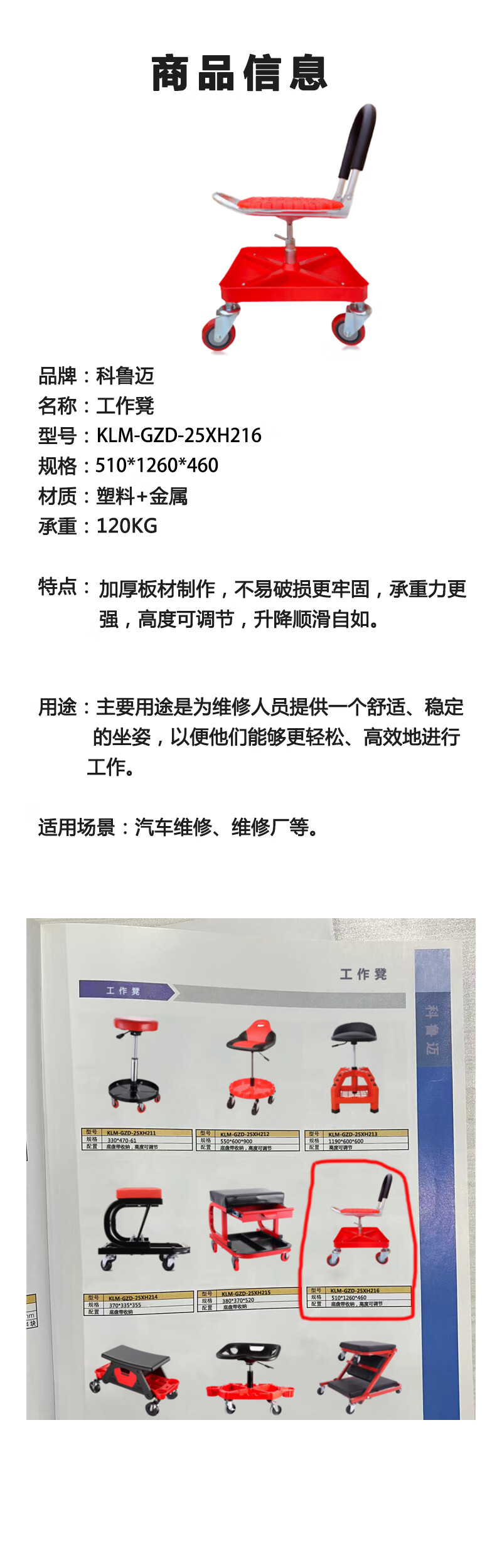 Kolumai work stool KLM-GZD-25XH216 510*1260*460 unit handle