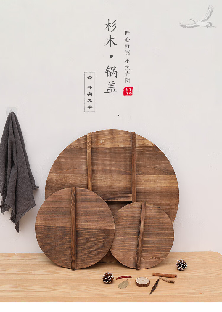 Youmingrui old-fashioned thickened fir pot lid wok large pot lid household wooden rural large pot lid round water tank solid wood pot lid 44cm