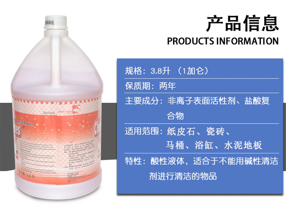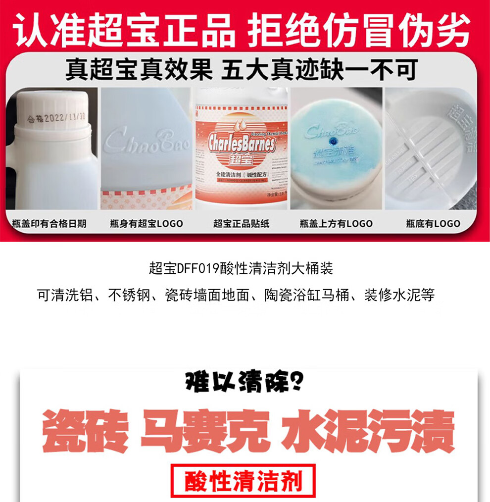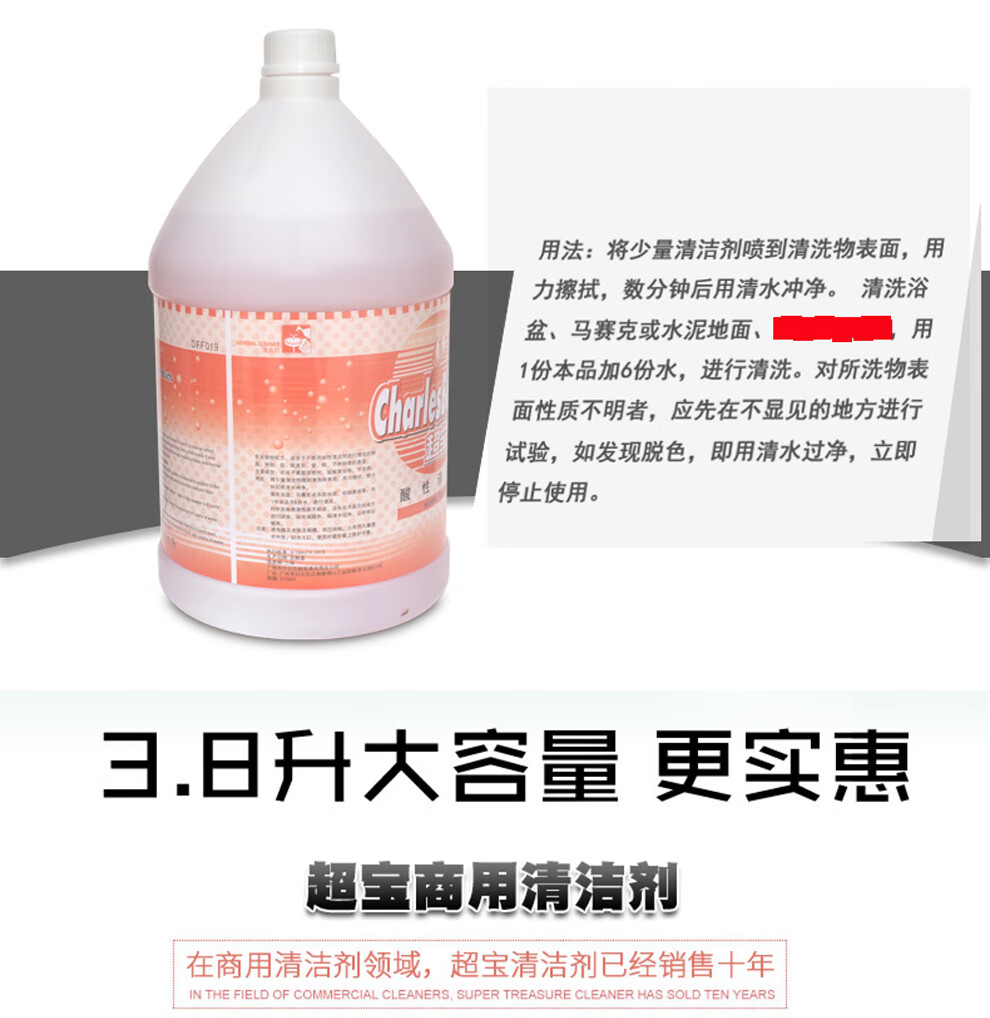Chaobao Clean Acidic Cleaner Powerful Rust Remover Toilet Cleaner Tile Marble Floor Decoration Cement Stains Decontamination Detergent 3.8L Large Bottle DFF019 1 Bottle Chaobao Acidic Cleaner