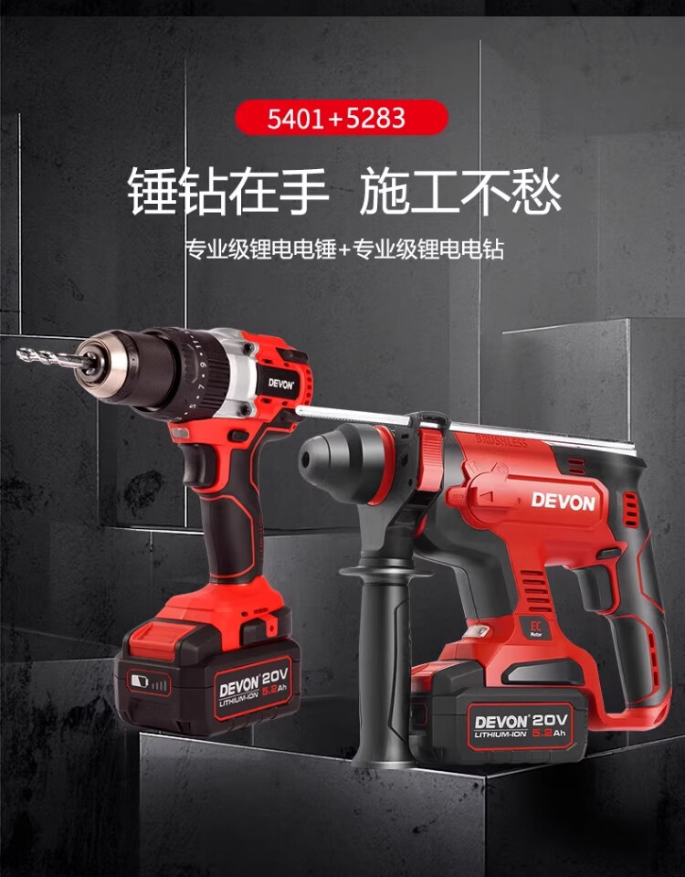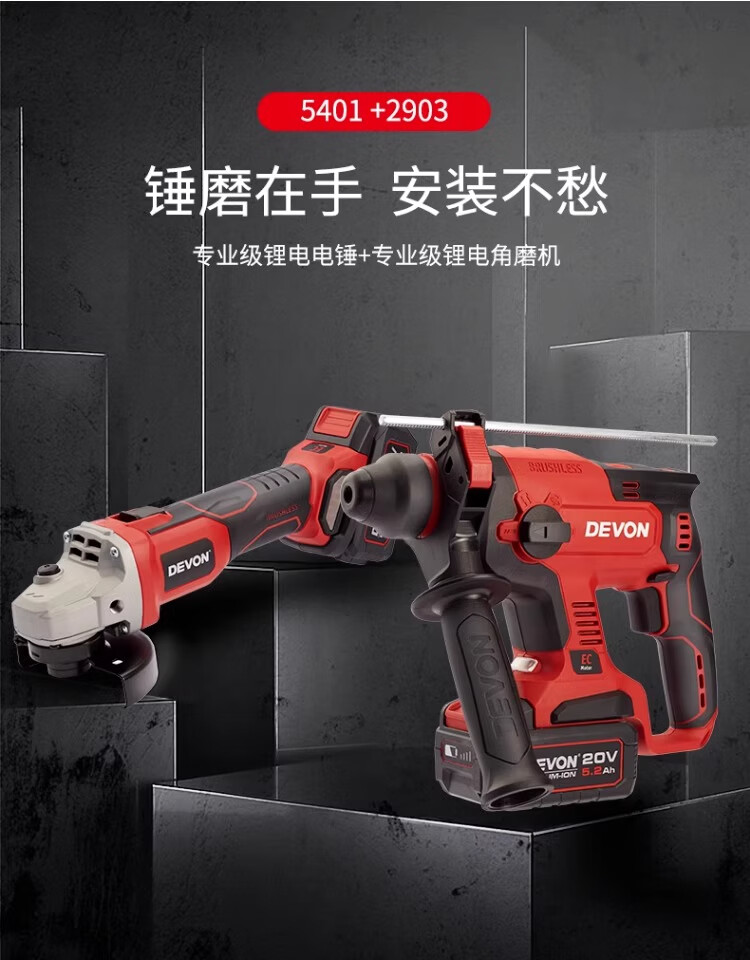 Dayou 5401 all-in-one rechargeable electric hammer electric pick lithium impact drill concrete household brushless power tool 5401 electric hammer + 2908 angle grinder dual electric flash charge 5.0