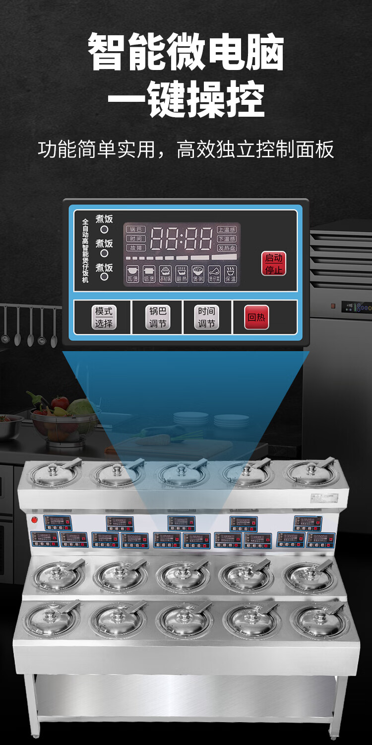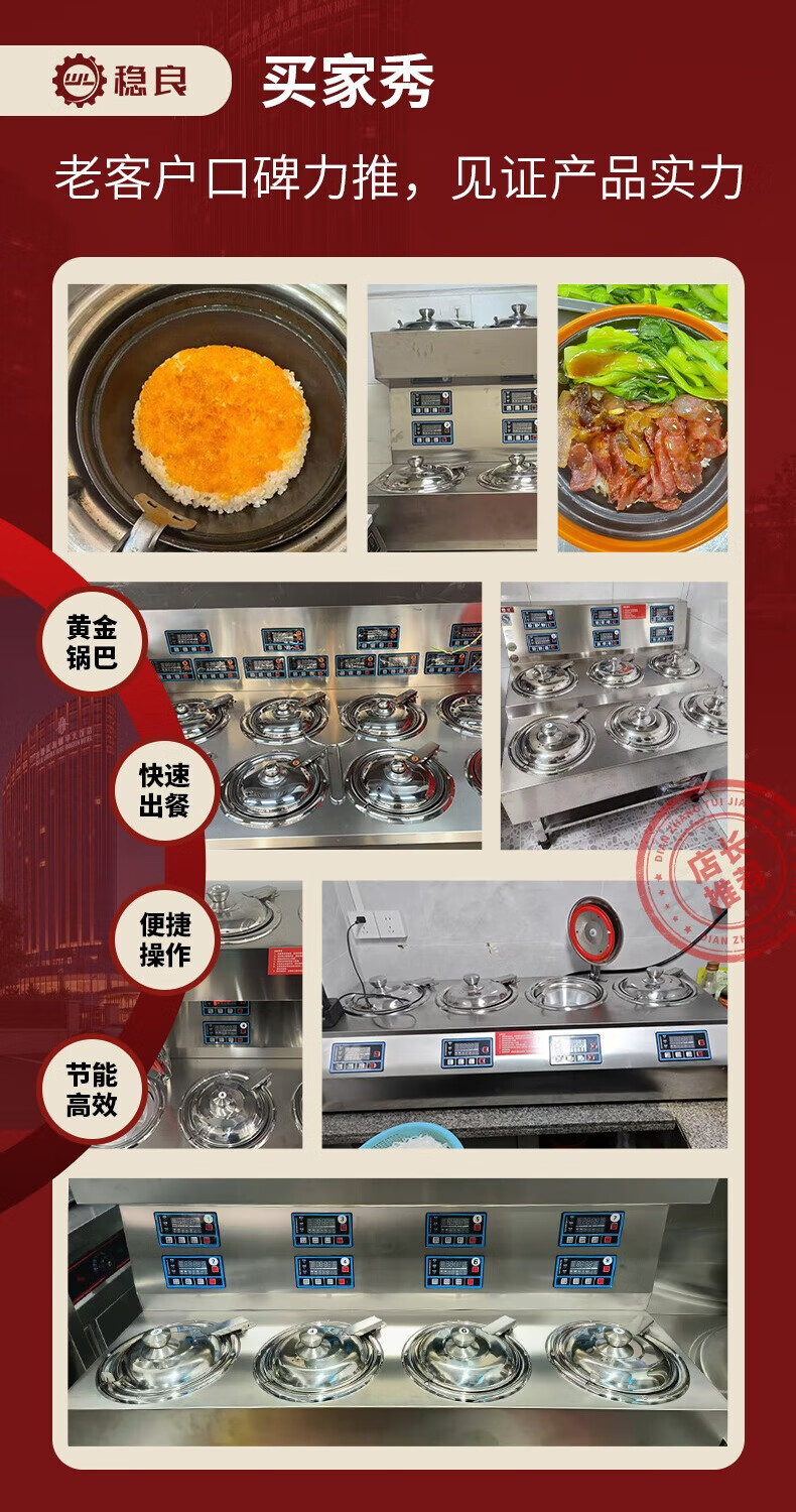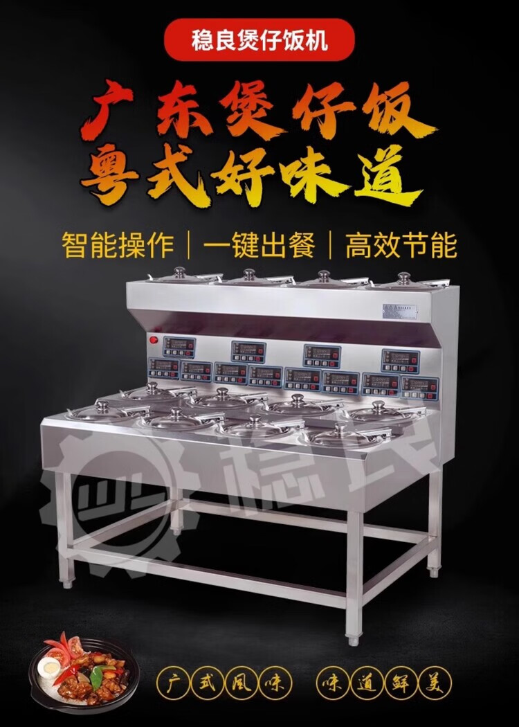 Wenliang Cantonese-style claypot rice cooker, commercial fully automatic electric claypot, high-power multi-head tinfoil claypot, smart golden pot clay pot, tinfoil clay pot, take-out casserole cooker, business recommendation - 8-head single-layer claypot cooker, 40 cookers per hour