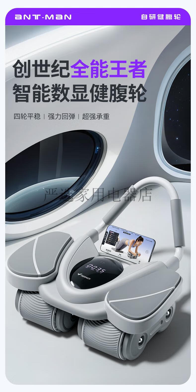 Merach (MERACH) four-wheel abdominal wheel 2024 new automatic rebound slimming artifact abdominal muscle wheel home sports equipment upgraded four-wheel four elbow support-abdominal wheel special pad combination abdominal wheel/black + fitness
