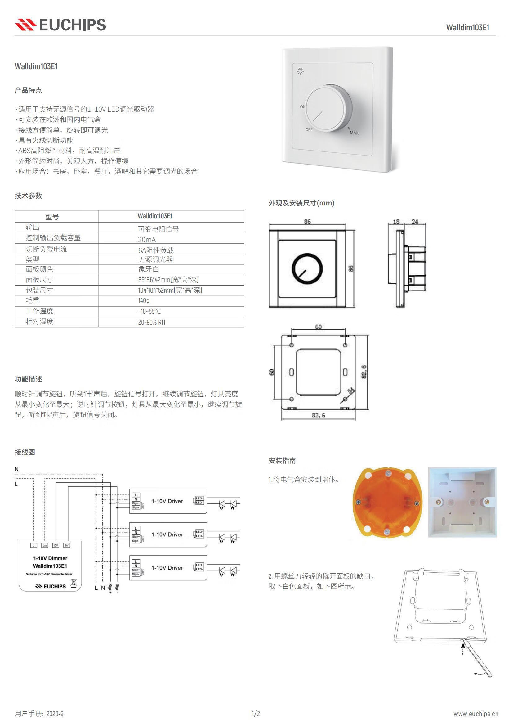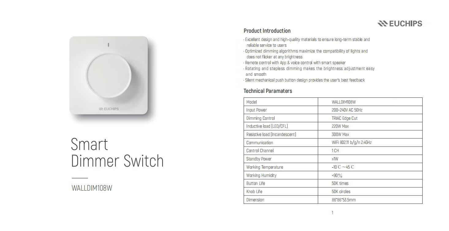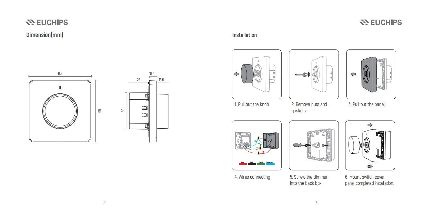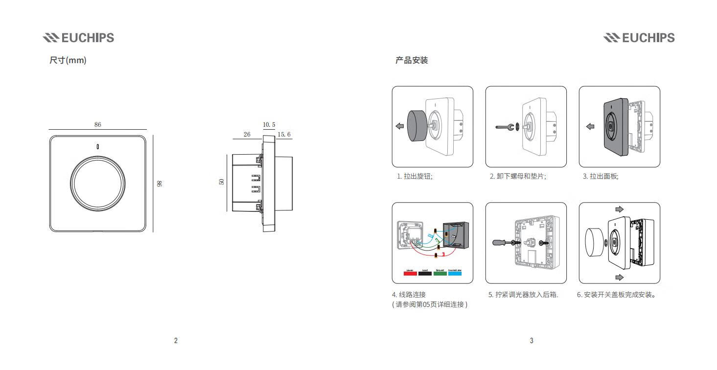 EUCHIPS thyristor dimmer switch 0/1-10V knob dimmer type 86 adjustment control panel thyristor knob dimmer model 108W rear cut