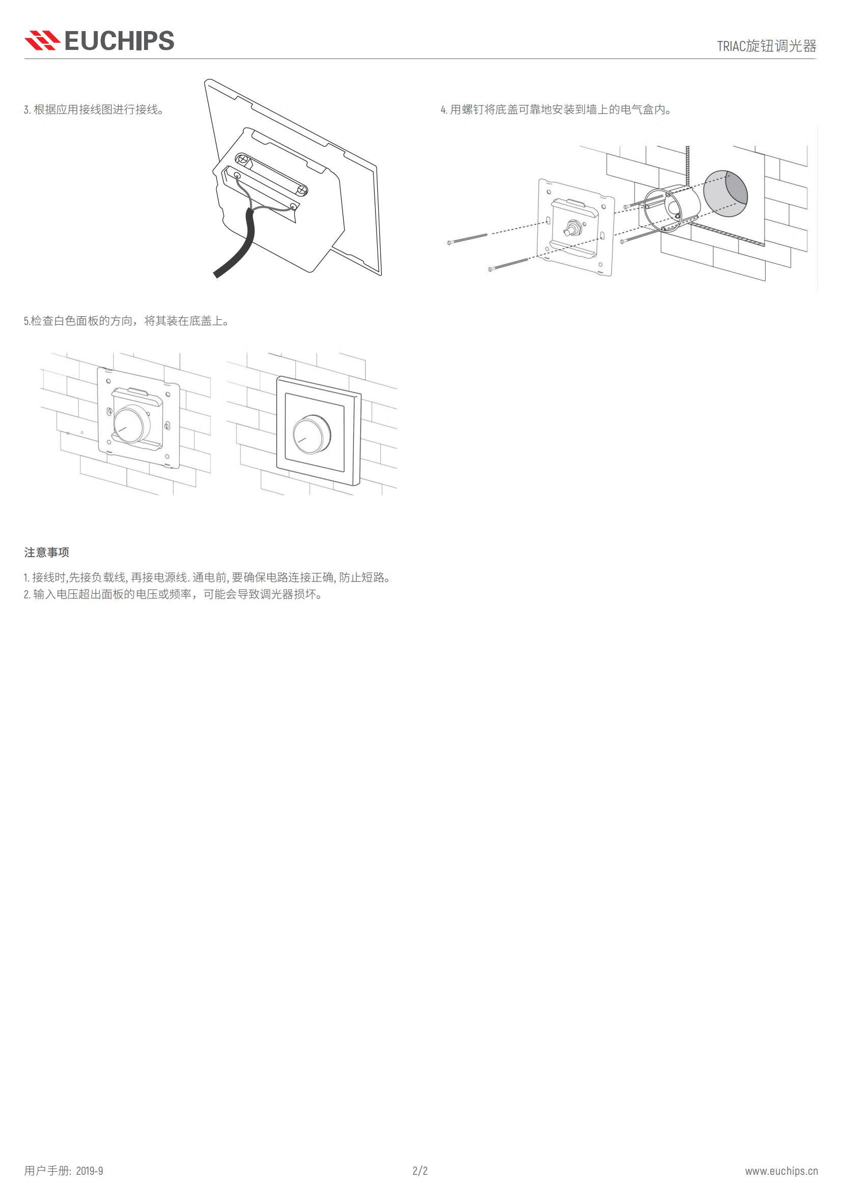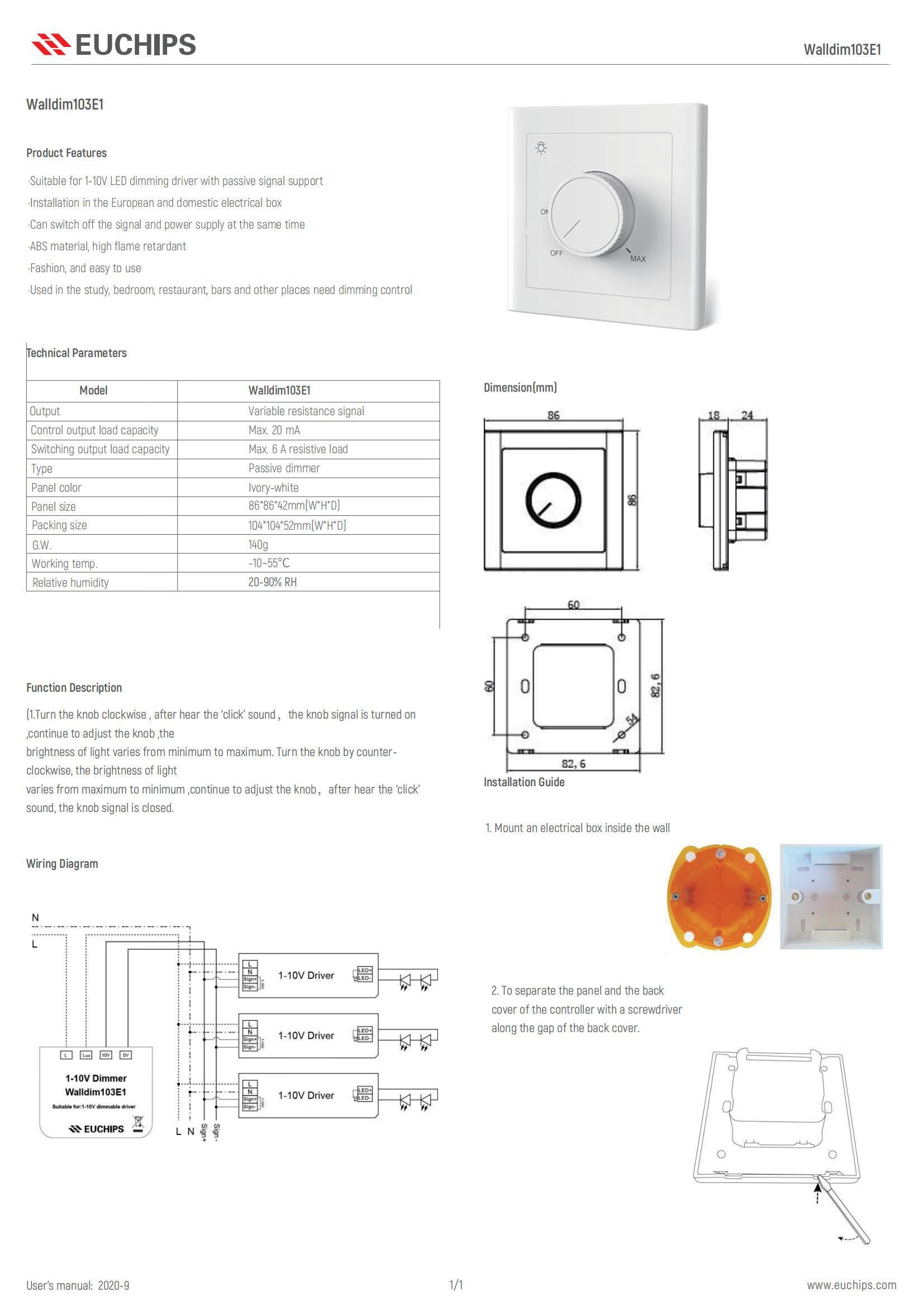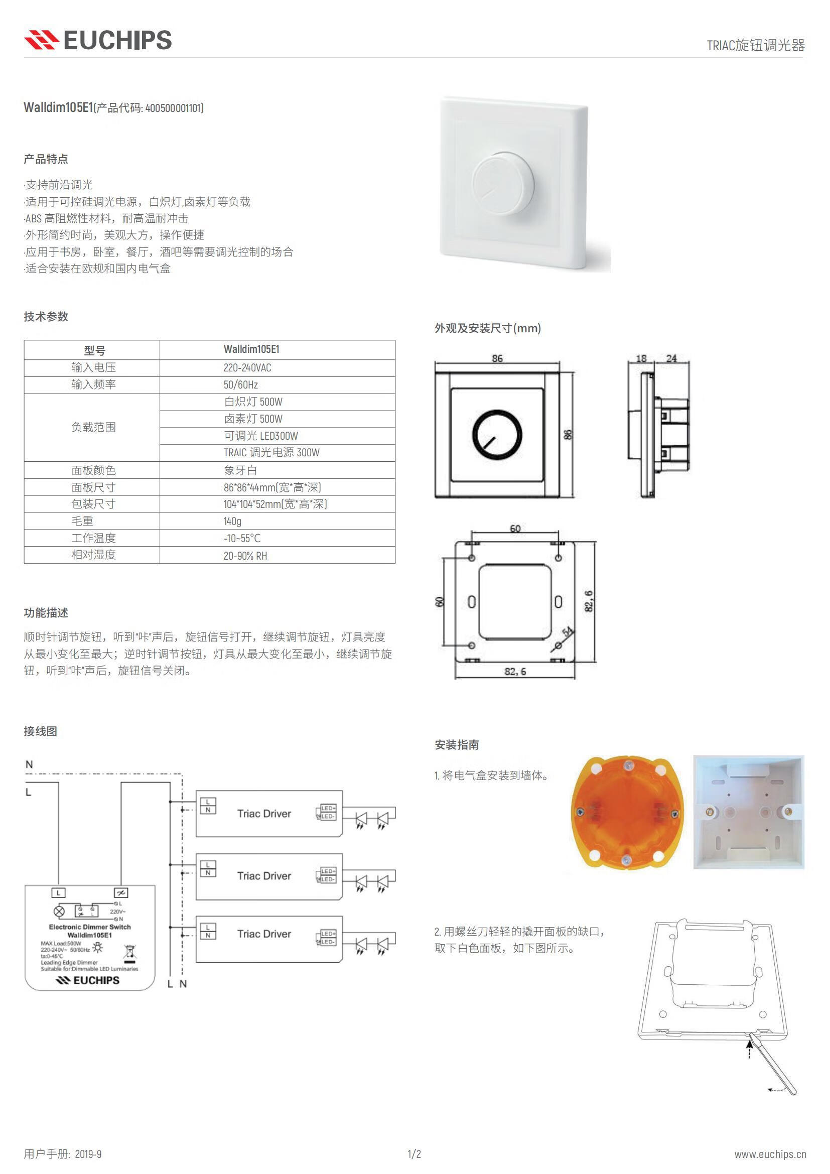 EUCHIPS thyristor dimmer switch 0/1-10V knob dimmer type 86 adjustment control panel thyristor knob dimmer model 108W rear cut