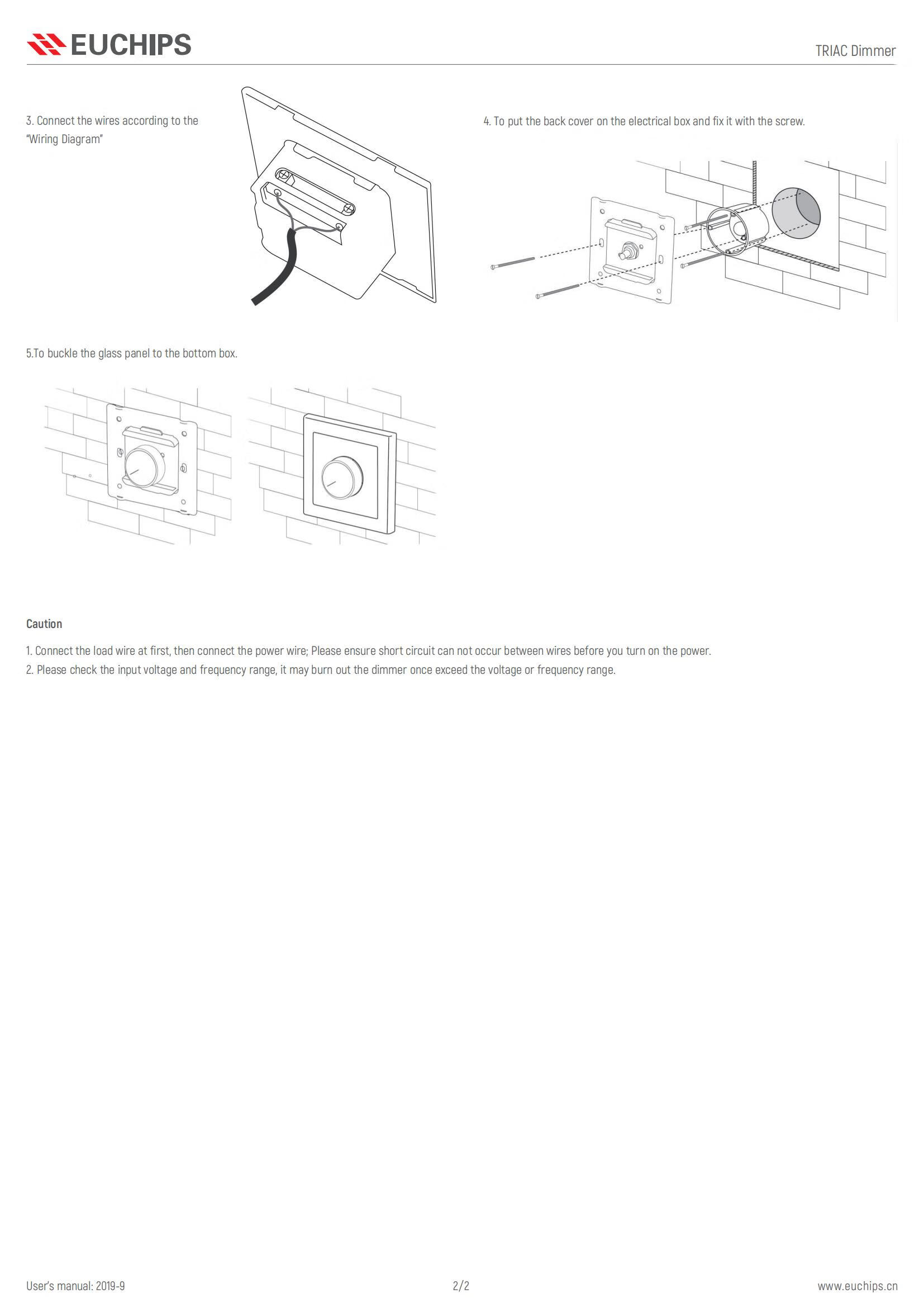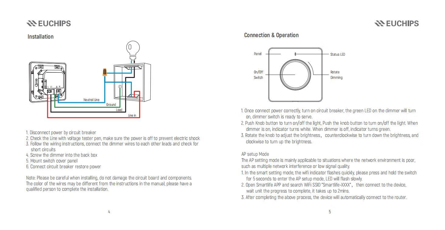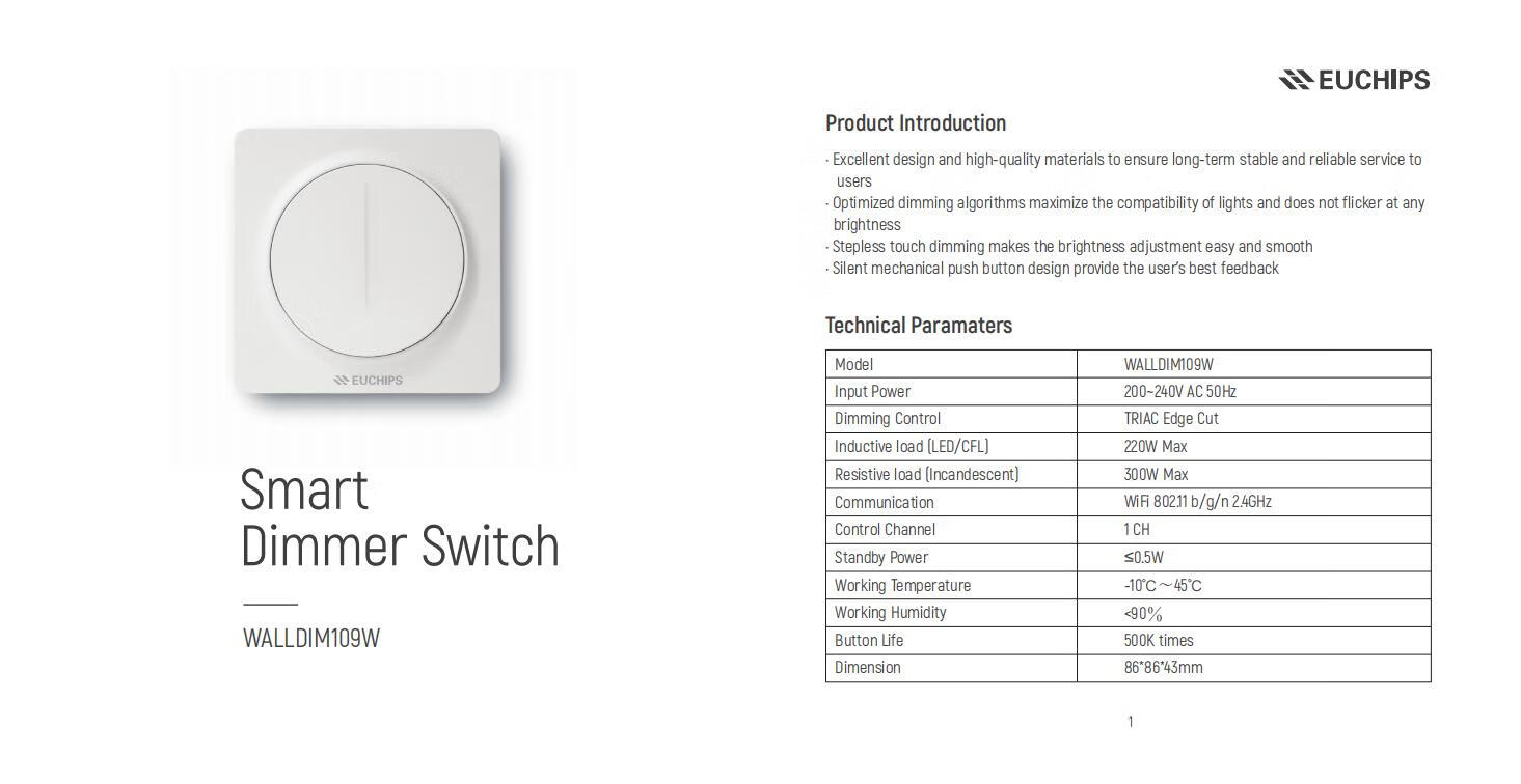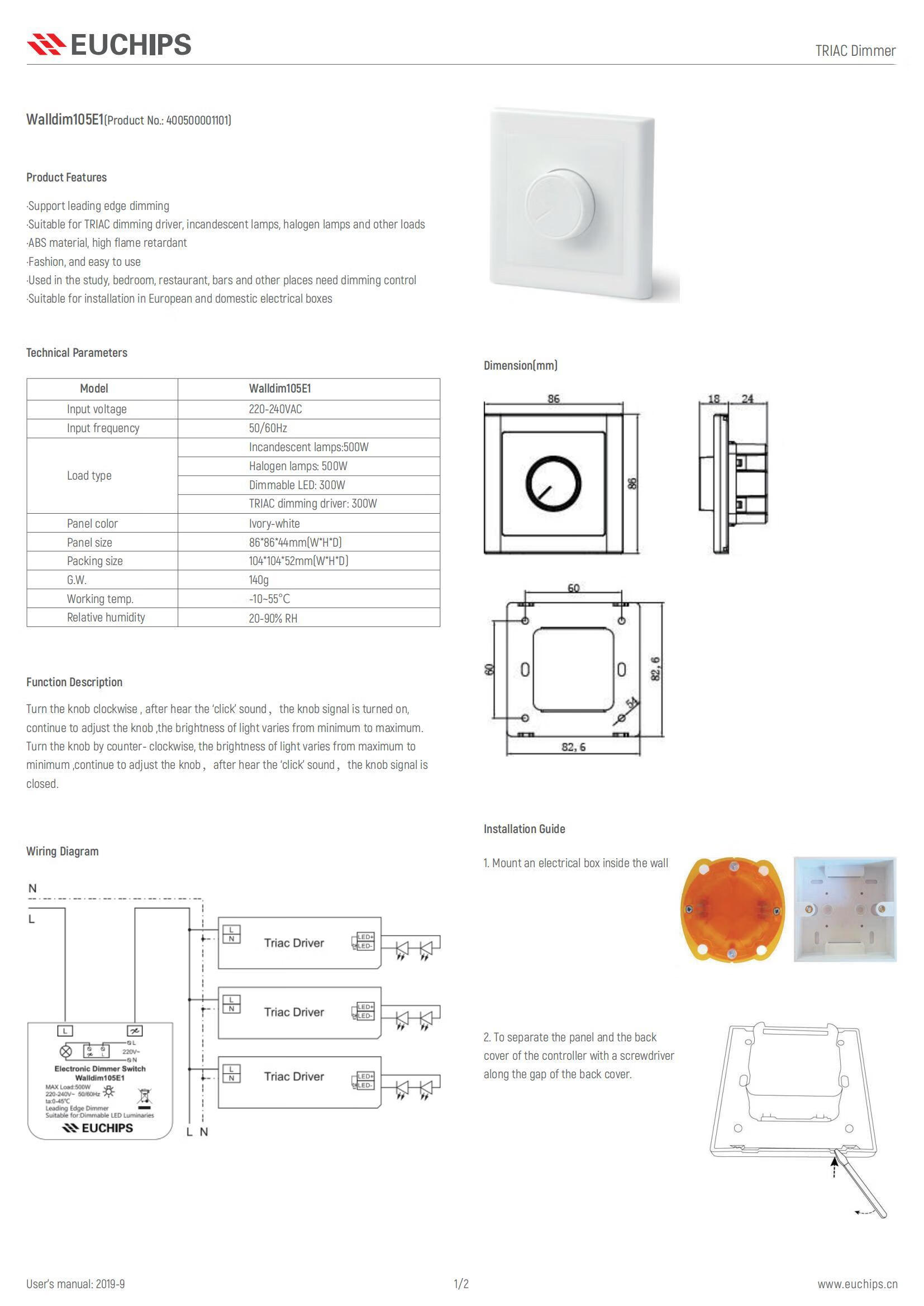 EUCHIPS thyristor dimmer switch 0/1-10V knob dimmer type 86 adjustment control panel thyristor knob dimmer model 108W rear cut