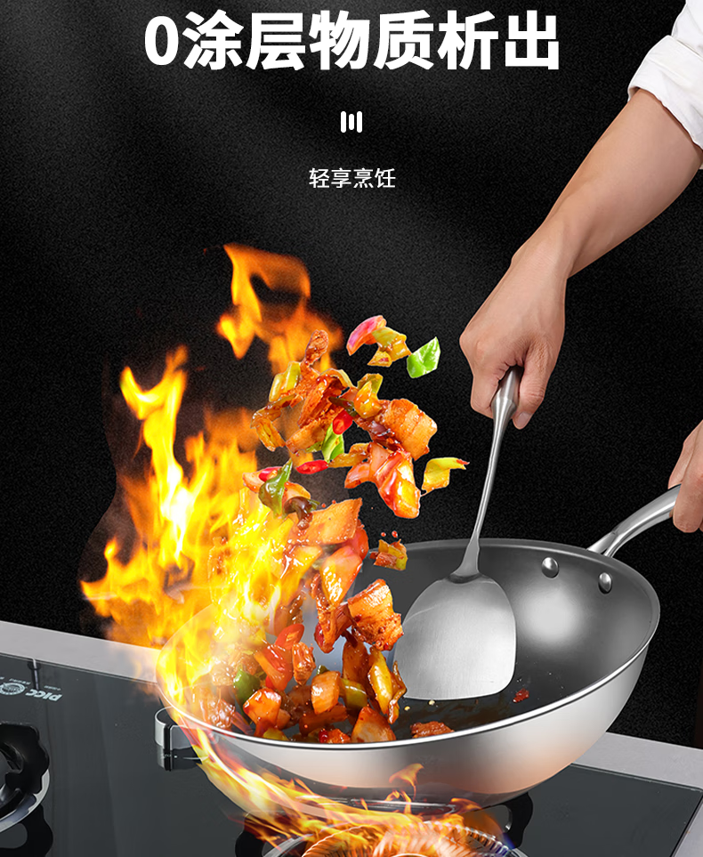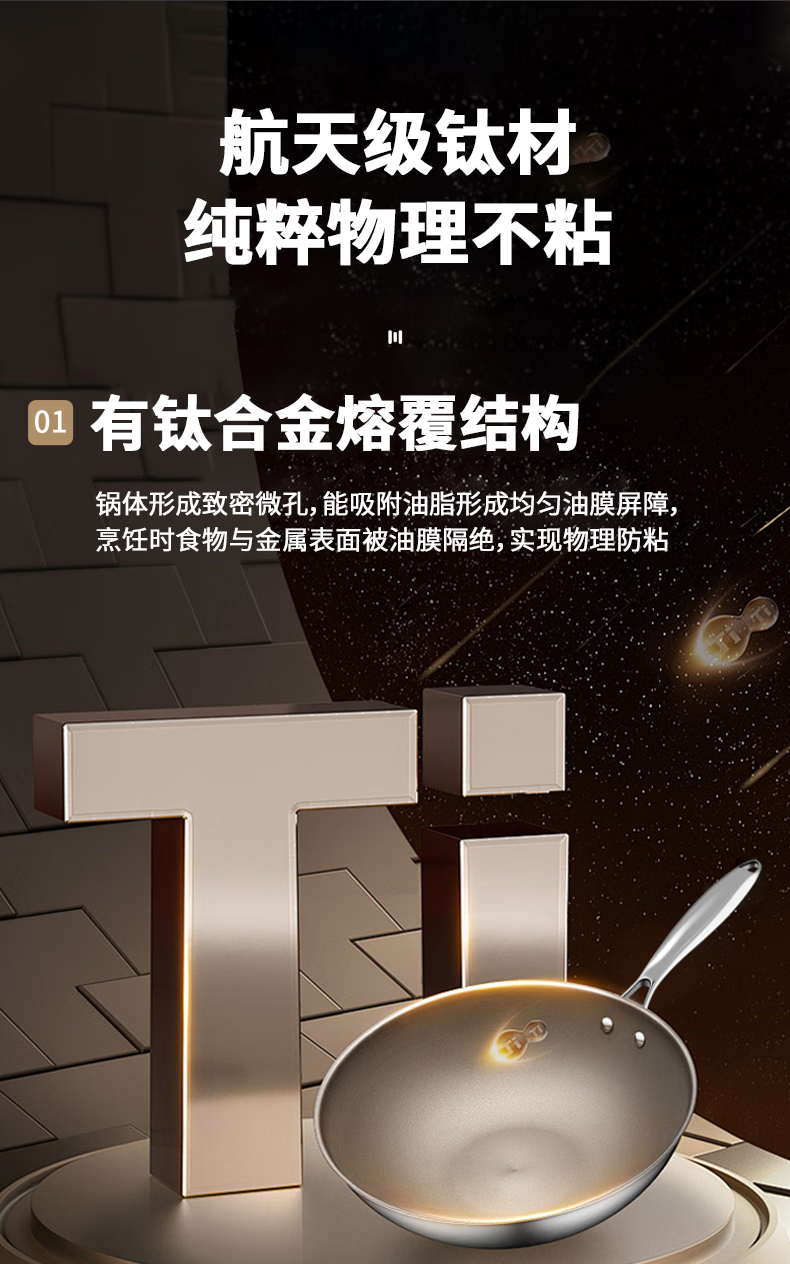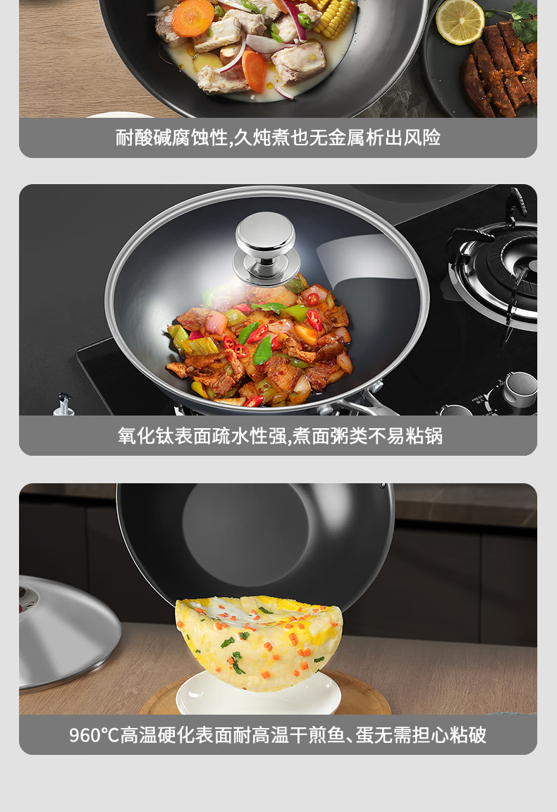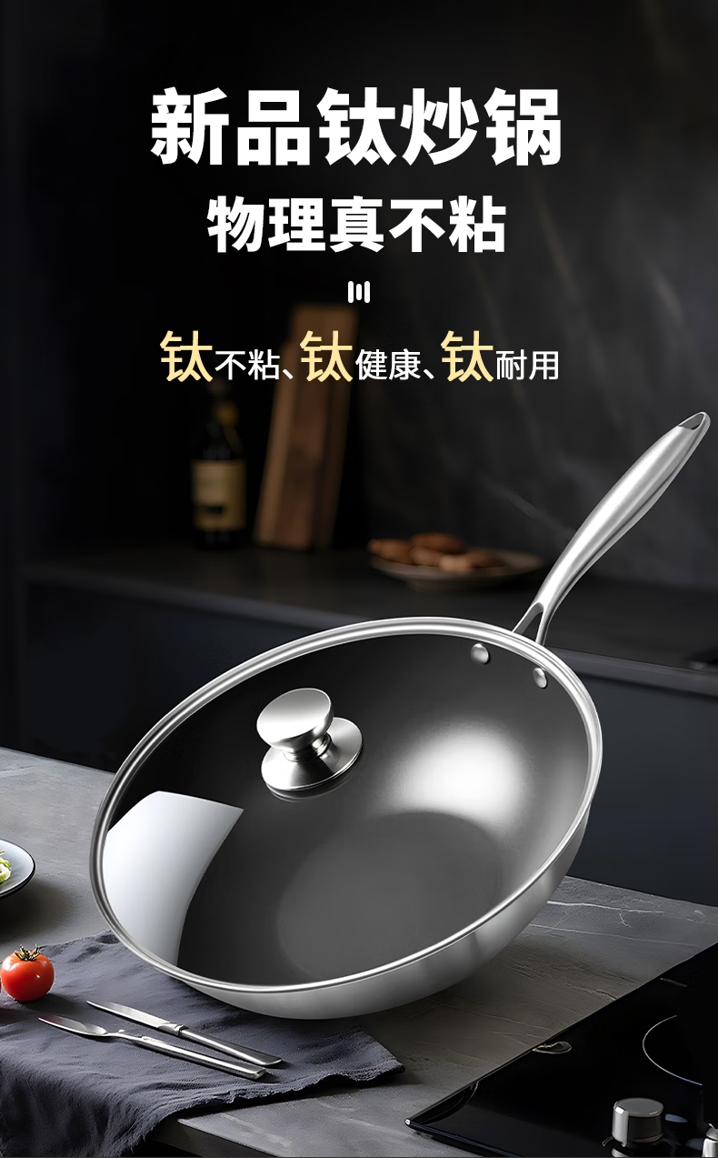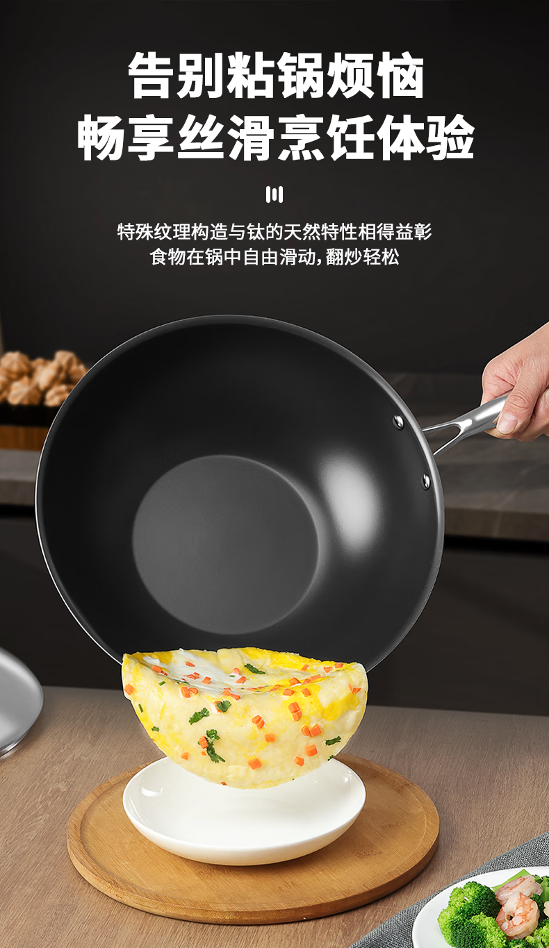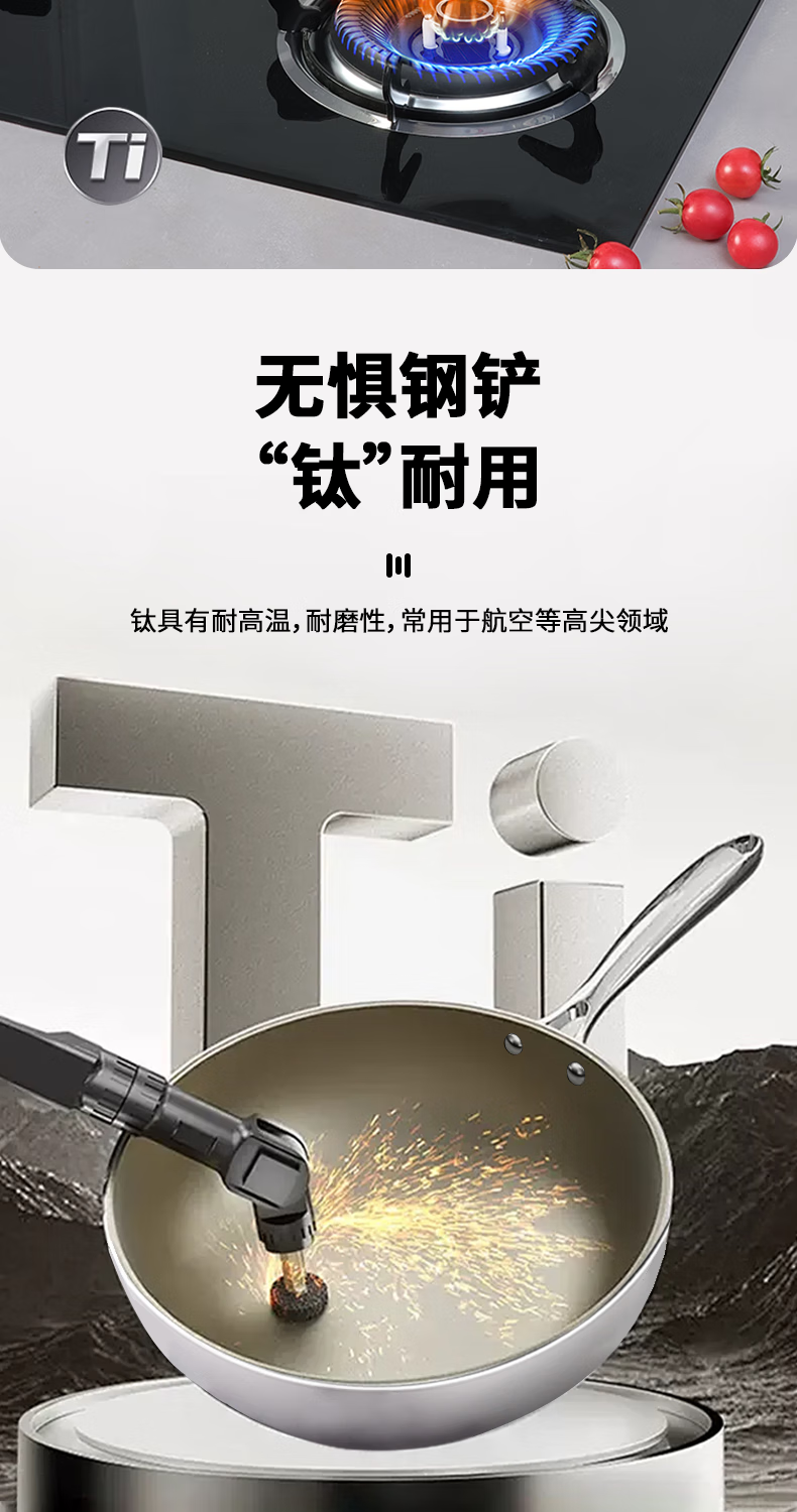 Sanno industrial wok uncoated titanium non-stick frying pan high temperature resistant wok gas stove induction cooker universal pan 32cm titanium wok - 32cm