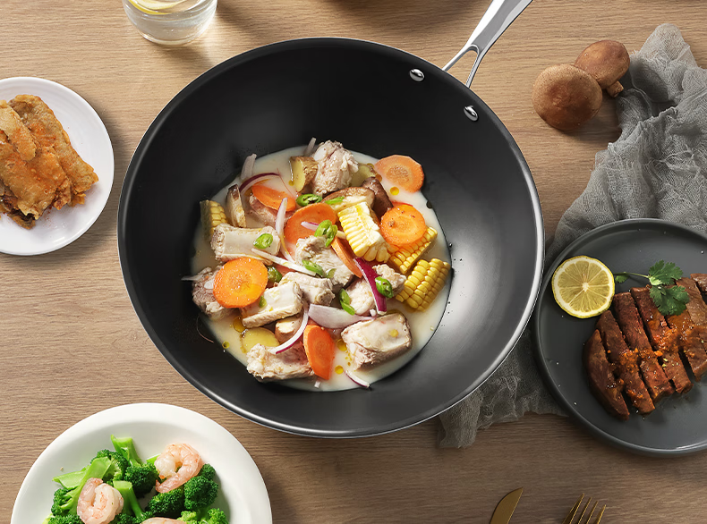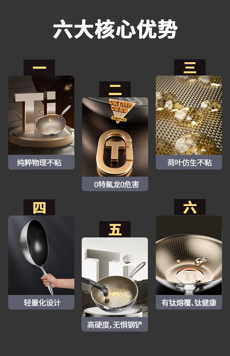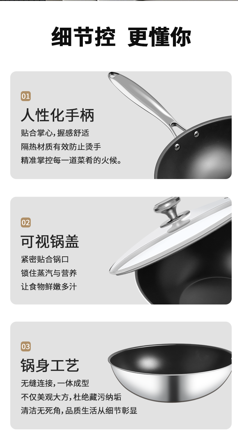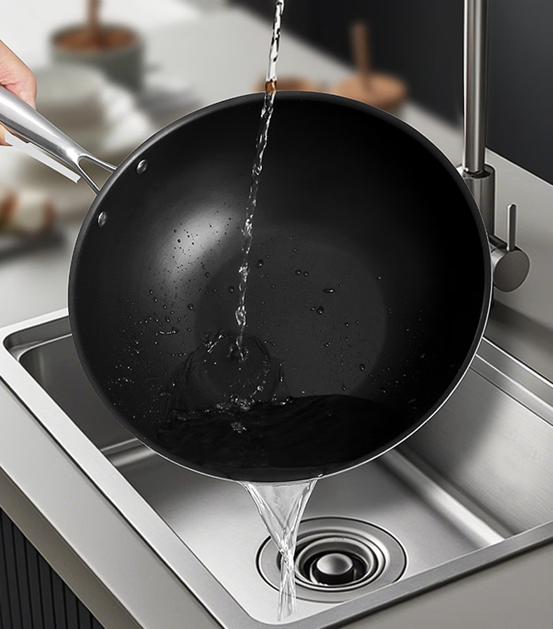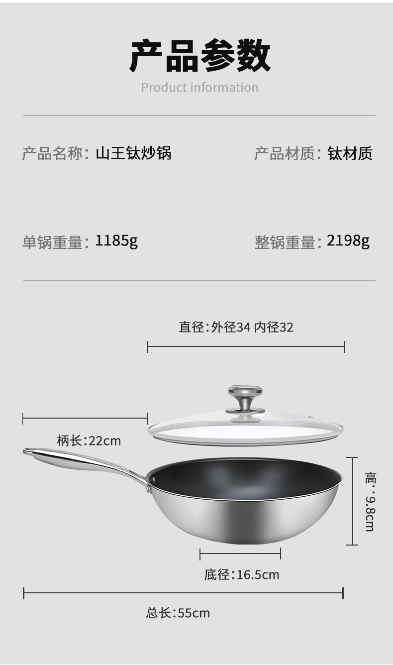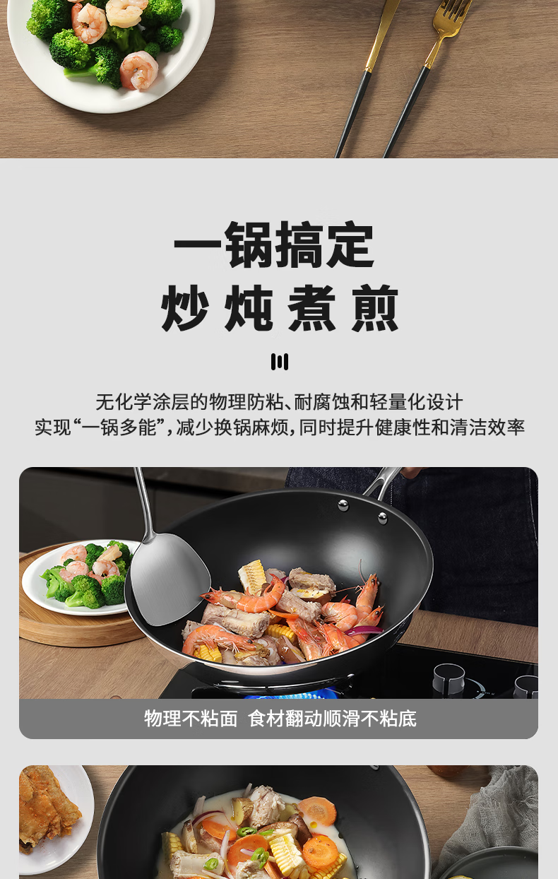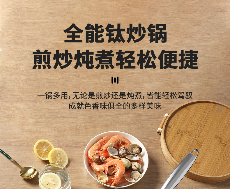 Sanno industrial wok uncoated titanium non-stick frying pan high temperature resistant wok gas stove induction cooker universal pan 32cm titanium wok - 32cm